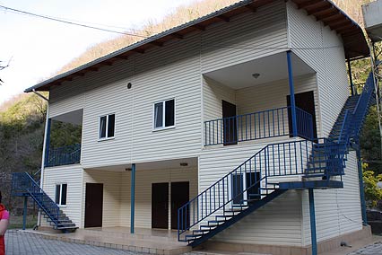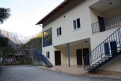 До административного центра города отсюда около 600 метров, до морского побережья – 500 метров. Этот частный отель – прекрасное место для молодежного и семейного отдыха с детьми.Расположенный на собственной огороженной, ухоженной территории на крутом берегу горной речки, отель содержит всего 9 номеров, способных одновременно вместить не более 23 человек. Все номера отеля оборудованы отдельными санузлами с душем и необходимым набором бытовой техники: кондиционером, холодильником и телевизором.К услугам отдыхающих – вся территория отеля в живописном уголке ущелья и уютные зоны отдыха. Для владельцев автотранспорта есть охраняемая стоянка. Для желающих всегда найдется в окрестностях пункт питания, подходящий по вкусу или бюджету.Ближайший городской пляж с песком и галькой вполне удобен для отдыха. На нем есть раздевалки, душевые кабины и туалеты, а также прокат лежаков, зонтов и шезлонгов.