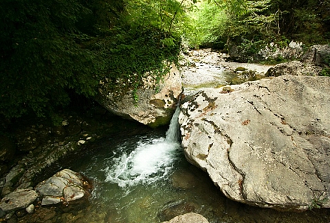 Отель «Домик в ущелье» находится в Жоэкварском ущелье Старой Гагры, среди зарослей эвкалиптов, самшита, каштанов и красного дерева, вдали от шума и суеты. Всего в 5-10 минутах ходьбы от него - природа, нетронутая цивилизацией, с роскошной растительностью, и целебным горно-морским воздухом, с прозрачной горной речкой и ласковым морем. Недалеко от отеля расположены Приморский парк принца Ольденбургского и крепость Абаата с музеем и храмом, магазины, рестораны, кафе.
