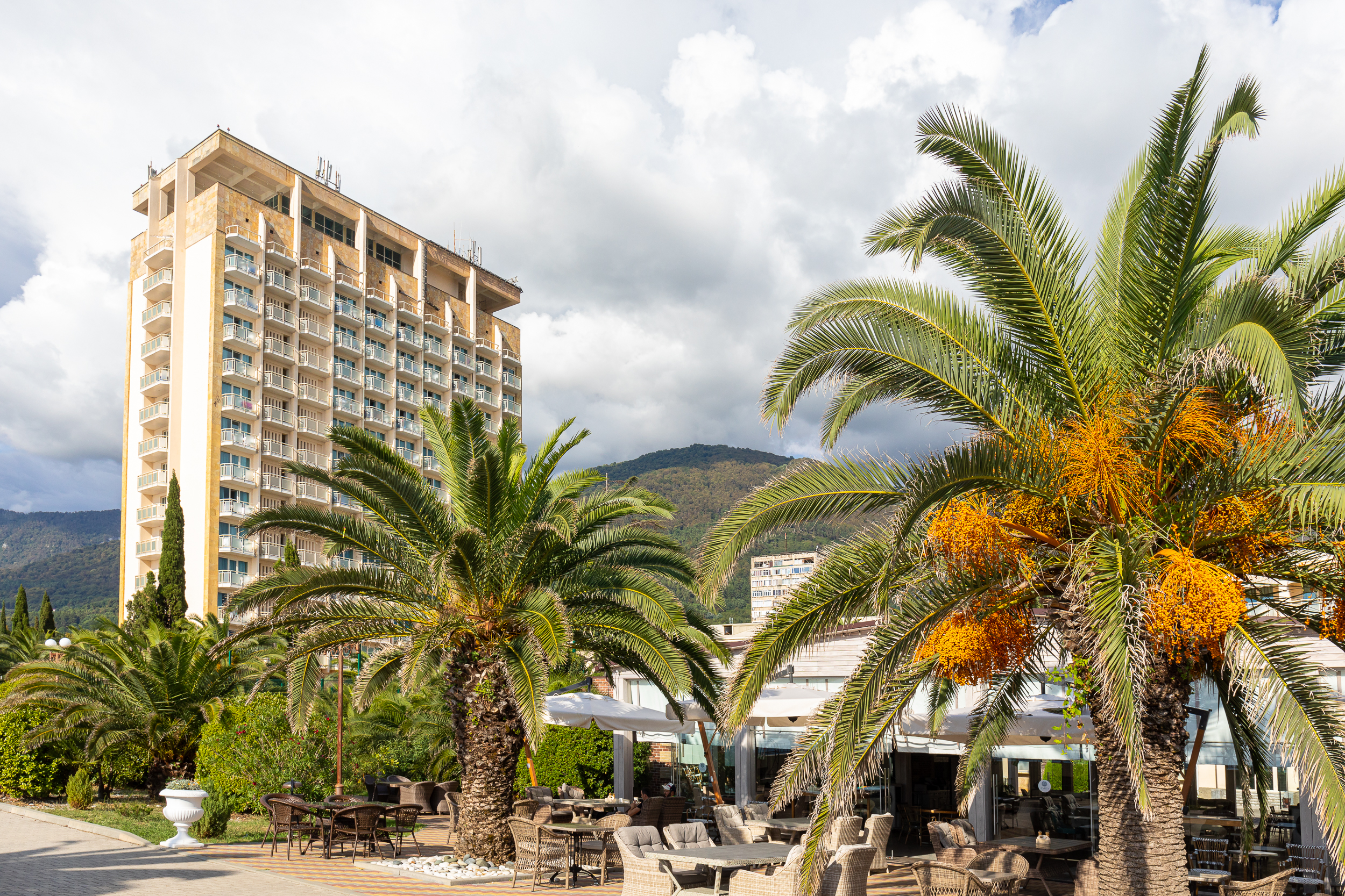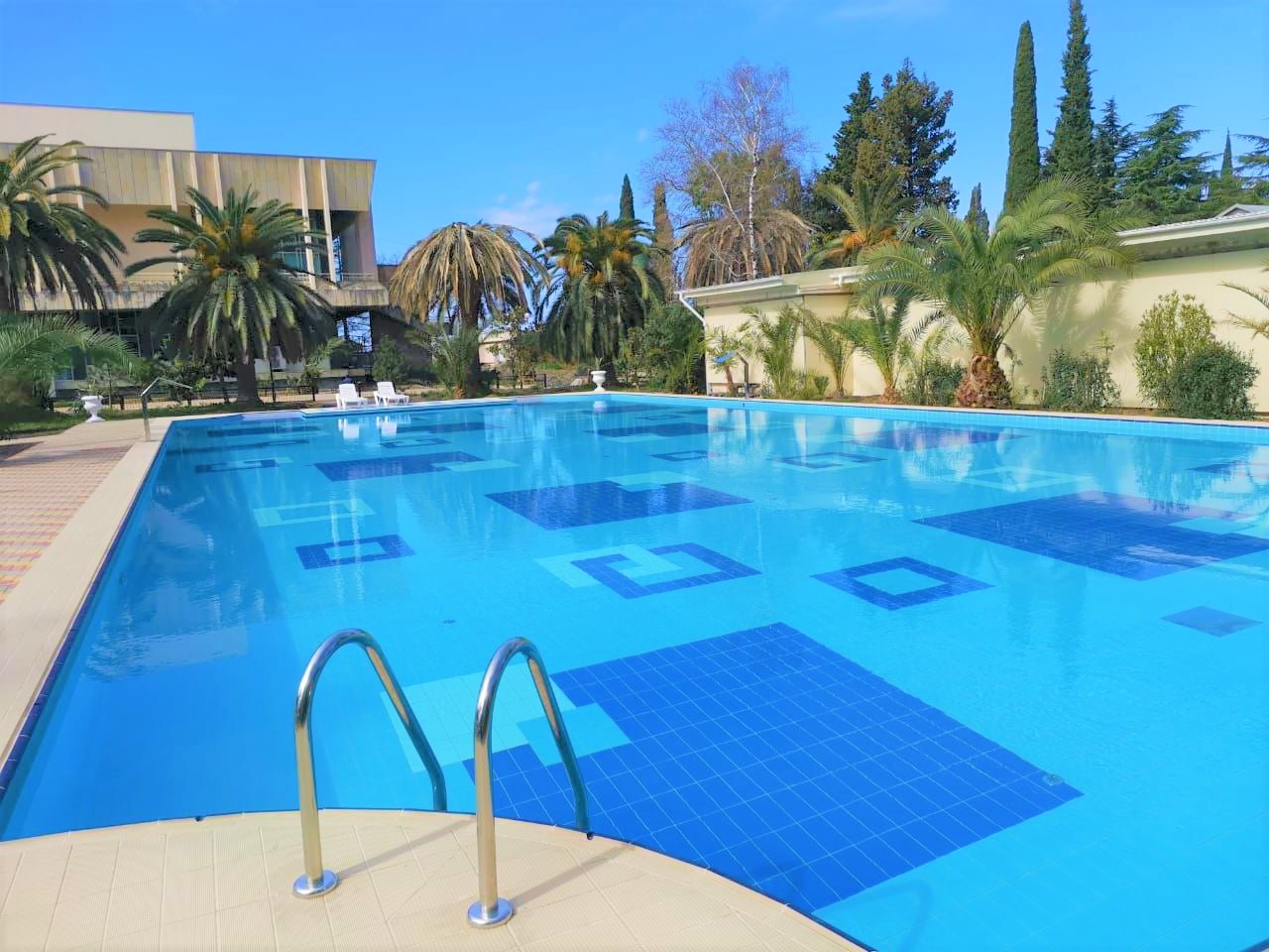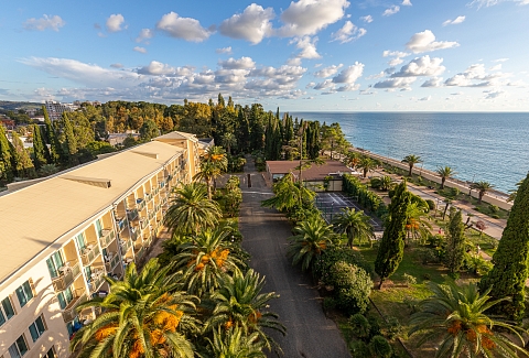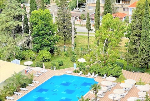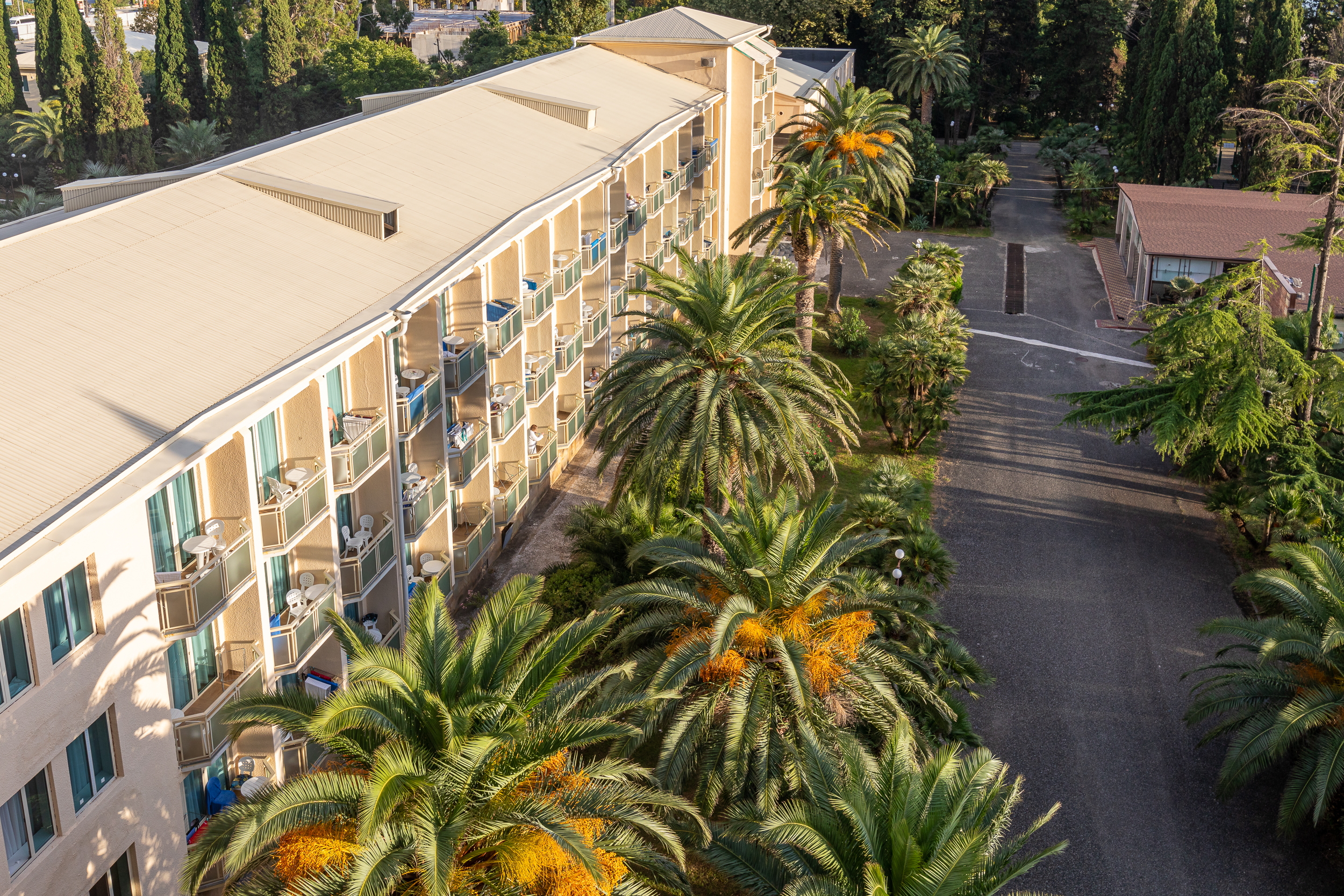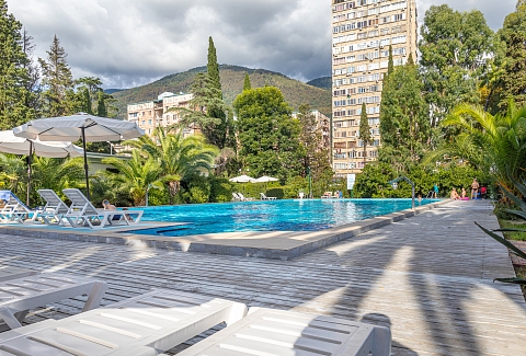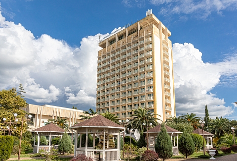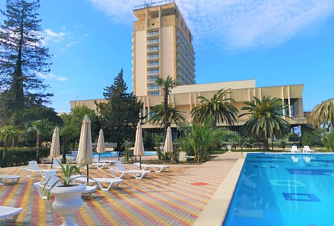 В отеле одновременно могут расположиться до 630 гостей. Здания окружены пальмами и кипарисами, во время прогулок по аллеям открываются вид на живописные склоны гор. В двухместных номерах есть необходимая современная мебель и бытовая техника. Номера левого крыла обращены к морю и парку, номера правого крыла располагают боковым видом на море.Питание гостей в отеле «Amza Park Hotel» (Гагра) организовано в ресторане, где готовят завтраки, обеды и ужины. Дополнение к ним – меню кафе и бара на территории.