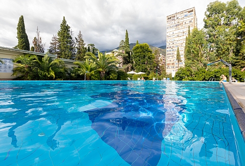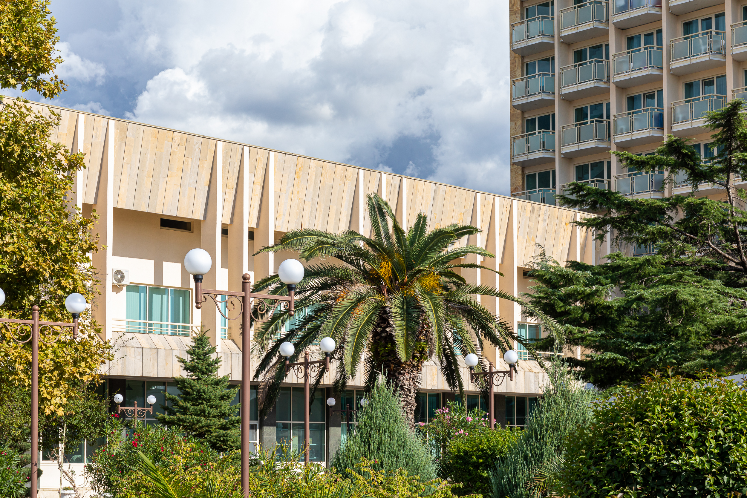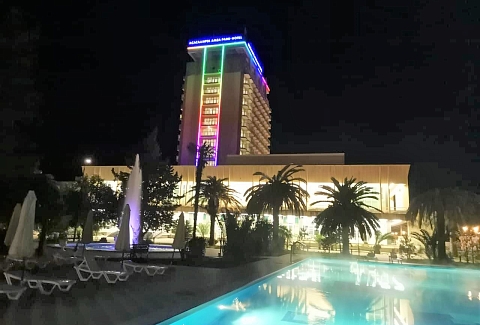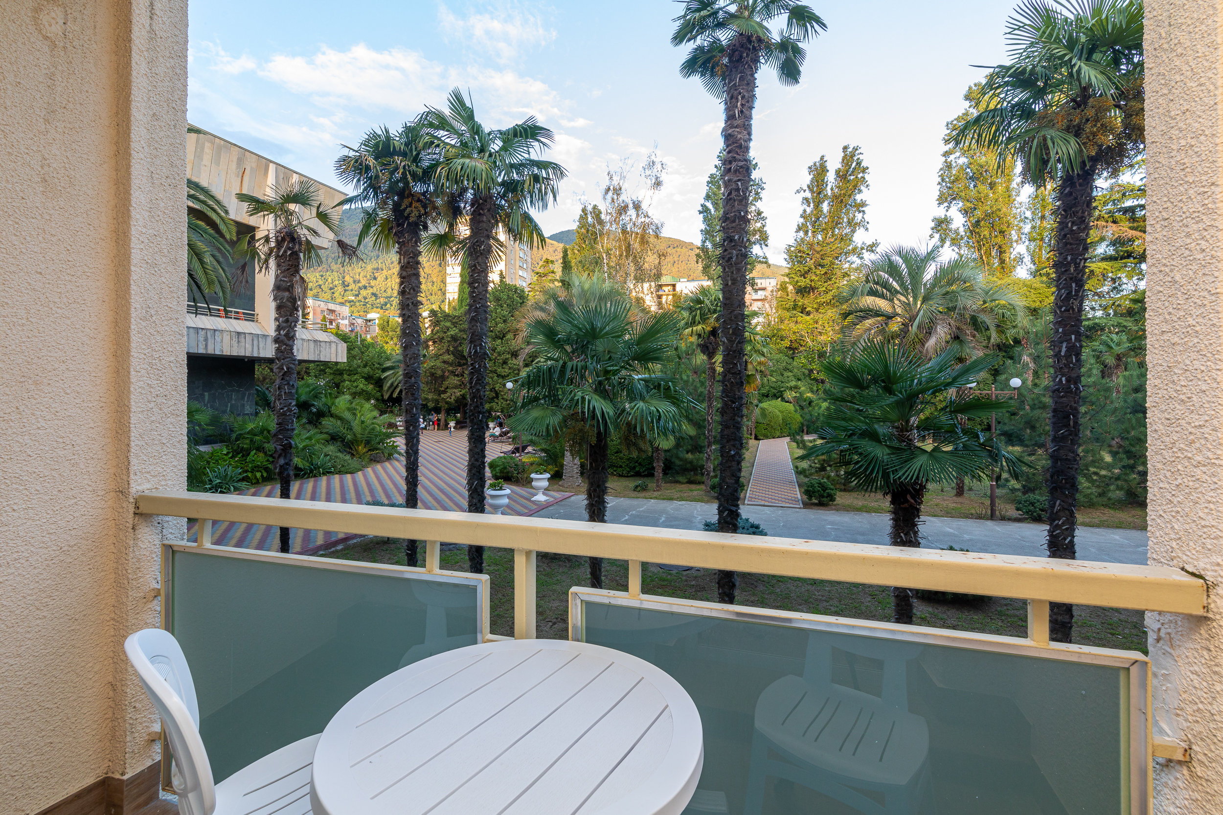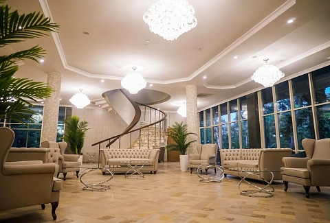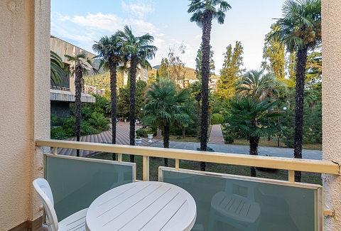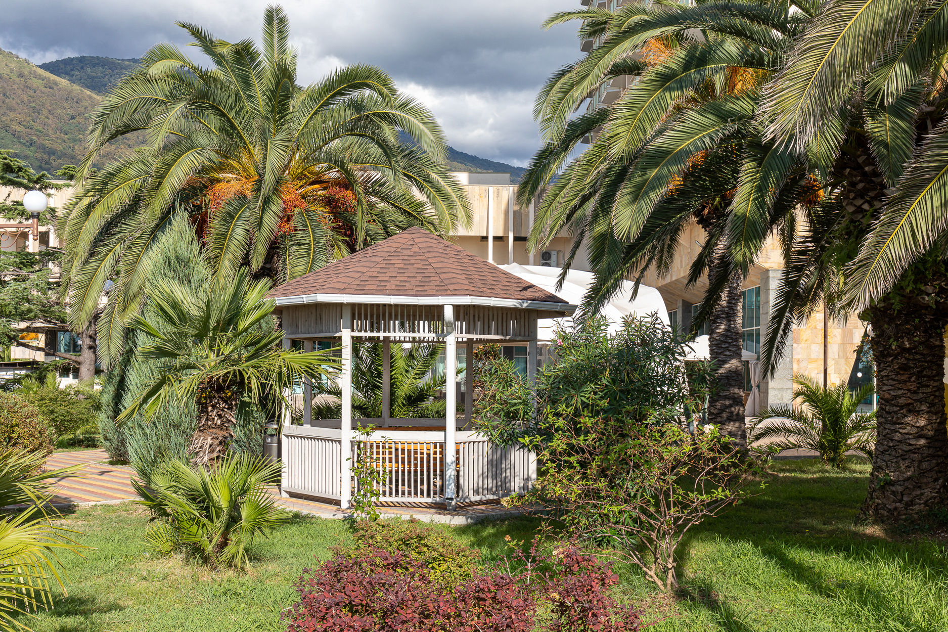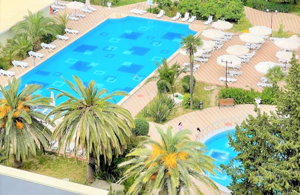 В отеле одновременно могут расположиться до 630 гостей. Здания окружены пальмами и кипарисами, во время прогулок по аллеям открываются вид на живописные склоны гор. В двухместных номерах есть необходимая современная мебель и бытовая техника. Номера левого крыла обращены к морю и парку, номера правого крыла располагают боковым видом на море.Питание гостей в отеле «Amza Park Hotel» (Гагра) организовано в ресторане, где готовят завтраки, обеды и ужины. Дополнение к ним – меню кафе и бара на территории.