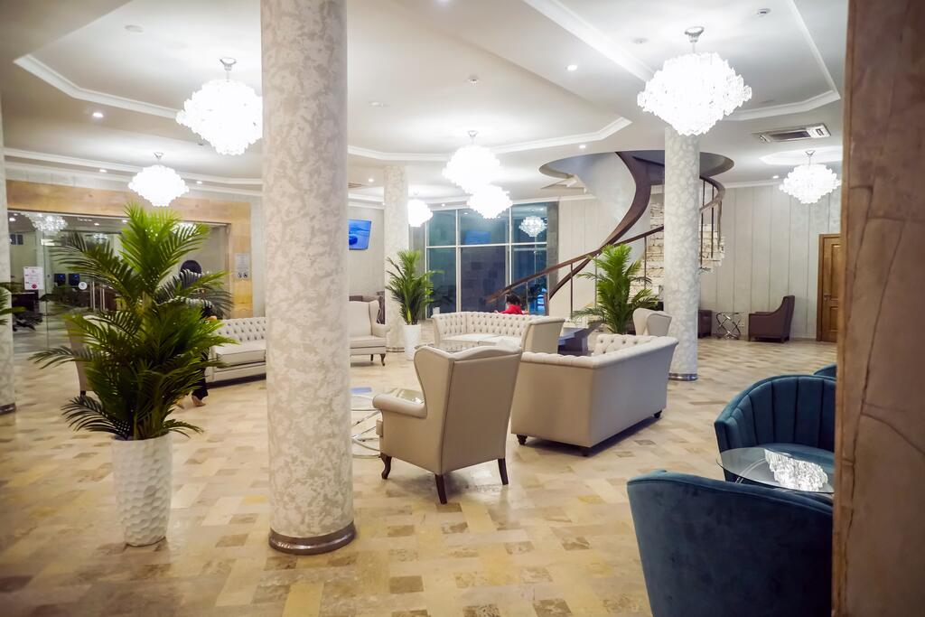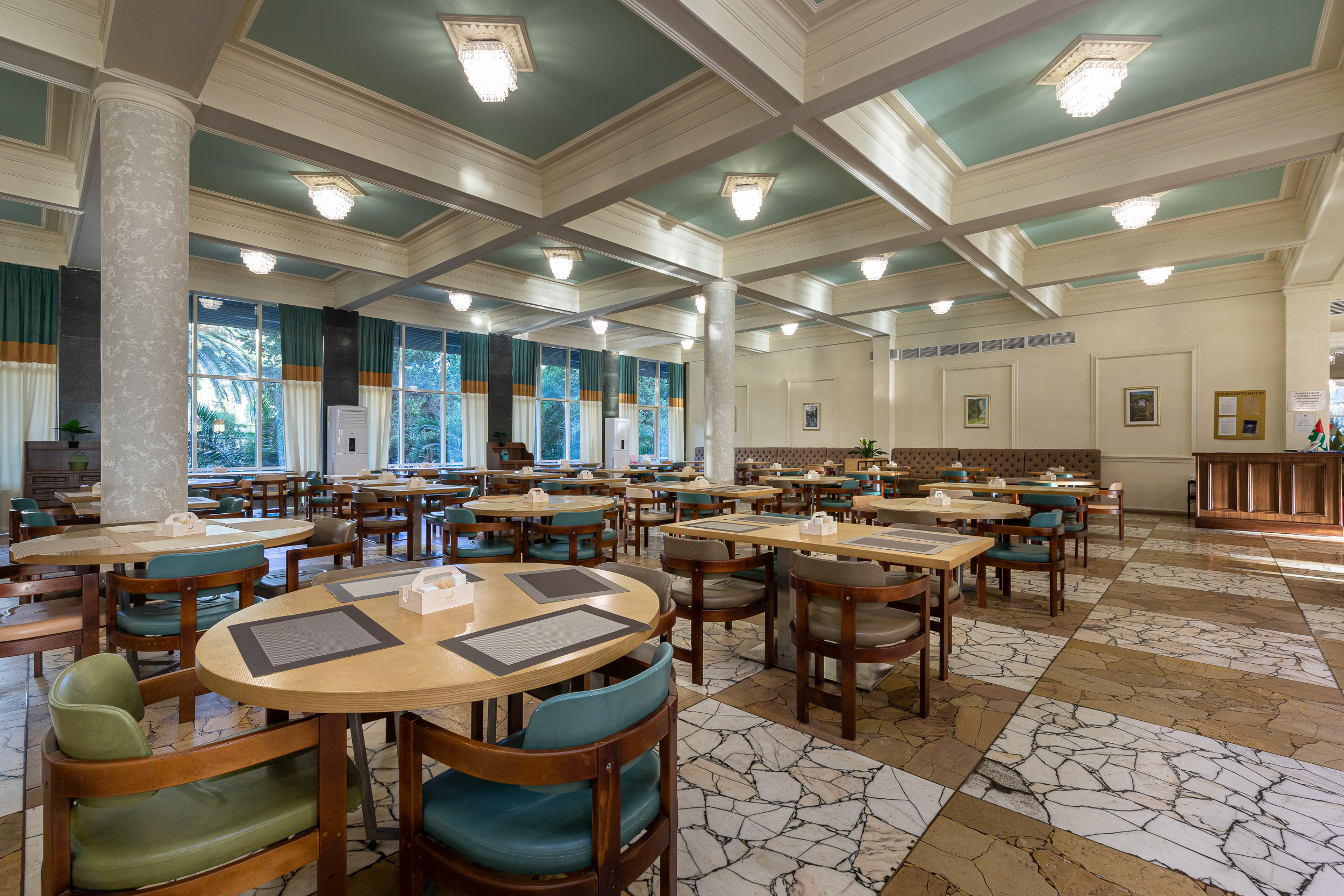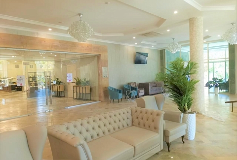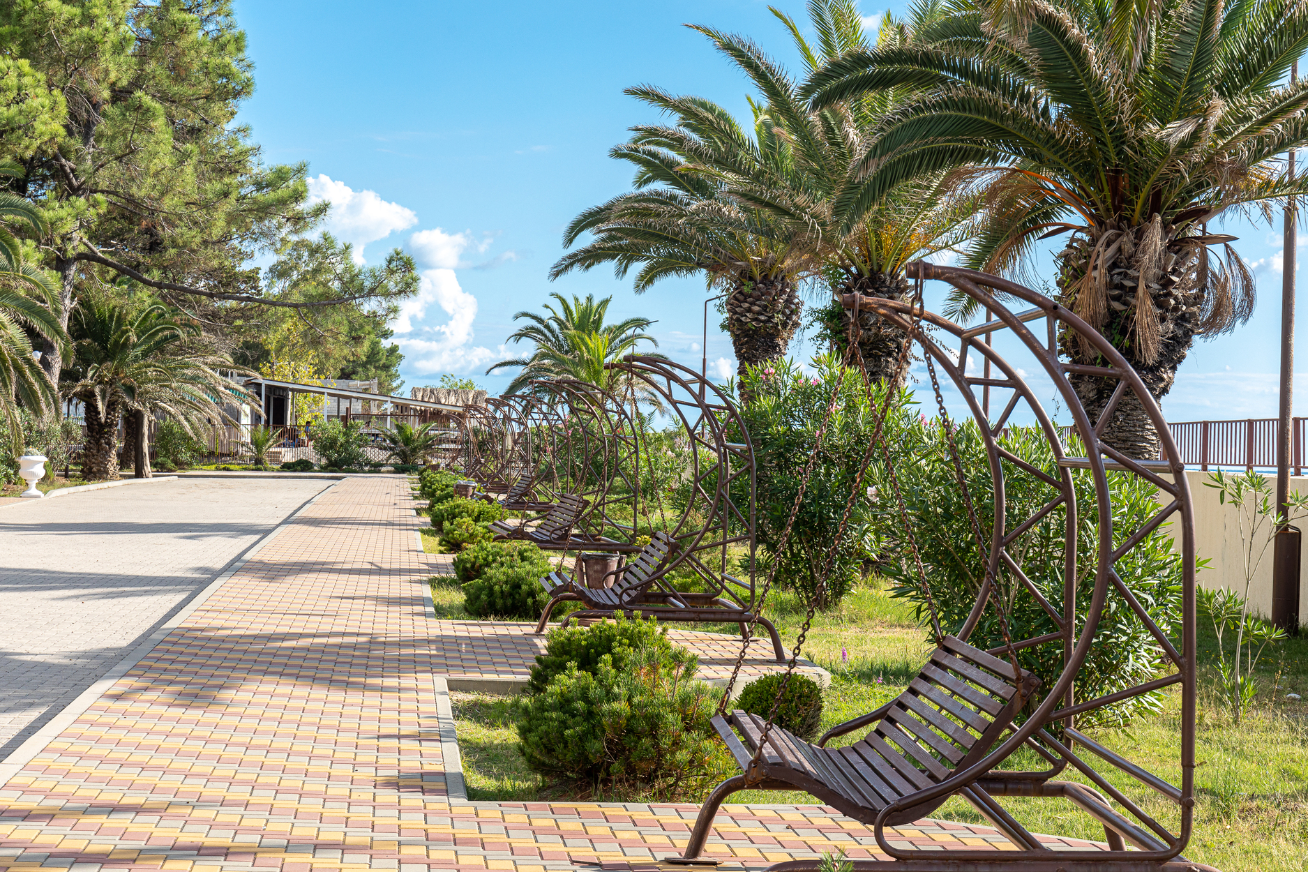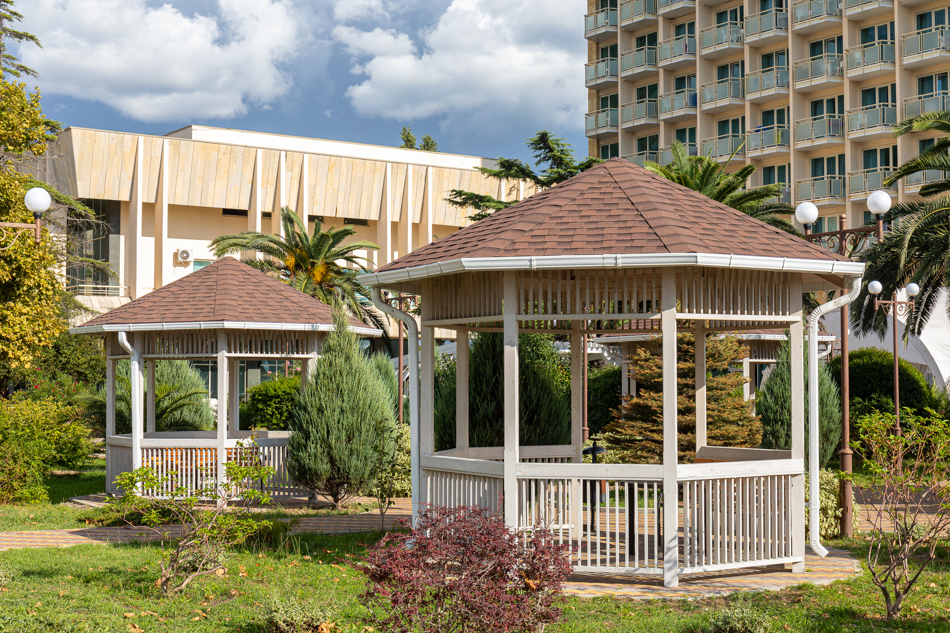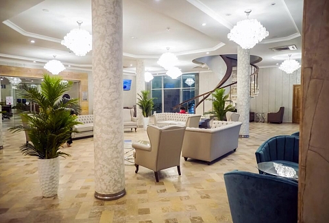 В отеле одновременно могут расположиться до 630 гостей. Здания окружены пальмами и кипарисами, во время прогулок по аллеям открываются вид на живописные склоны гор. В двухместных номерах есть необходимая современная мебель и бытовая техника. Номера левого крыла обращены к морю и парку, номера правого крыла располагают боковым видом на море.Питание гостей в отеле «Amza Park Hotel» (Гагра) организовано в ресторане, где готовят завтраки, обеды и ужины. Дополнение к ним – меню кафе и бара на территории.