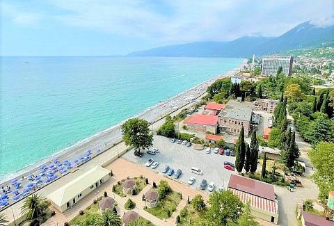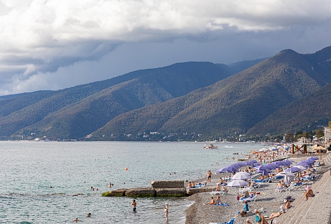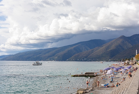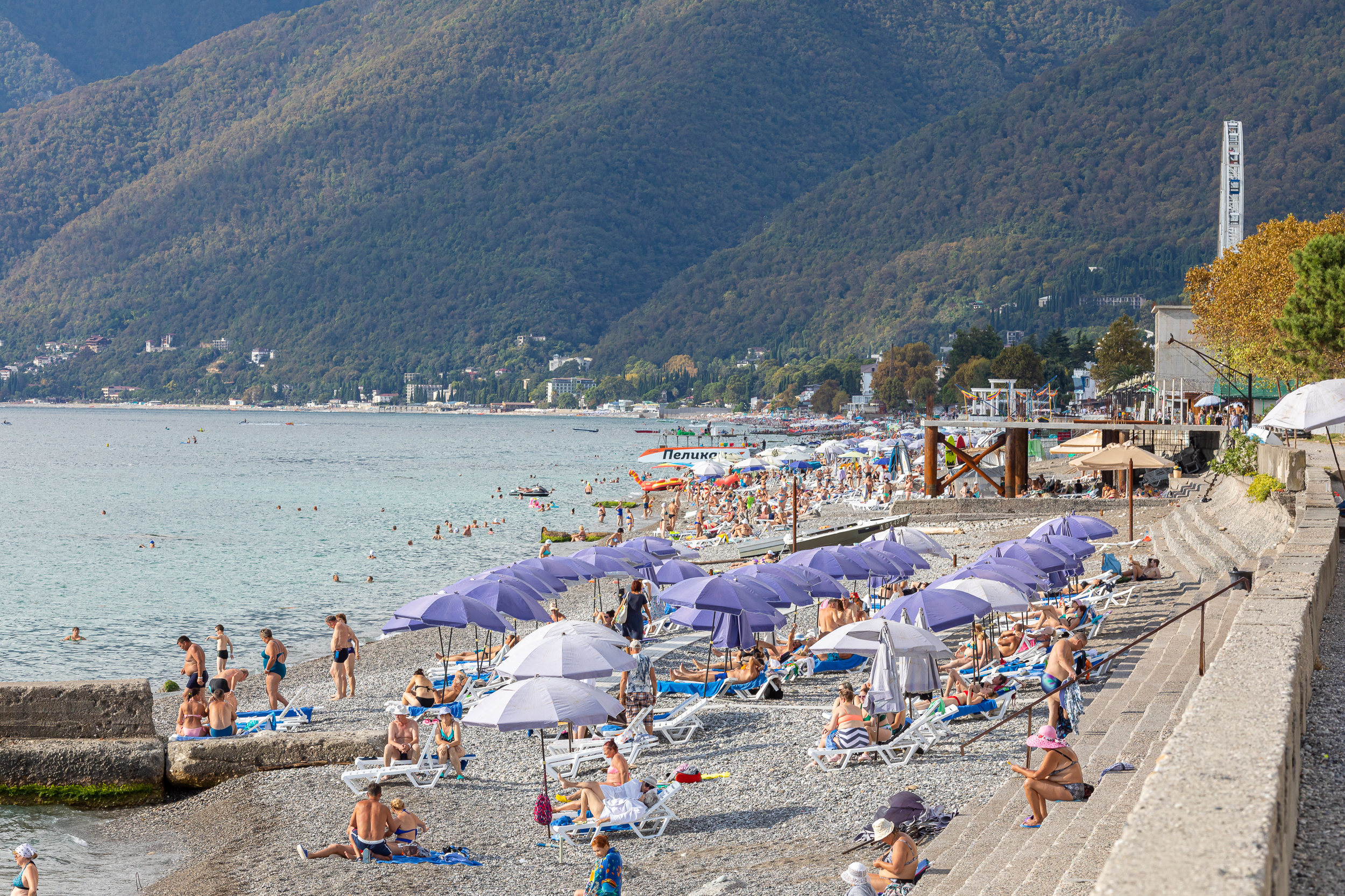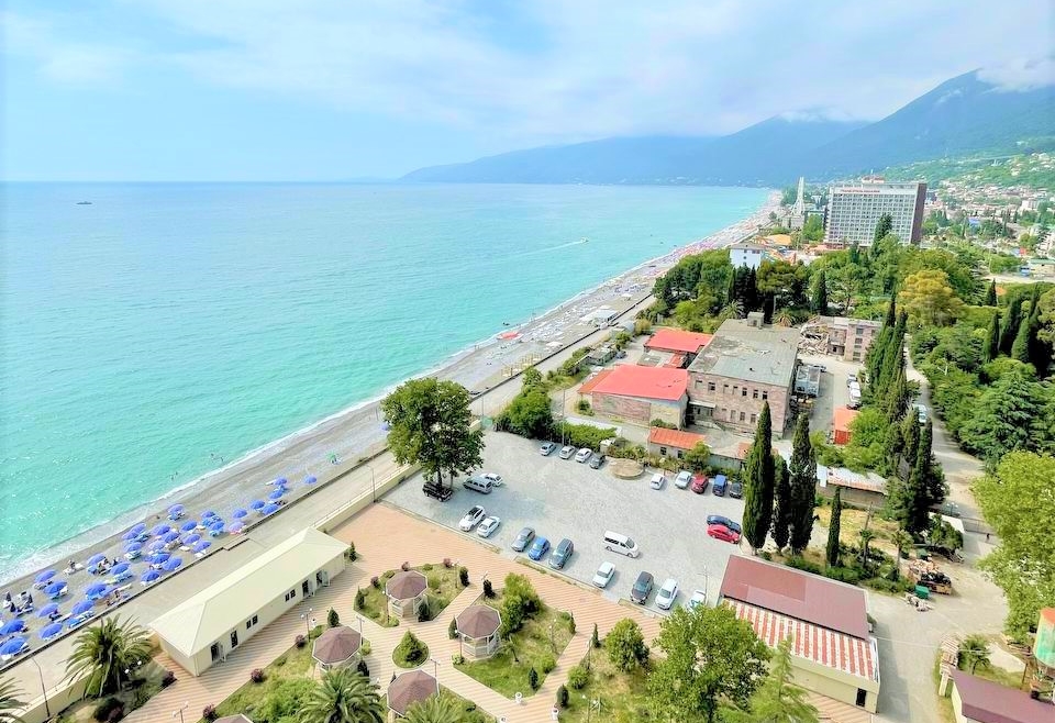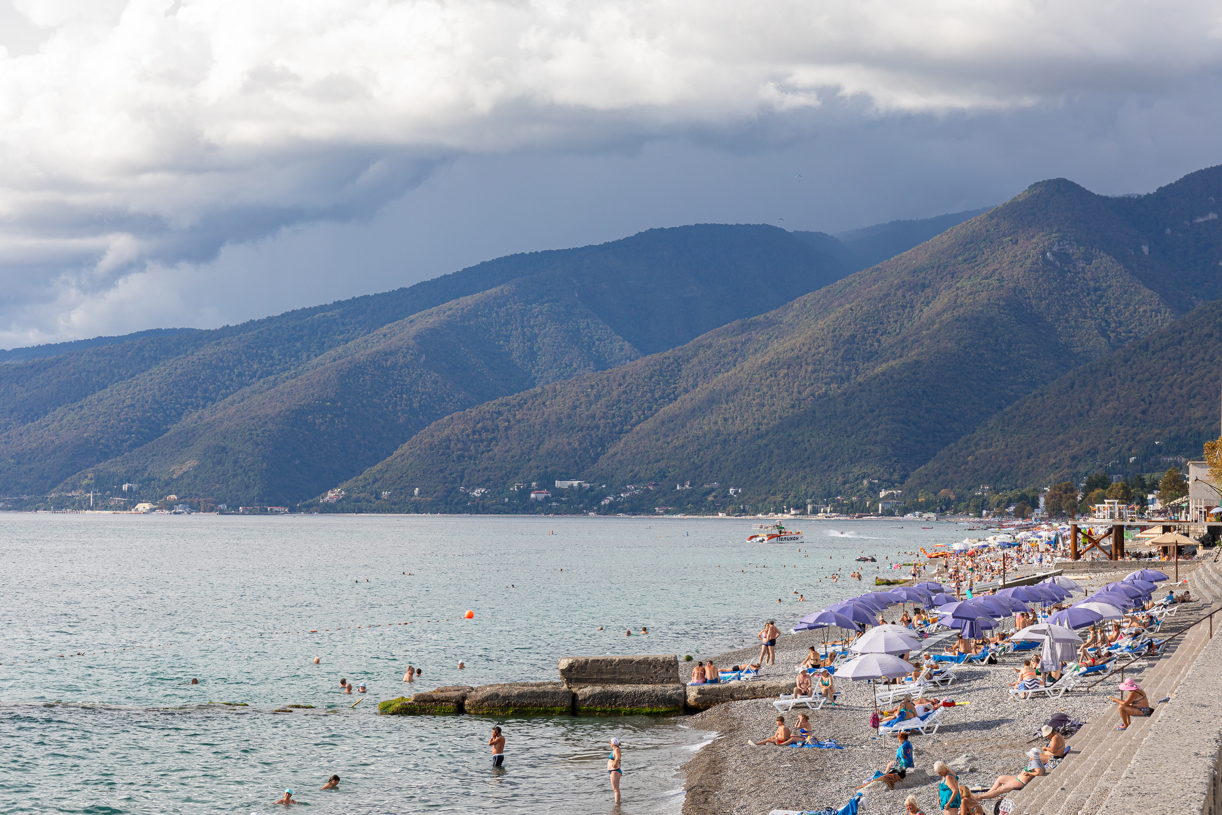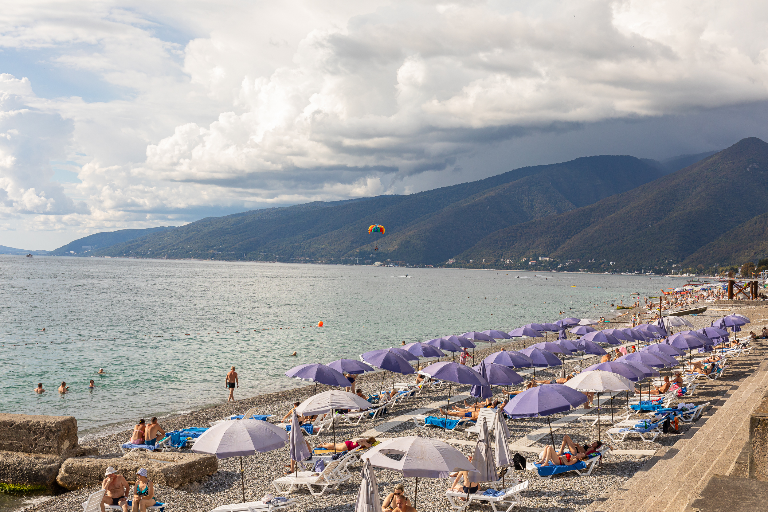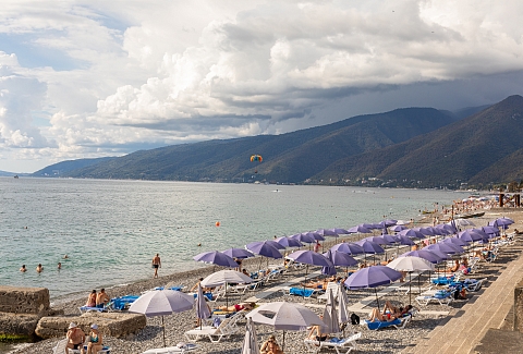 Поездом или самолетом – до г. Сочи (Адлер), далее на общественном транспорте или на такси до «Казачьего рынка» (8 км от ж/д вокзала, 15 км от аэропорта), затем пройти пешком около 500 м до пограничного поста на р. Псоу до границы России и Абхазии. После самостоятельного прохождения паспортного и таможенного контроля до места отдыха можно доехать на автобусе, маршрутном такси или воспользоваться услугами частных водителей.