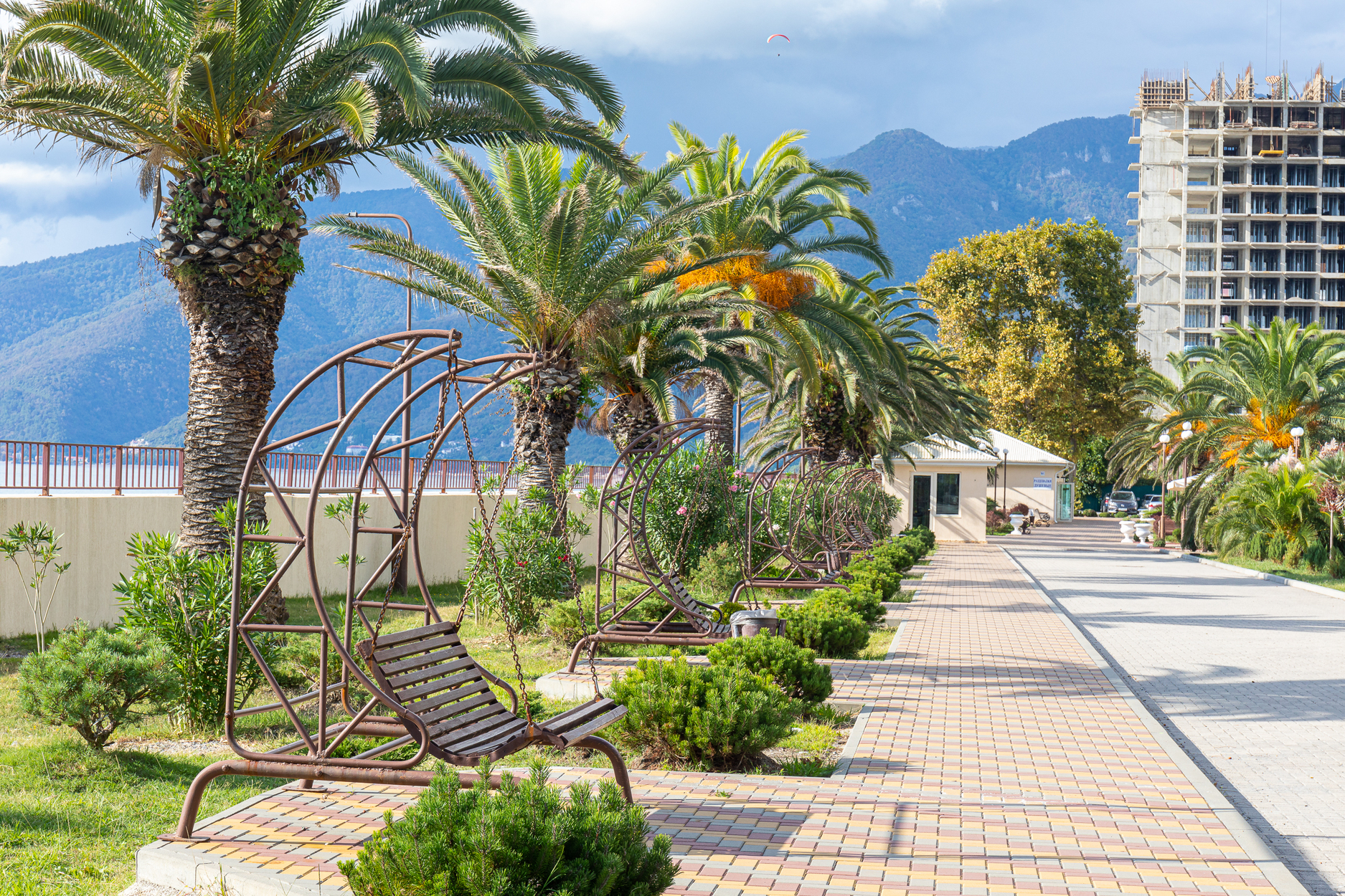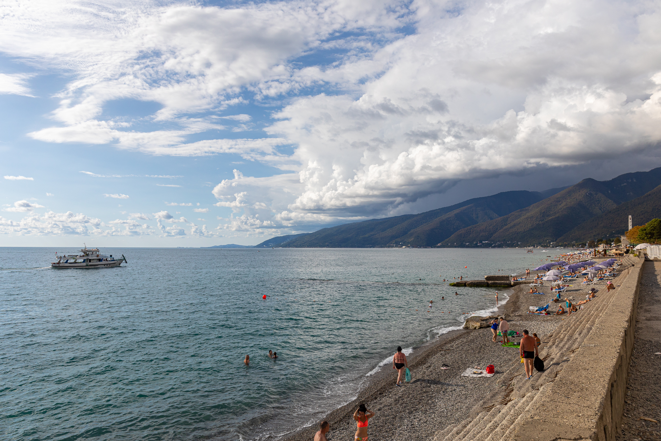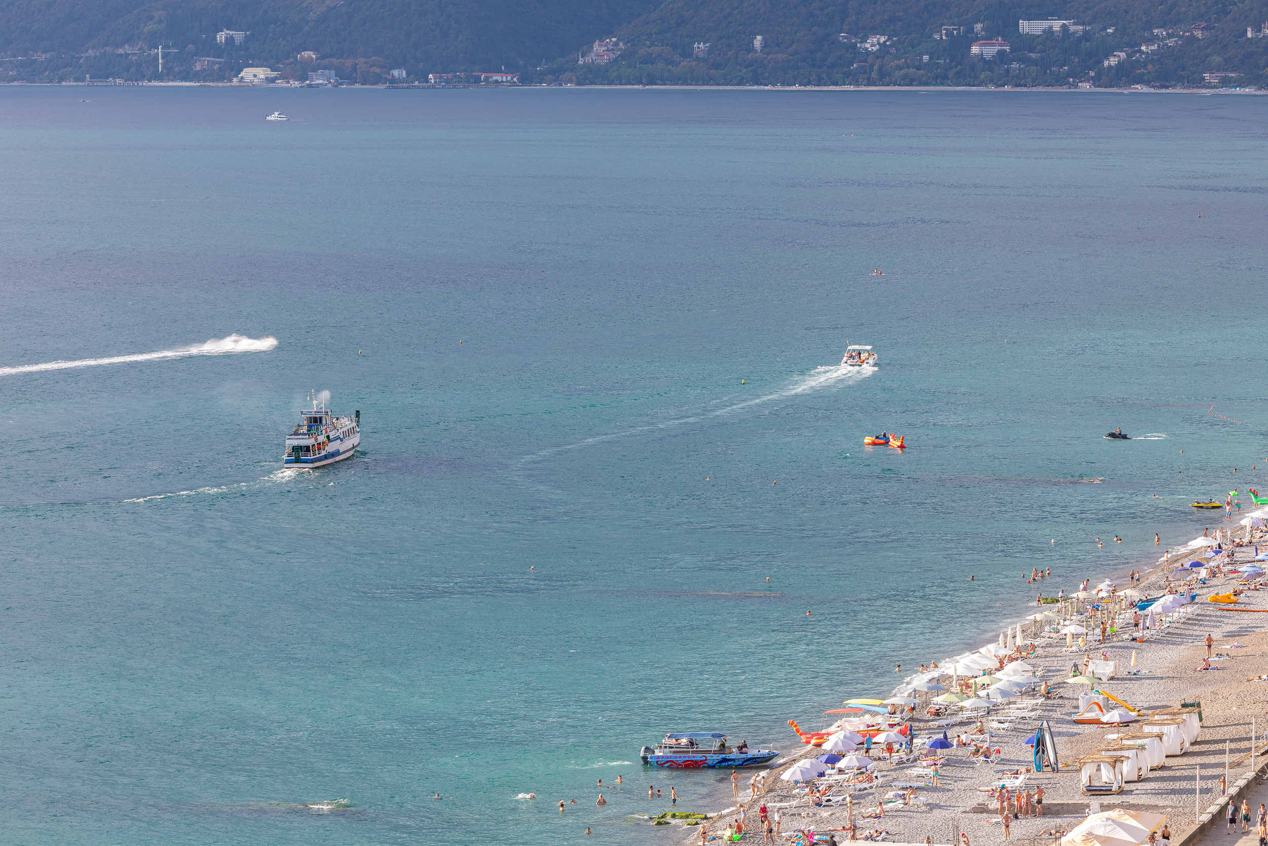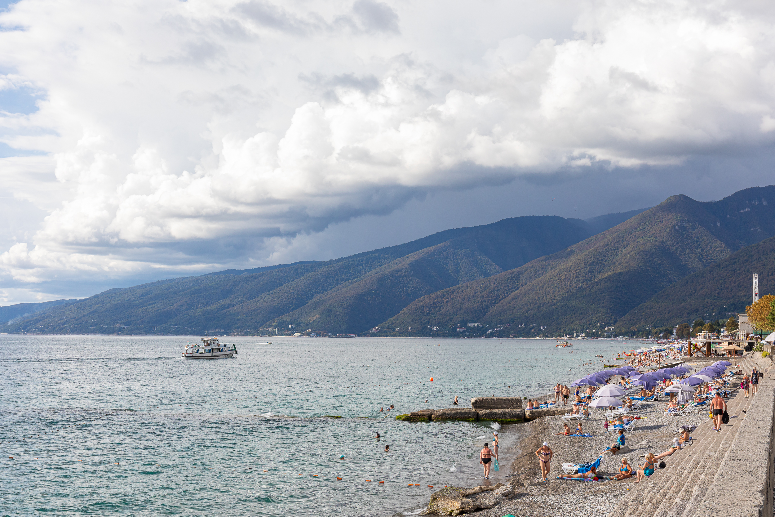 Поездом или самолетом – до г. Сочи (Адлер), далее на общественном транспорте или на такси до «Казачьего рынка» (8 км от ж/д вокзала, 15 км от аэропорта), затем пройти пешком около 500 м до пограничного поста на р. Псоу до границы России и Абхазии. После самостоятельного прохождения паспортного и таможенного контроля до места отдыха можно доехать на автобусе, маршрутном такси или воспользоваться услугами частных водителей.