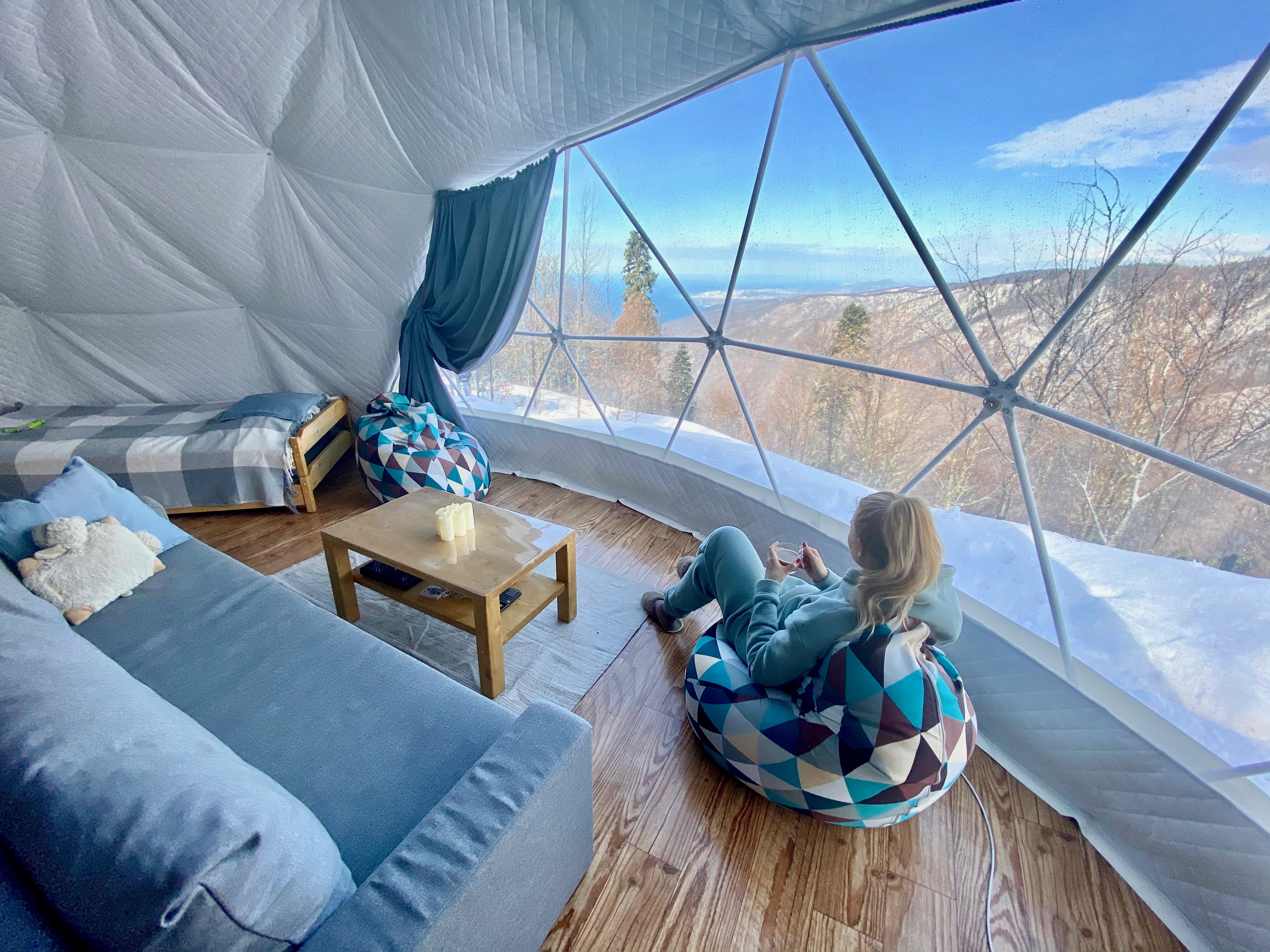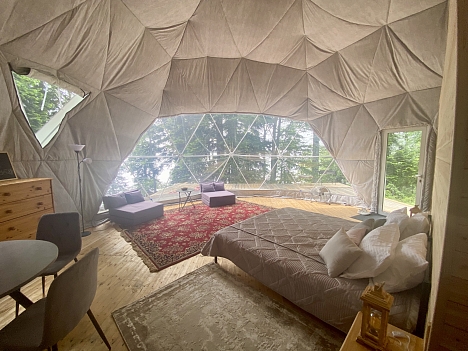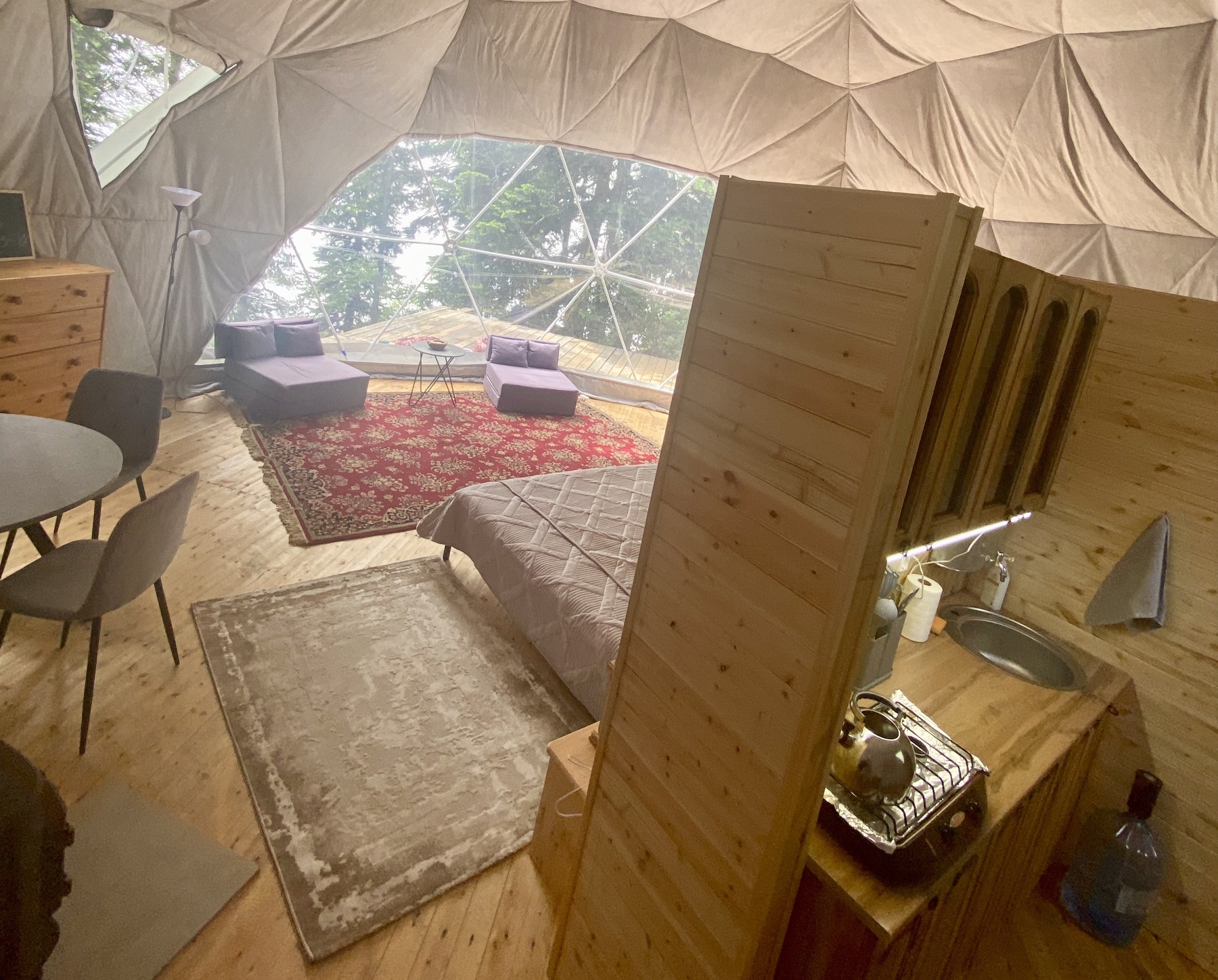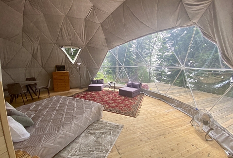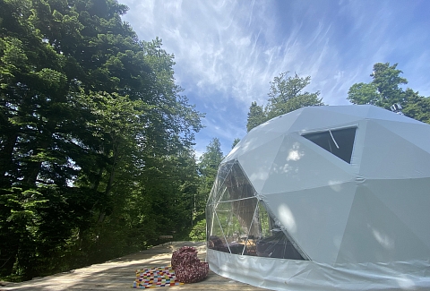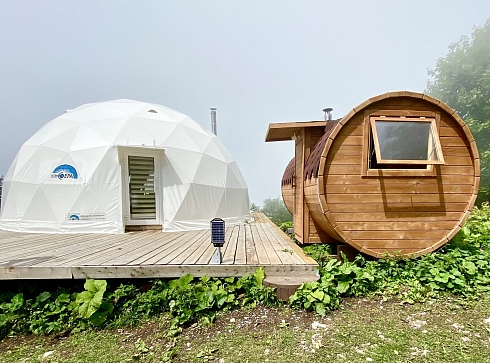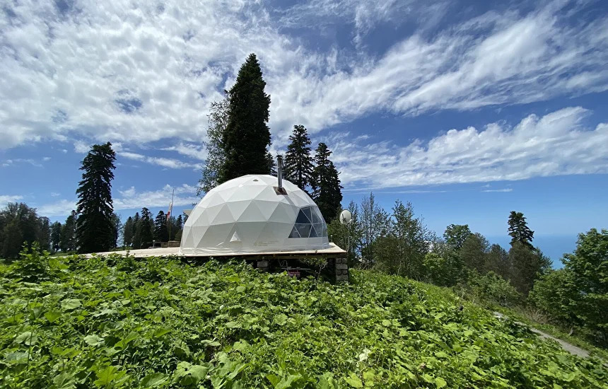 «Атмосфера» - это необычный комфортабельный эко-глэмпинг, расположенный в горах Абхазии, на горе Мамзышха, на высоте 1500 м над уровнем моря. До аэропорта в Адлере - 60 км, а до ближайшего населенного пункта 25 км.В «Атмосферу» приезжают гости, которые хотят отдохнуть в тишине от бешеного городского ритма, насладиться красотой и величием лесов, горных рельефов, побыть наедине с собой и своими мыслями. Глэмпинг «Атмосфера» - это уникальная возможность продлить удовольствие горного туризма на несколько дней и переночевать в уютном доме-сфере на горе Мамдзышха.Глэмпинг состоит из домов-сфер, рассчитанных до 6 человек.