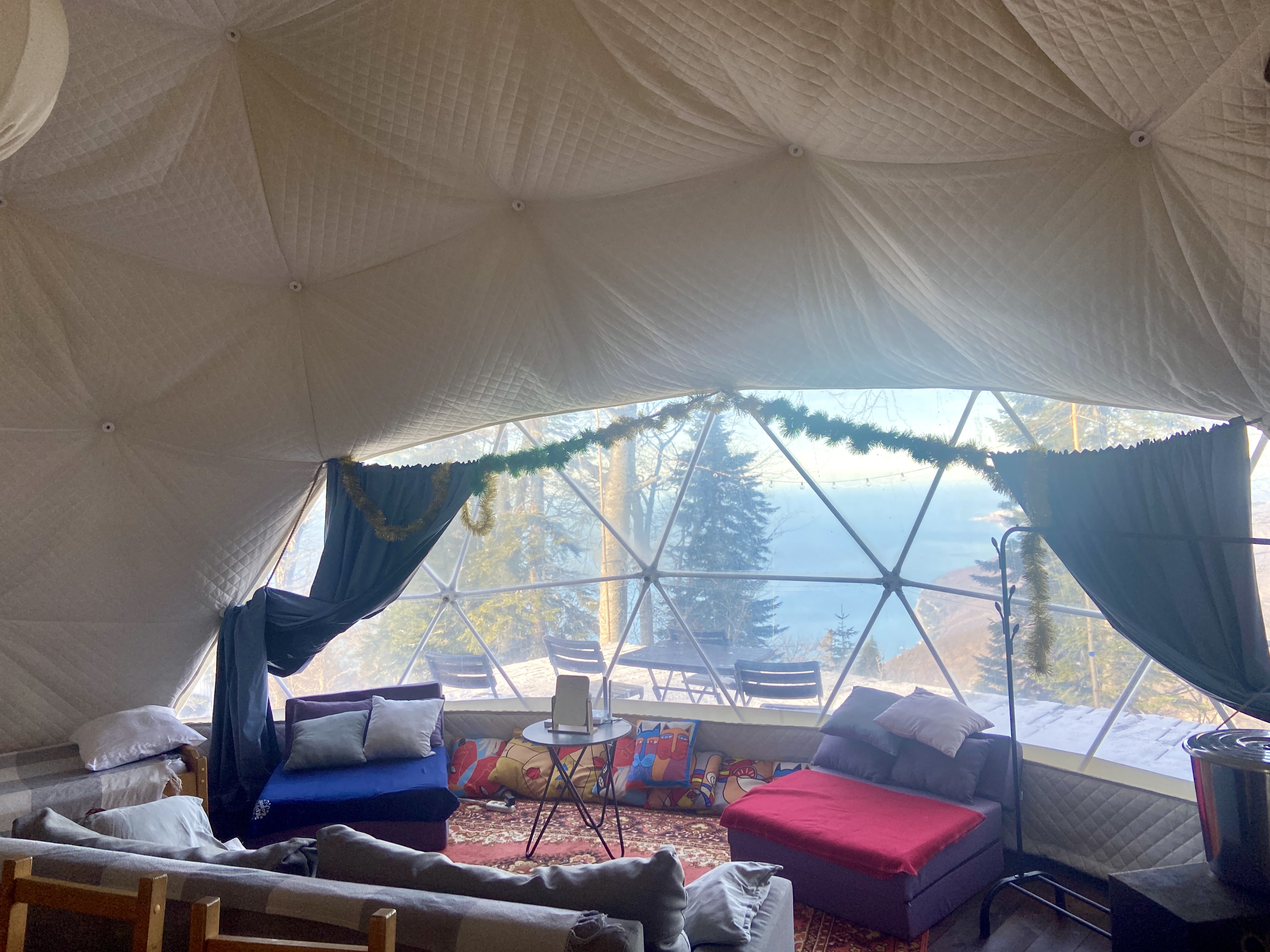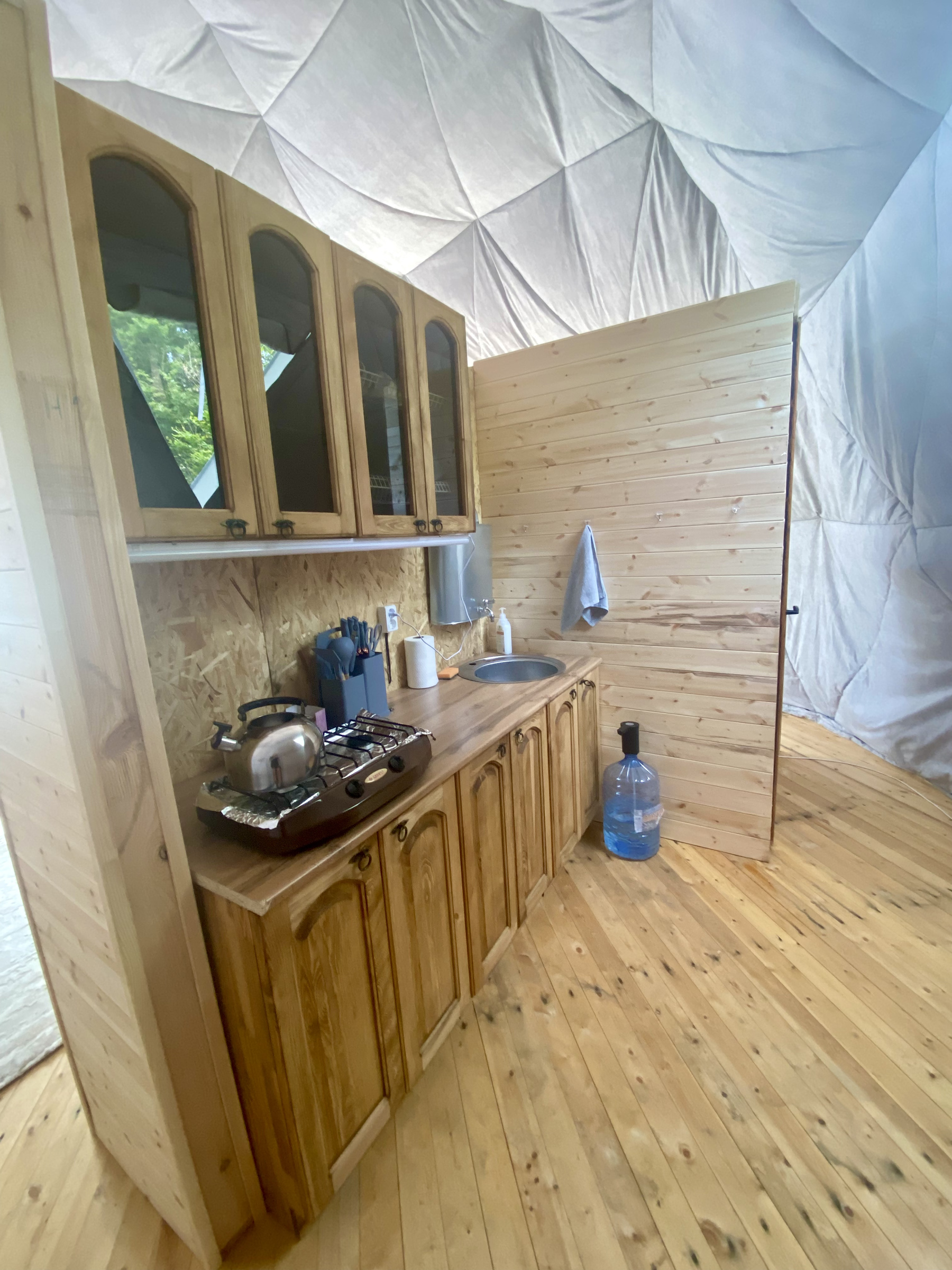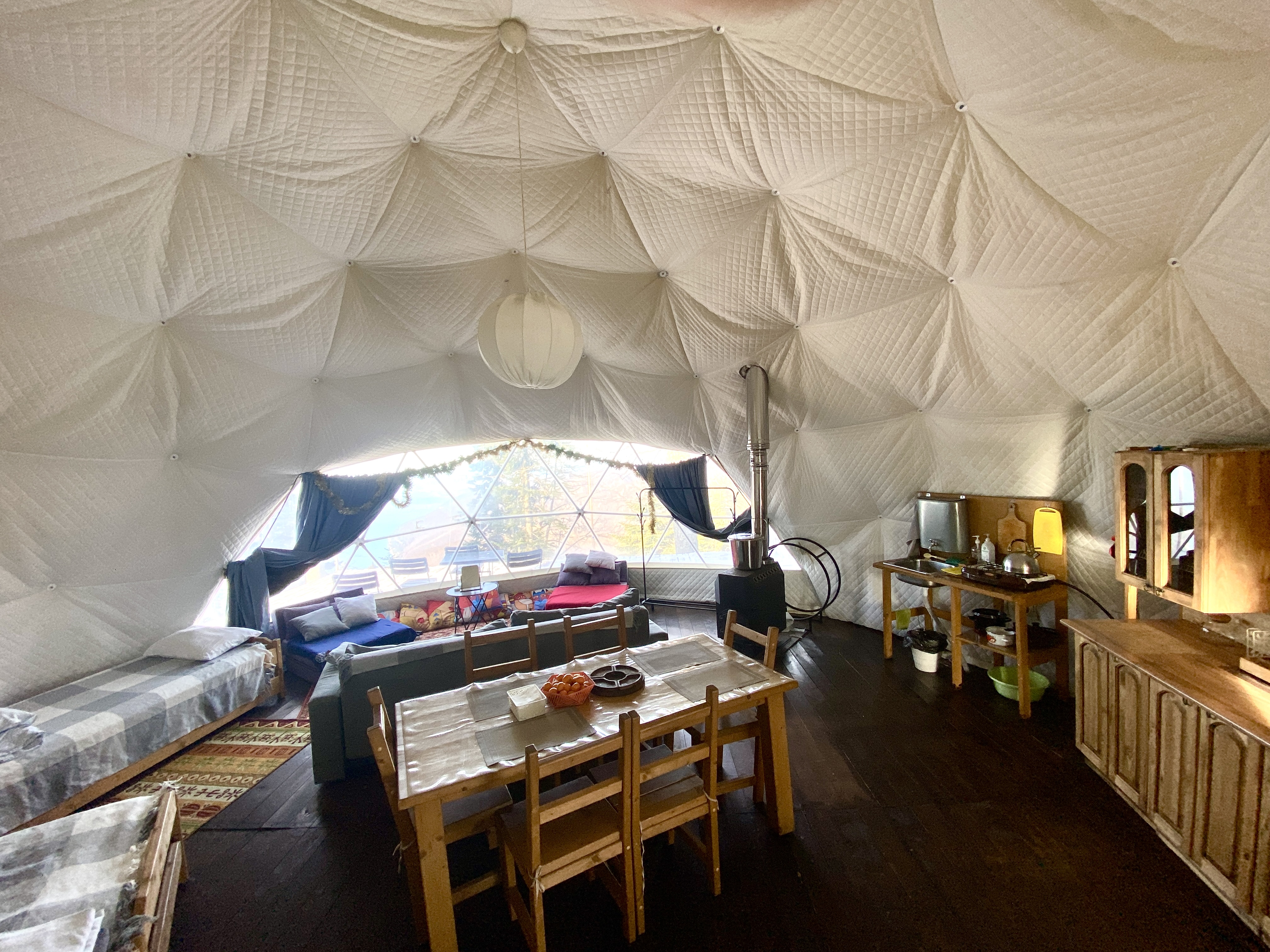 «Атмосфера» - это необычный комфортабельный эко-глэмпинг, расположенный в горах Абхазии, на горе Мамзышха, на высоте 1500 м над уровнем моря. До аэропорта в Адлере - 60 км, а до ближайшего населенного пункта 25 км.В «Атмосферу» приезжают гости, которые хотят отдохнуть в тишине от бешеного городского ритма, насладиться красотой и величием лесов, горных рельефов, побыть наедине с собой и своими мыслями. Глэмпинг «Атмосфера» - это уникальная возможность продлить удовольствие горного туризма на несколько дней и переночевать в уютном доме-сфере на горе Мамдзышха.Глэмпинг состоит из домов-сфер, рассчитанных до 6 человек.