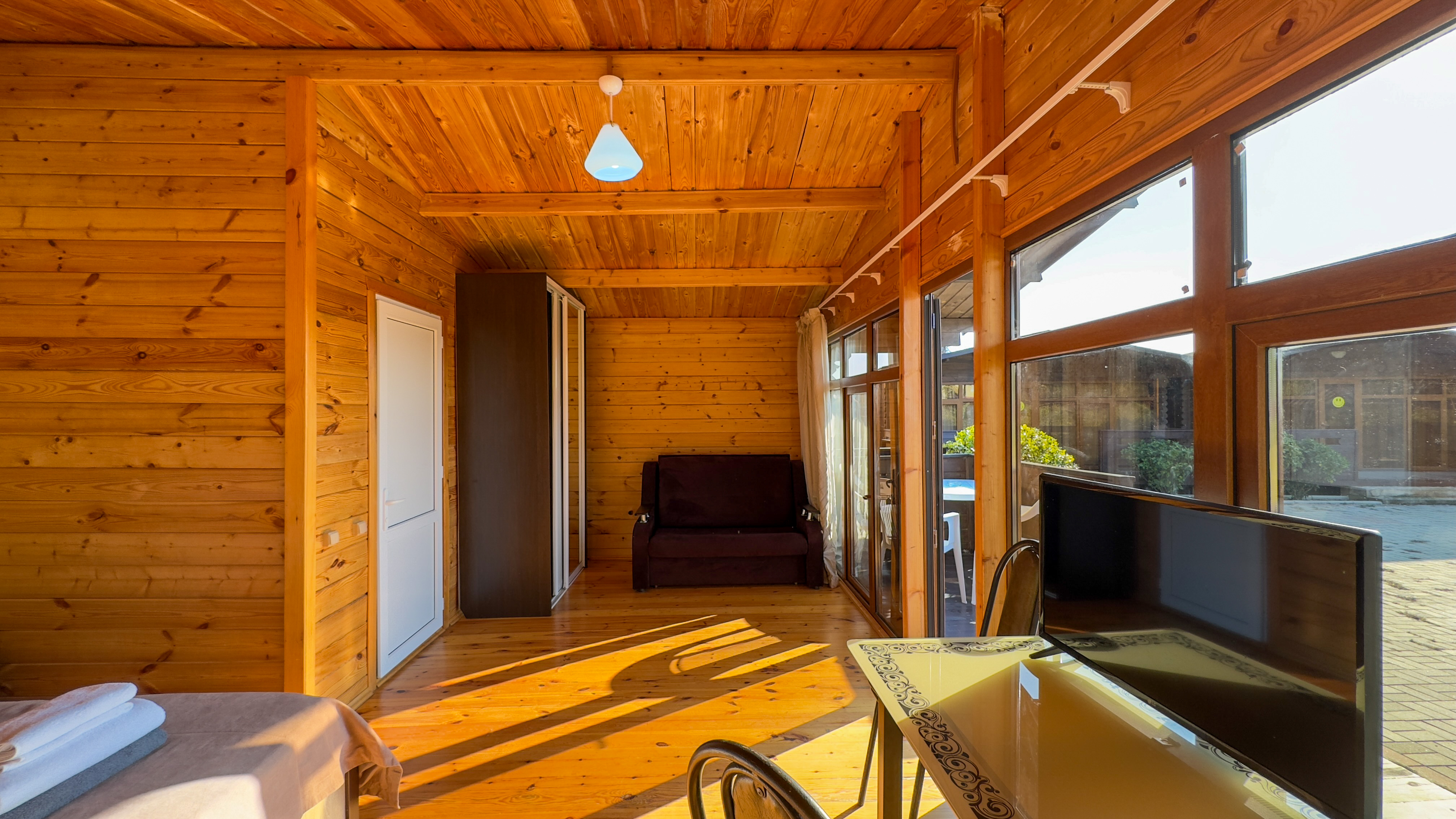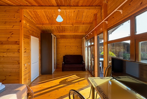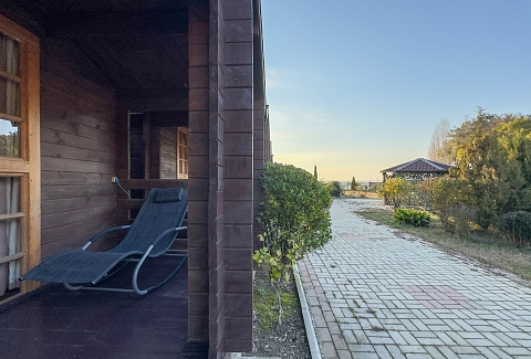 На живописной территории отеля находятся 4 каркасных бассейна – главное развлечение и радость для маленьких гостей, кафе с мангальной зоной, где гости смогут позавтракать и отведать шашлыки, рыбу или овощи на гриле, крытые лаунж-беседки с мебелью для отдыха, где можно вдоволь болтать, глядя на самое чистое и звездное небо Апсны. На ресепшене отеля предусмотрены настольные и спортивные игры: карты, мафия, шашки, шахматы, бадминтон.До оборудованного пляжа всего 20 метров, на пляже есть лежаки и навесы, которые предоставляются бесплатно для гостей отеля в высокий сезон.
