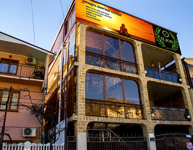 Отель «Илиос» расположен в одном из красивейших мест Абхазии – городе Гагра, в 300 метрах от моря. Отсюда видны склоны гор под лазурным небом. Красивый пейзаж сочетается с оживленностью курорта – «Илиос» находится рядом с кафе, экскурсионными бюро, аквапарком и центральным рынком, где всегда можно купить свежайшие овощи и фрукты.
