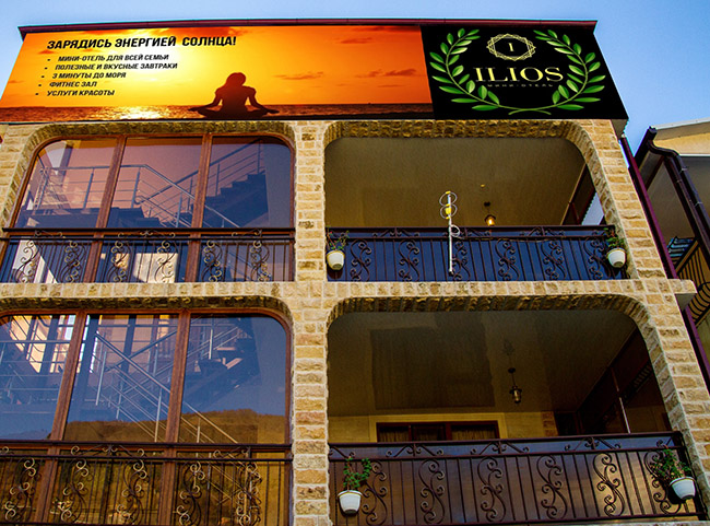 Название «Илиос» связано с древностью прекрасной абхазской земли, которая когда-то принадлежала грекам, как и оставшийся в легендах город Илион – Троя. Ажурные решетки, балконы и террасы в здании отеля тоже напоминают о сочетании старины и современности. В здании четыре этажа с номерами категории «стандарт»и «семейные»: небольшие, но уютные. В каждом – двуспальная кровать, холодильник, телевизор и кондиционер. Сотрудники отеля поддерживают в нем идеальную чистоту и порядок. К услугам отдыхающих в отеле «Илиос» – тренажерный зал и массажный кабинет.Городской пляж, с которого открывается вид на горы, – в пяти минутах ходьбы от отеля. Берег усыпан мелкой галькой, а море радует своей чистотой.