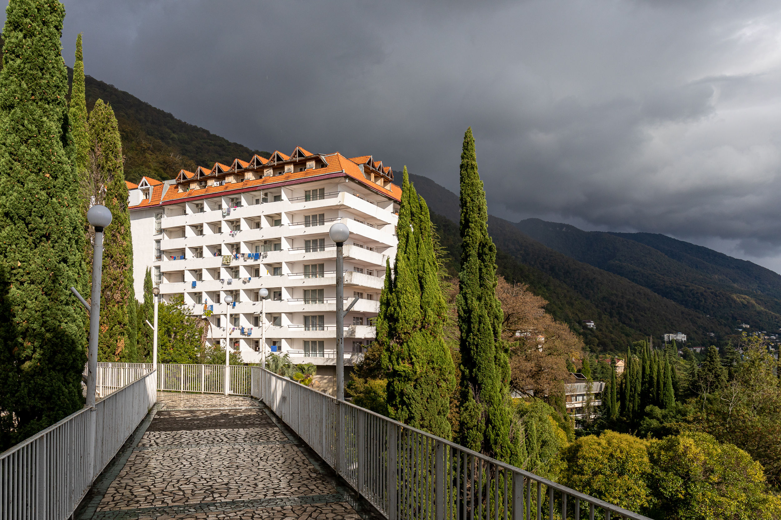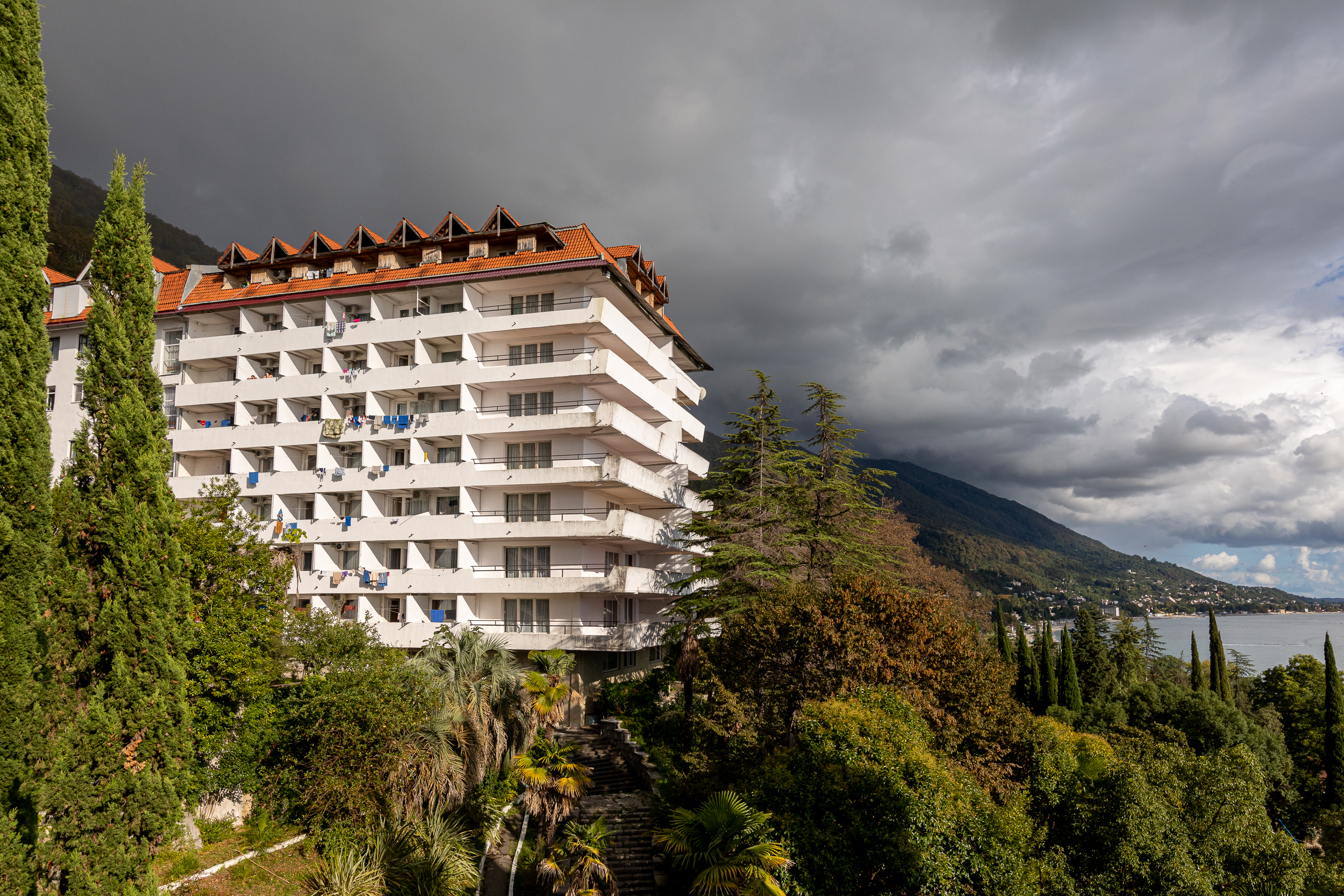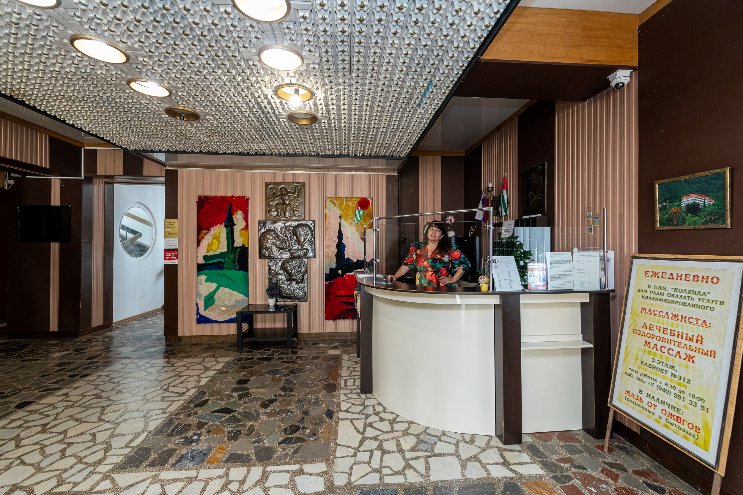 Курортный дом отдыха «Колхида» построен неподалеку от моря на склоне горного хребта в знаменитом городе Гагра — рядом с Приморским парком. Месторасположение гостиницы дарит возможность наслаждаться разнообразием курортных развлечений. Аквапарк, магазины, городской рынок, набережная с барами, кафе, ресторанами и дискотеками находятся буквально рядом.