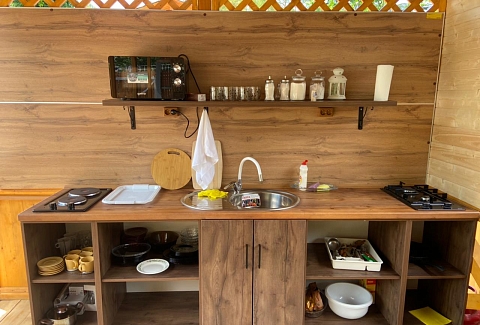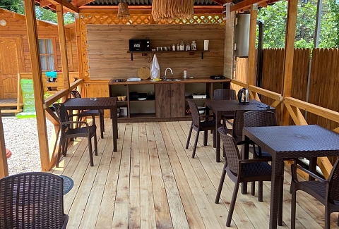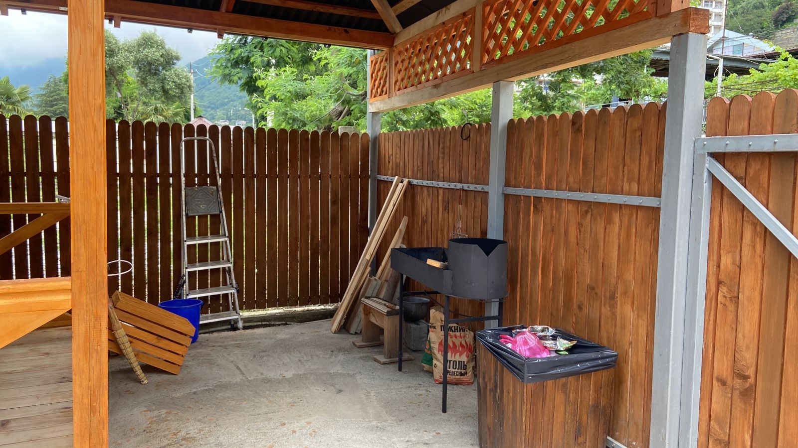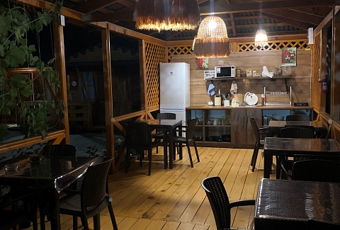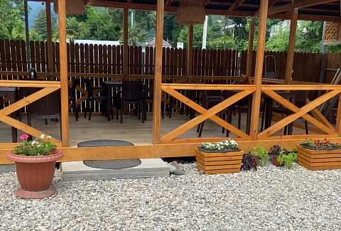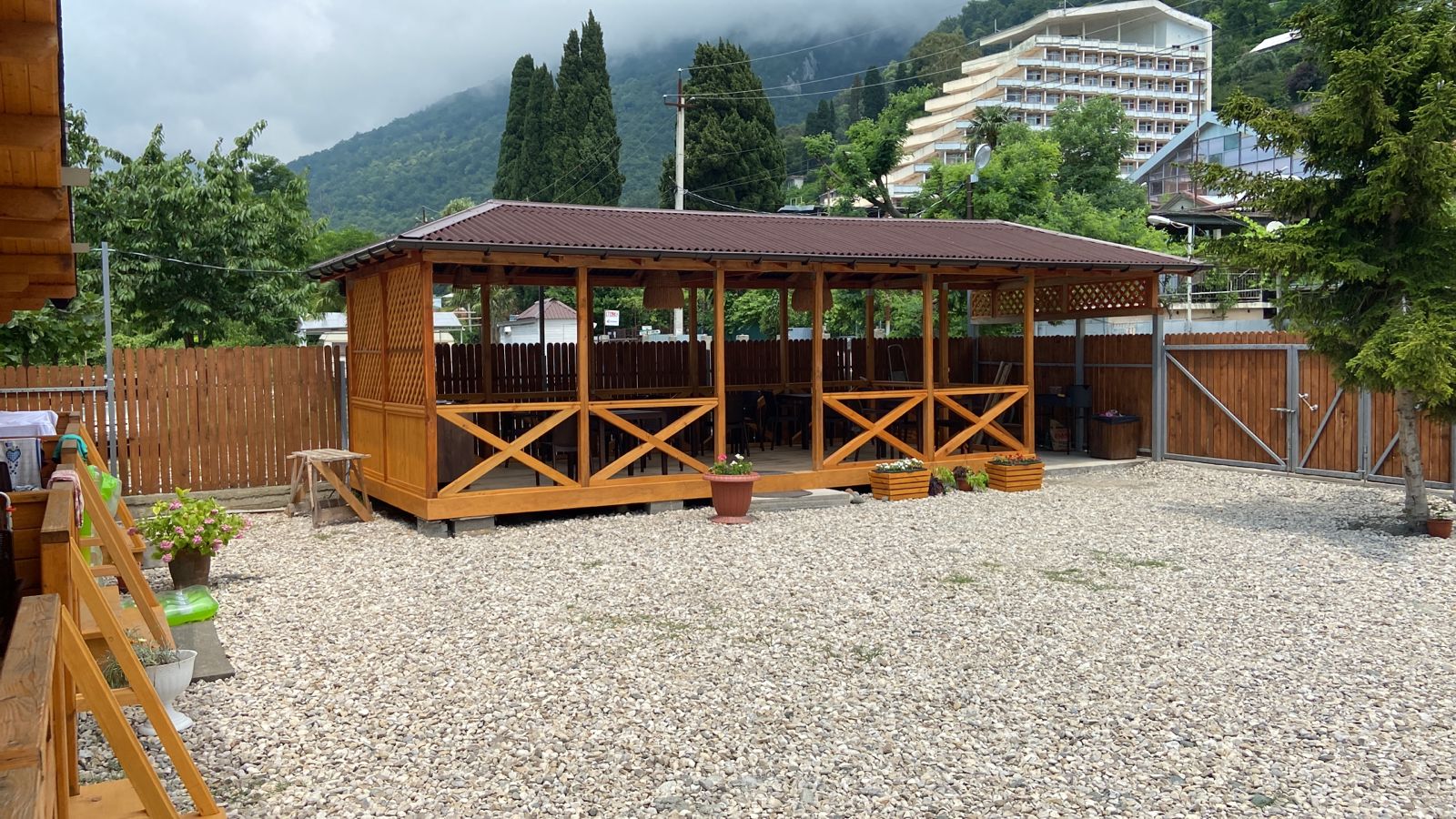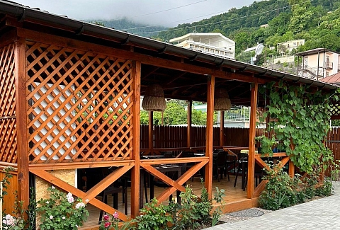 Коттеджный комплекс «Малина» располагается в самом центре старой Гагры, в 200 метрах от моря и плажа. В непосредственной близости полноценная инфраструктура города: остановка общественного транспорта, магазины, аптека, столовые, рестораны, пивоварни и городские парки, а рынок в 2 км.На территории предусмотрена терраса с общей кухней, оборудованная, всем необходимым, есть мангал и парковка. Для удобства гостей предоставляются стиральная машина, гладильная доска с утюгом.