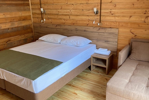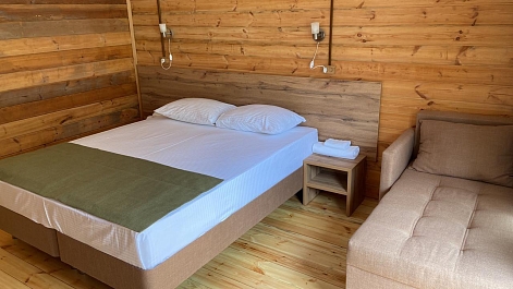 В номере: вешалка, зеркало, кресло-кровать, кровати односпальные /одна двуспальная кровать, прикроватные тумбочки, стол, стулья, шкаф, кондиционер, телевизор, холодильник