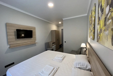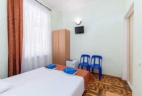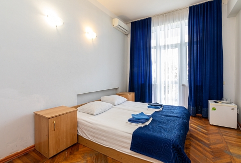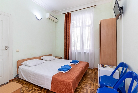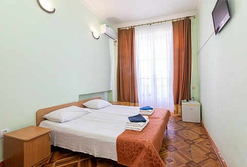 В номере: вешалка, зеркало, кровати односпальные /одна двуспальная кровать, прикроватные тумбочки, стол, стул, шкаф, кондиционер, мини-холодильник, телевизор
