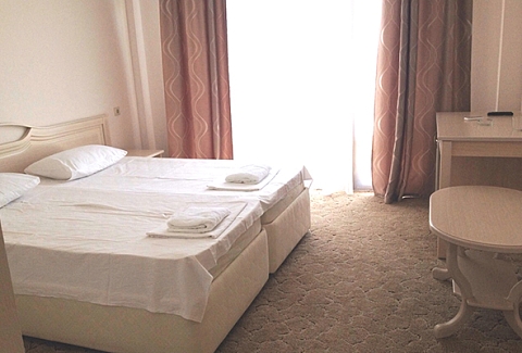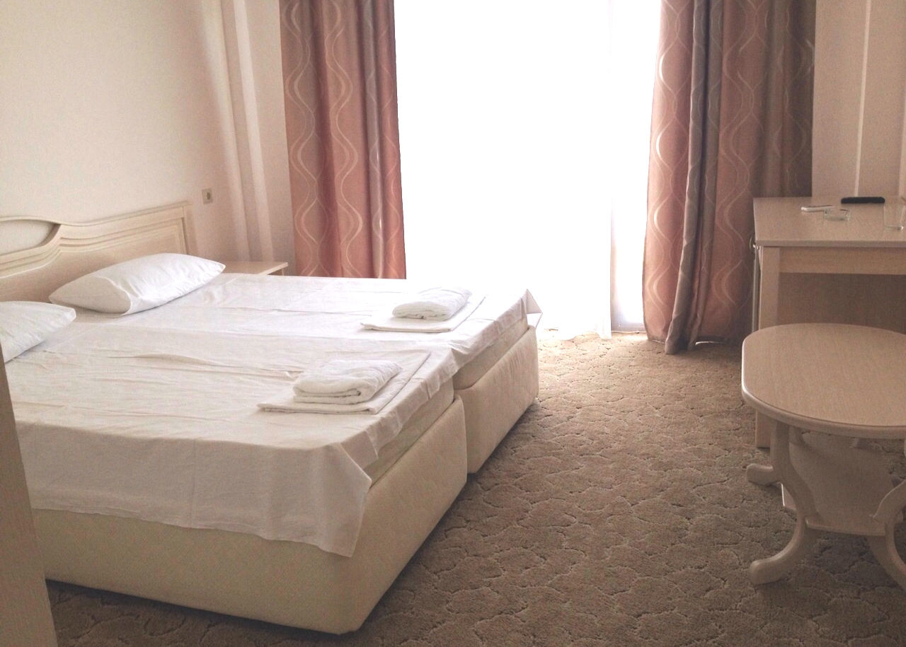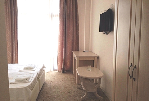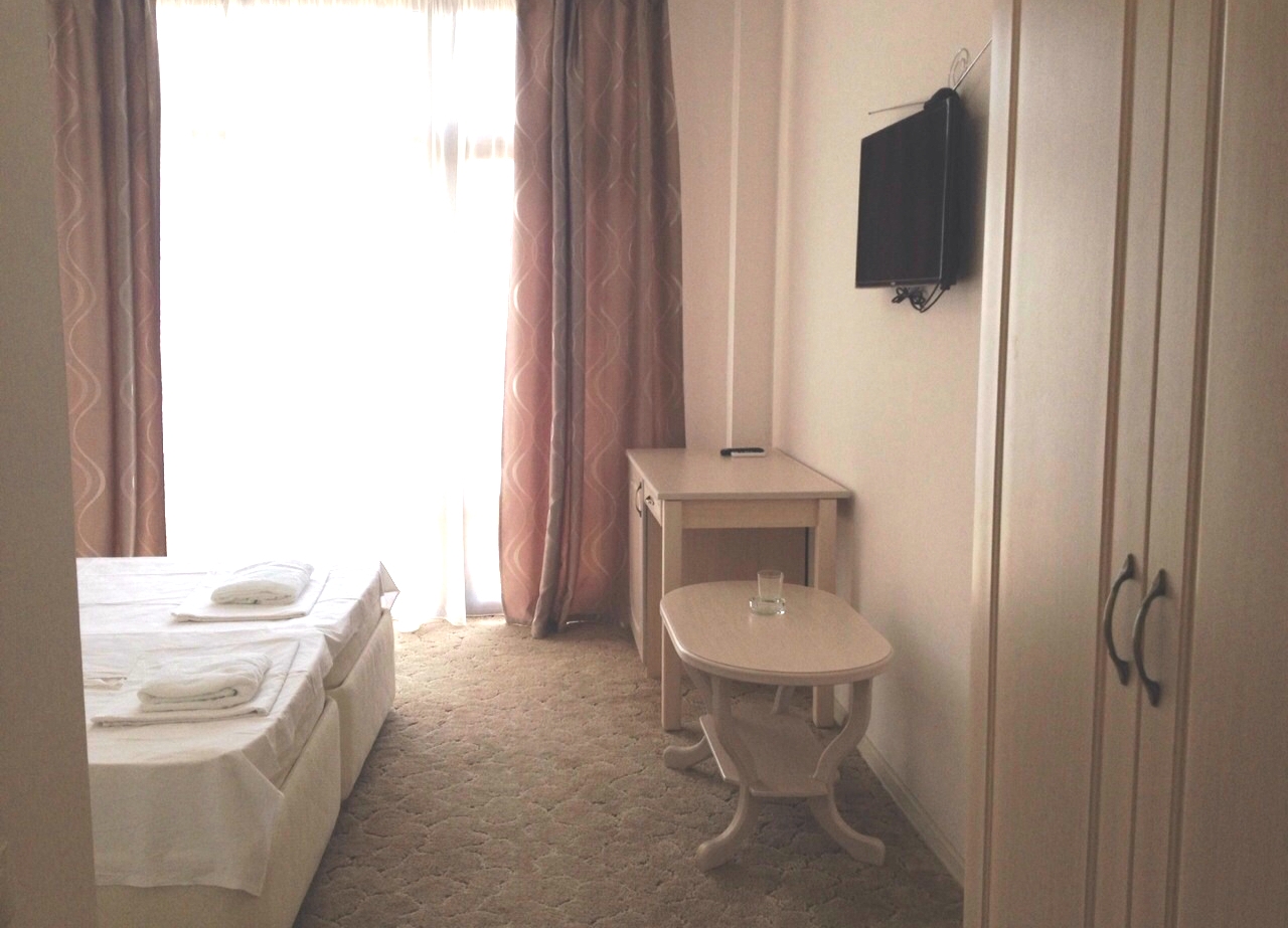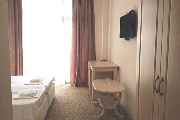 В номере: вешалка, зеркало, кровати односпальные /одна двуспальная кровать, прикроватные тумбочки, стол, стул, шкаф, кондиционер, телевизор, холодильник, чайный набор посуды, электрочайник