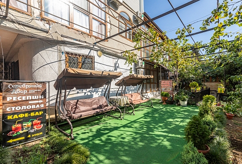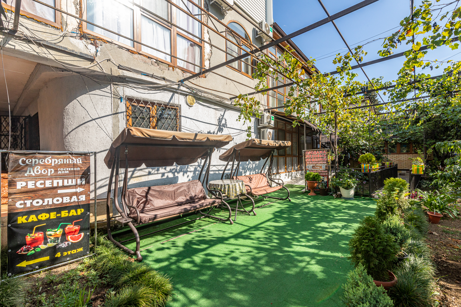 Гостиница «Серебряный двор» находится в 100 метрах от административного центра Гагры в 300 метрах от моря. В пешей доступности от отеля – единственный в Абхазии аквапарк с пятью пресноводными бассейнами и несколькими горками, множеством аттракционов для детей. «Серебряный двор» – частный отель, удобный для бюджетного отдыха молодежи и семей с детьми.Собственная гостиничная территория ухожена и утопает в зелени.