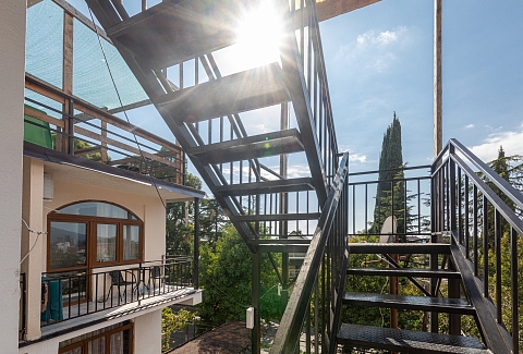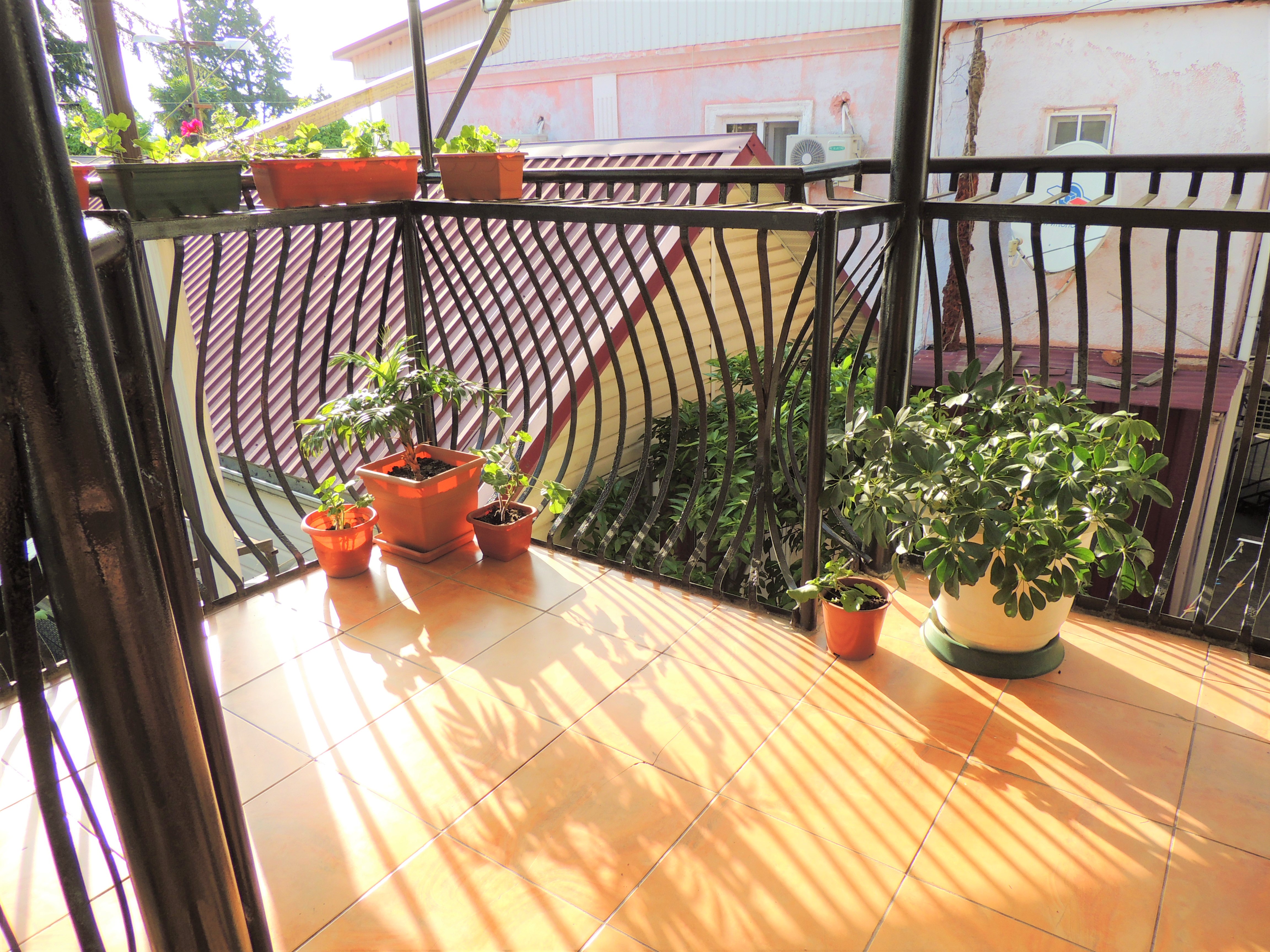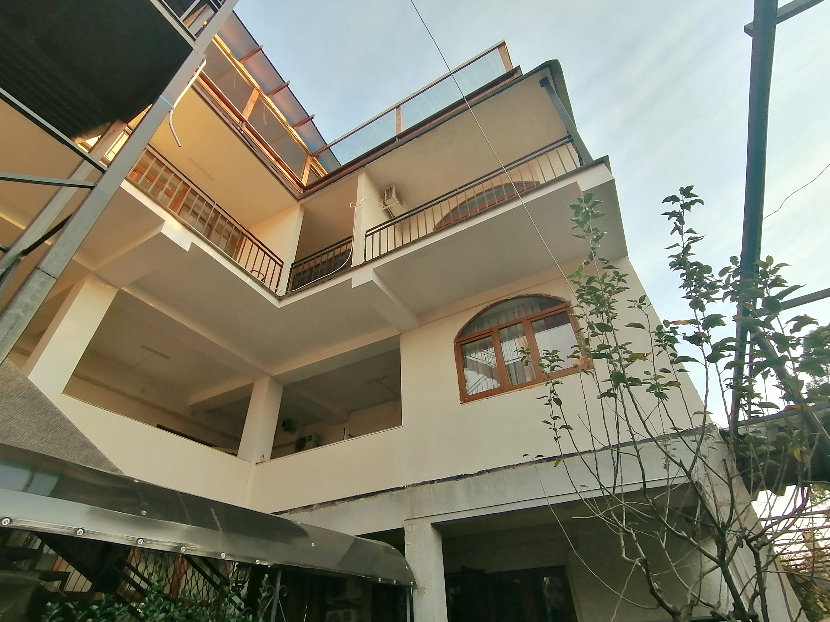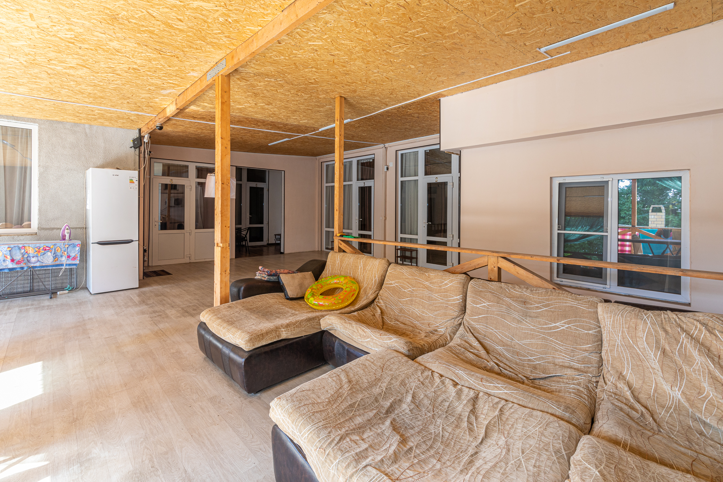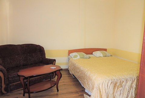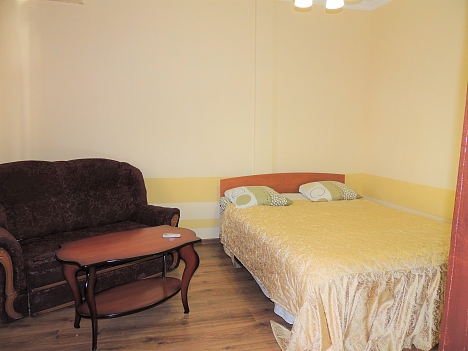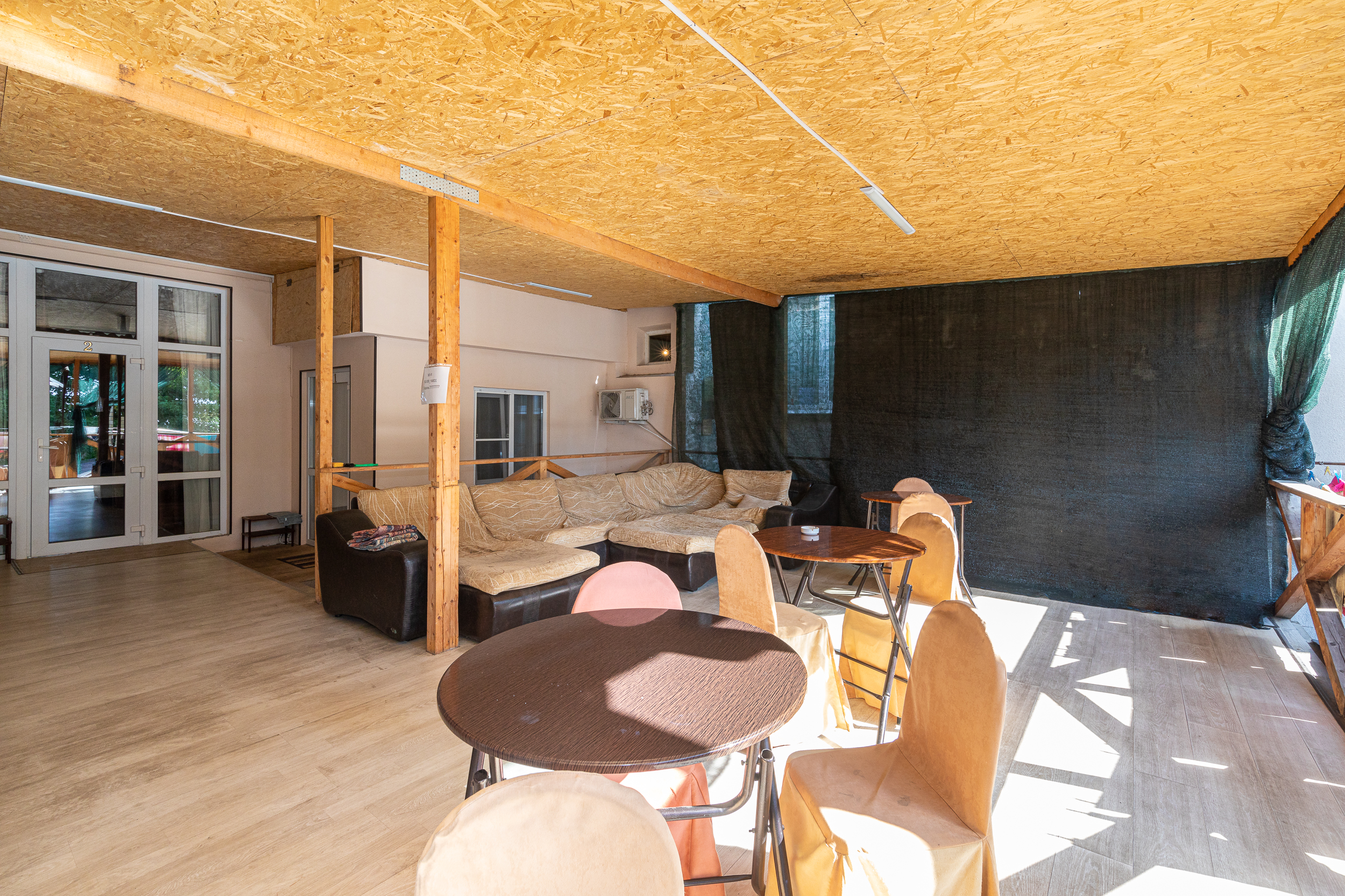 Гостиница представляет собой трехэтажный коттедж, способный разместить около 30 человек. Номера жилого фонда категорий «стандарт» снабжены санузлами с душем, для класса «эконом» удобства находятся на этаже. Все номера оборудованы кондиционерами и телевизорами, отдельные холодильники есть в «стандартах», а для «экономов» – также на этаже. Есть мангальная зона для шашлыков во дворе. Дорога к морю отнимает 5 -7 минут и проходит по тенистому Парку Славы или улочке, наполненной магазинчиками и кафе. Кроме ближайшего общественного пляжа, рядом немало пляжей пансионатов и гостиниц, которые можно посещать по договоренности. На берегу работают пункты проката и кафе, есть водные аттракционы для детей и взрослых.
