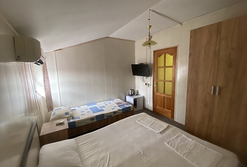 В номере: вешалка, зеркало, кровати односпальные /одна двуспальная кровать, кровать односпальная, шкаф, кондиционер, телевизор, холодильник