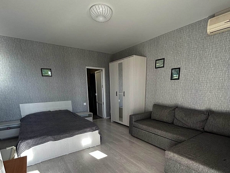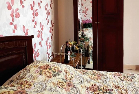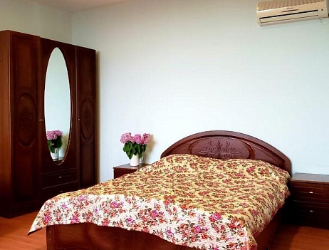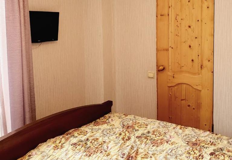 В номере: вешалка, диван раскладной, зеркало, кровать двуспальная, прикроватные тумбочки, шкаф, гладильная доска, кондиционер, мини-холодильник, телевизор, утюг, электрочайник