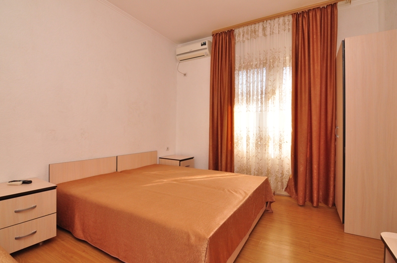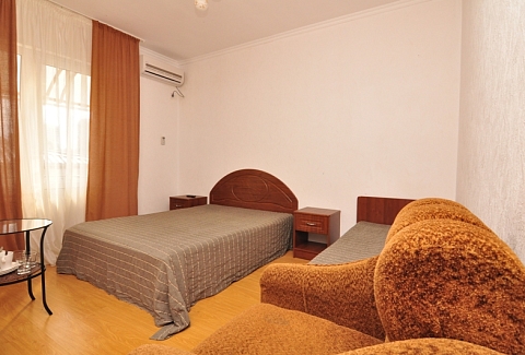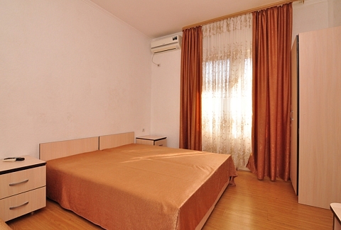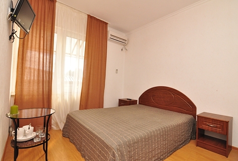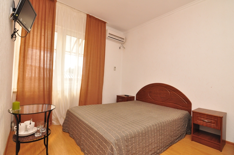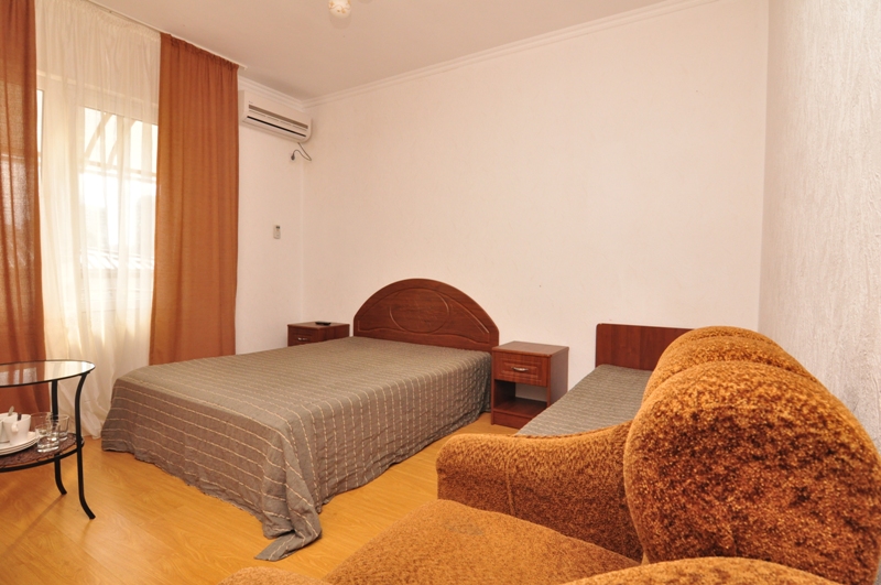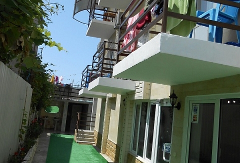 Четырехэтажный корпус отеля (без лифта) возвышается на закрытой охраняемой территории. Гостей ожидают 18 номеров категории Стандарт, рассчитанных на 2-х и 3-х местное размещение. В номерах есть необходимая мебель, собственный санузел с душем и бытовая техника — кондиционер, телевизор, холодильник. В некоторых комнатах предусмотрен балкон. При гостевом доме работает кафе, есть мангальная площадка, где отдыхающие могут пожарить мясо или сделать овощи-гриль. В распоряжении гостей крытый бассейн, беспроводной интернет на всей территории, для автовладельцев организована парковочная зона. На ресепшене можно заказать трансфер или приобрести экскурсии по главным достопримечательностям республики. В 800 метрах от корпуса находится городской пляж. Пляж, покрытый галькой, оборудован раздевалками.