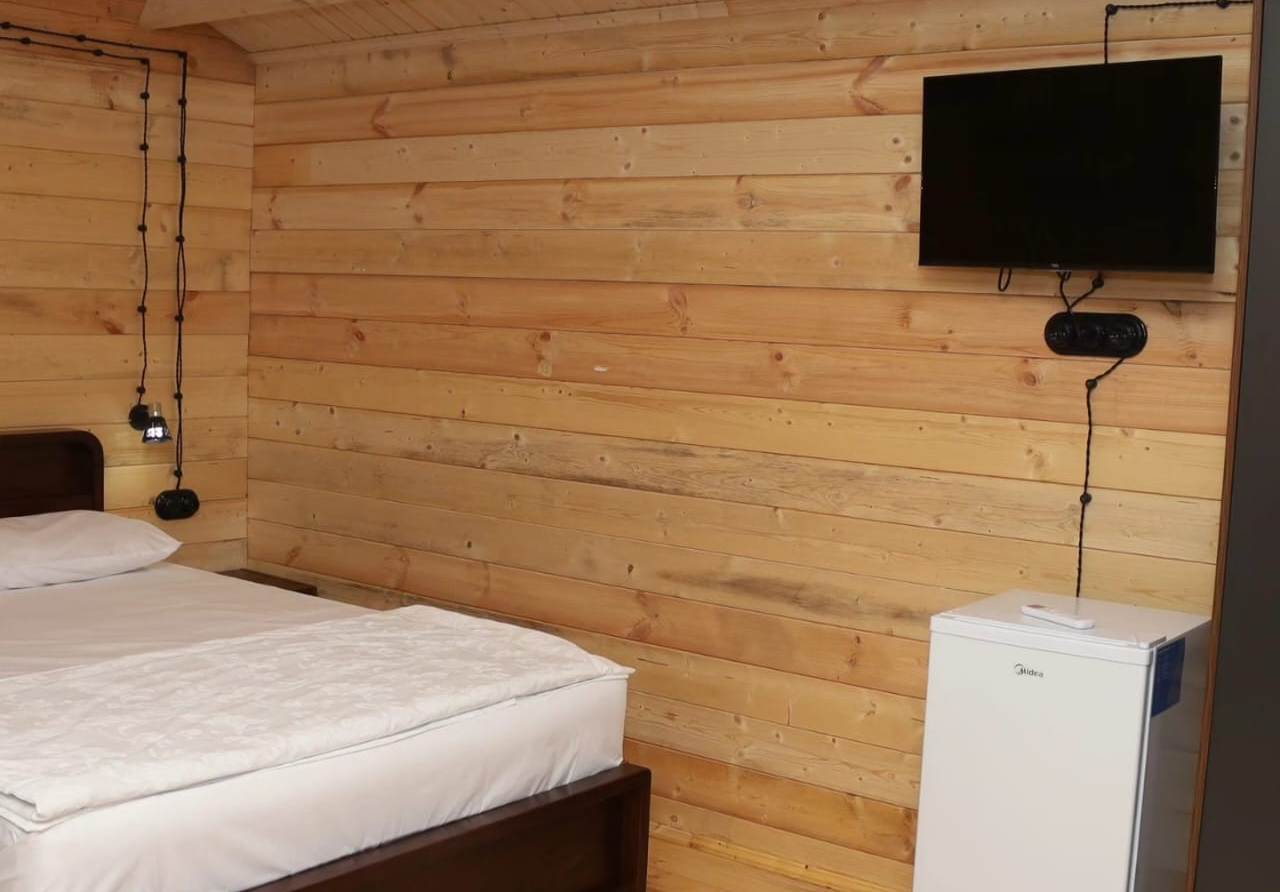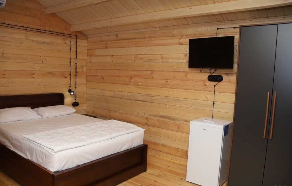 В номере: вешалка, зеркало, кровать двуспальная, прикроватные тумбочки, стол, стул, шкаф, кондиционер, мини-холодильник, телевизор