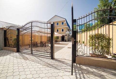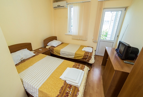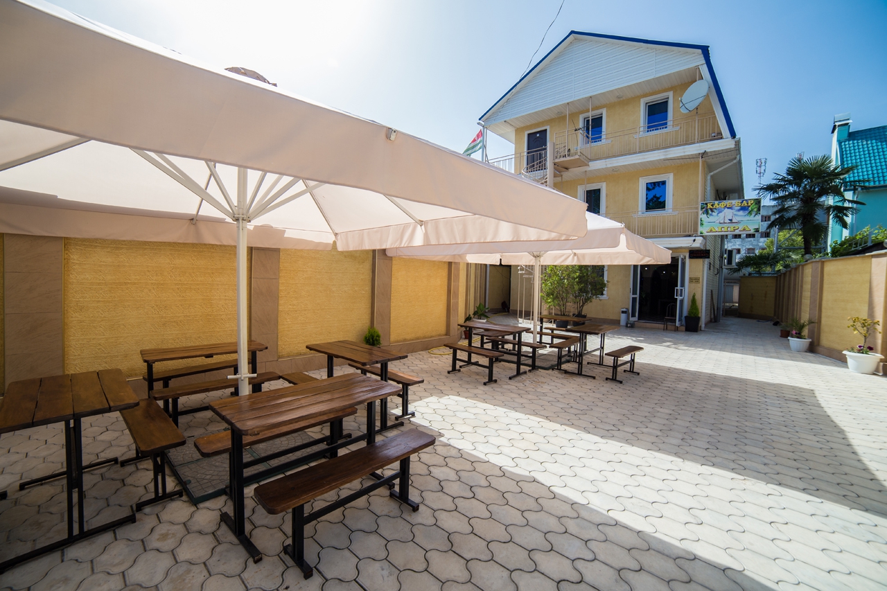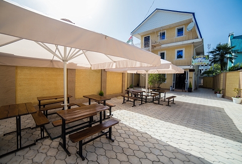 Гостей ожидают двухместные номера Стандарт и четырехместные Семейные, в которых имеются индивидуальный санузел, кондиционер, телевизор и холодильник.При гостевом доме работает кафе с абхазской кухней. На территории доступна сеть wi-fi, для автовладельцев предусмотрена охраняемая парковка. Всего в 200 метрах от отеля разместился необорудованный галечный пляж.