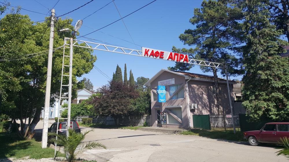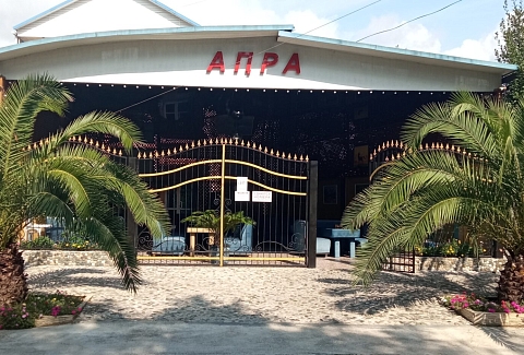 Гостевой дом «Апра» находится в восточной части Гудауты, на второй береговой линии, в районе дома культуры. Рядом — краеведческий музей, городской рынок, есть несколько кафе, продуктовых магазинов, аптек. За час можно доехать до российско-абхазской границы, а до аэропорта Адлера - 80 километров.Небольшой гостевой дом занимает закрытую территорию.