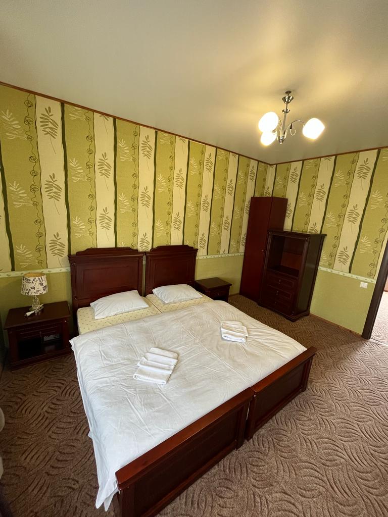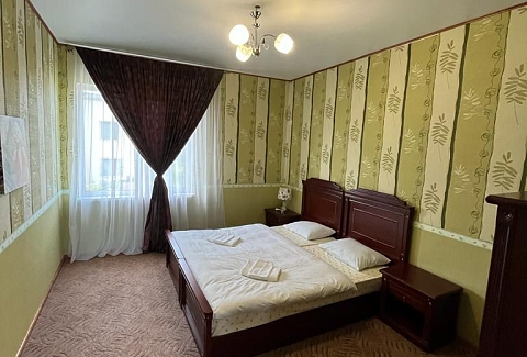 В номере: вешалка, диван раскладной, зеркало, кровати односпальные /одна двуспальная кровать, прикроватные тумбочки, стол, столик журнальный, стул, шкаф, кондиционер, мини-холодильник, телевизор