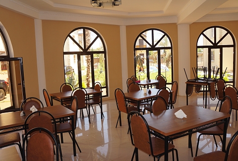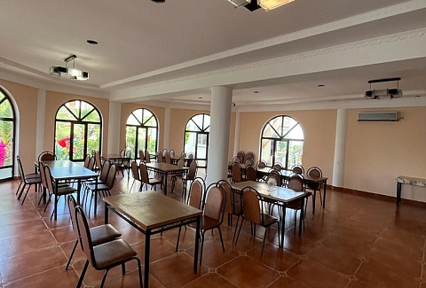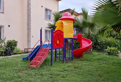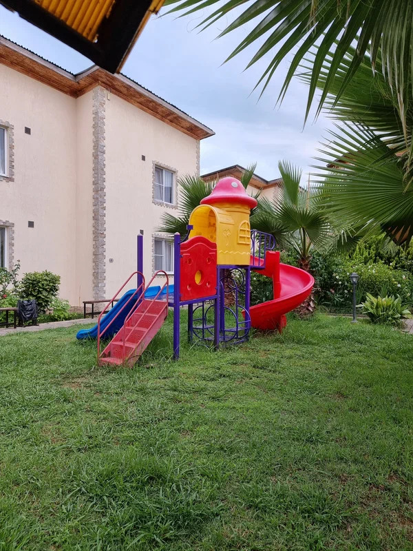 Еще одно преимущество отеля собственные бар и столовая. В его обеденном зале подают завтраки, обеды и ужины, приготовленные из лучших местных продуктов. Для юных гостей на территории «Дени Дельмар» есть детская площадка с горками.