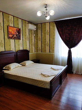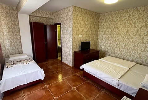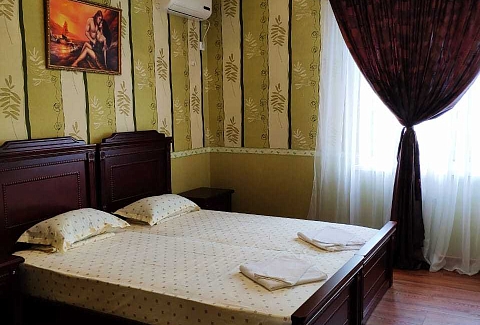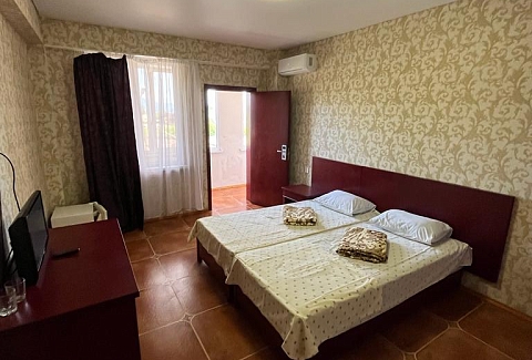 В номере: вешалка, зеркало, комод, кровати односпальные /одна двуспальная кровать, прикроватные тумбочки, шкаф, кондиционер, мини-холодильник, телевизор