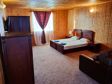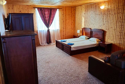 В номере: вешалка, диван раскладной, зеркало, комод, кровати односпальные /одна двуспальная кровать, прикроватные тумбочки, стол, столик журнальный, стул, шкаф, кондиционер, мини-холодильник, телевизор