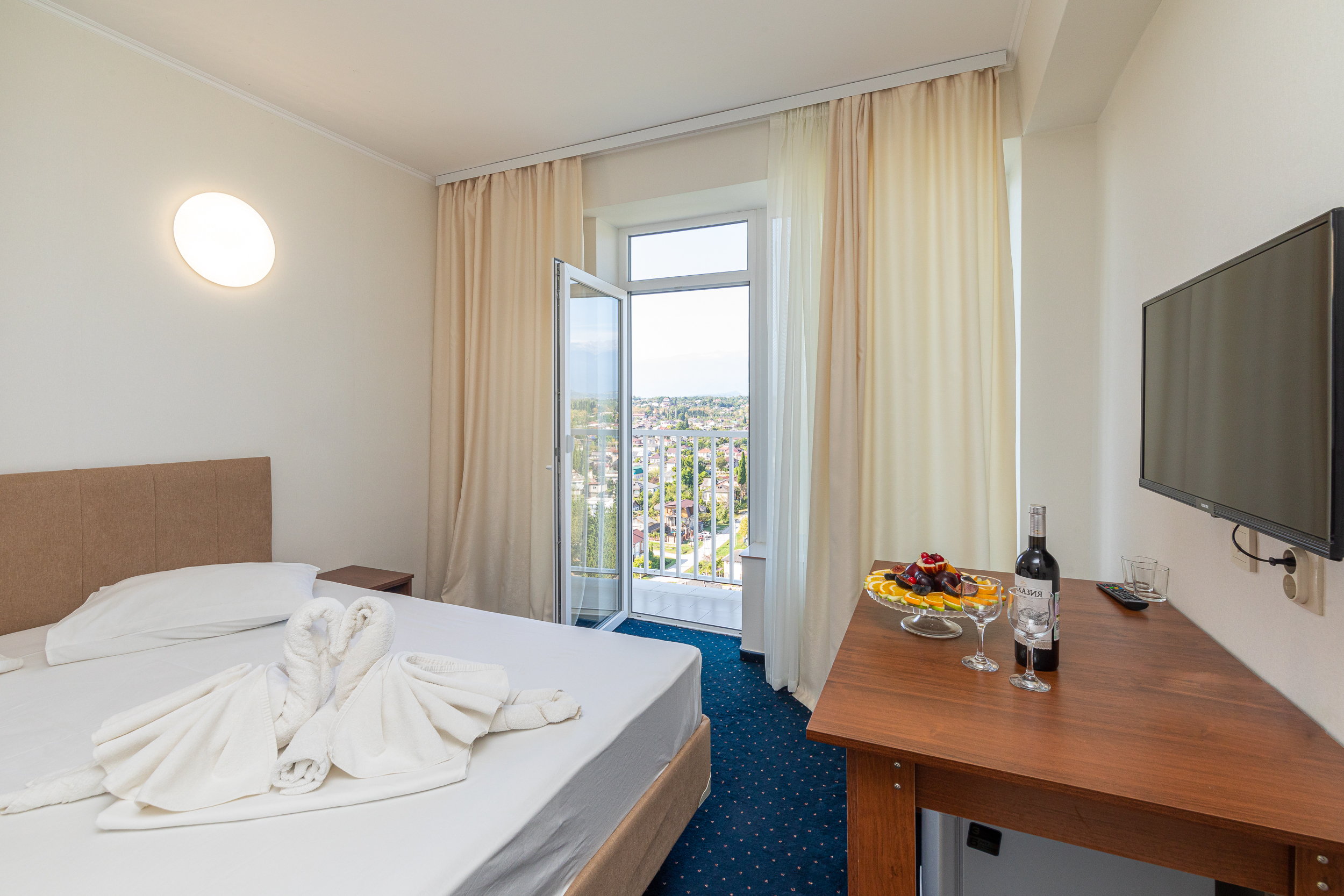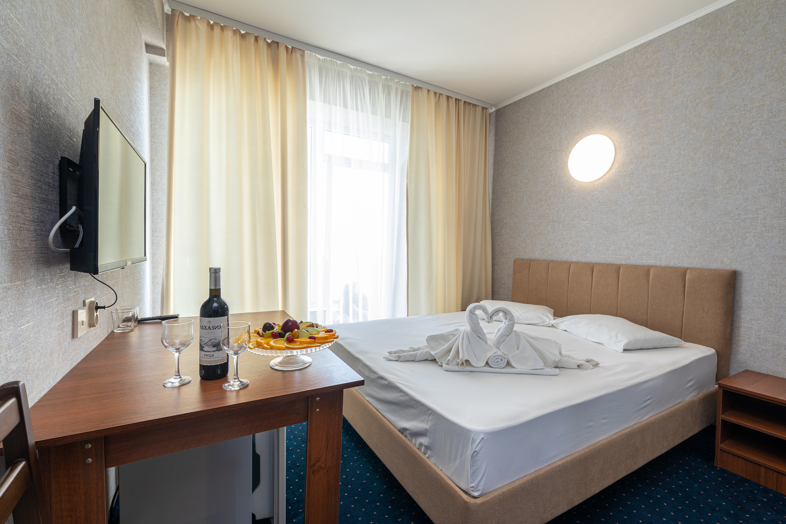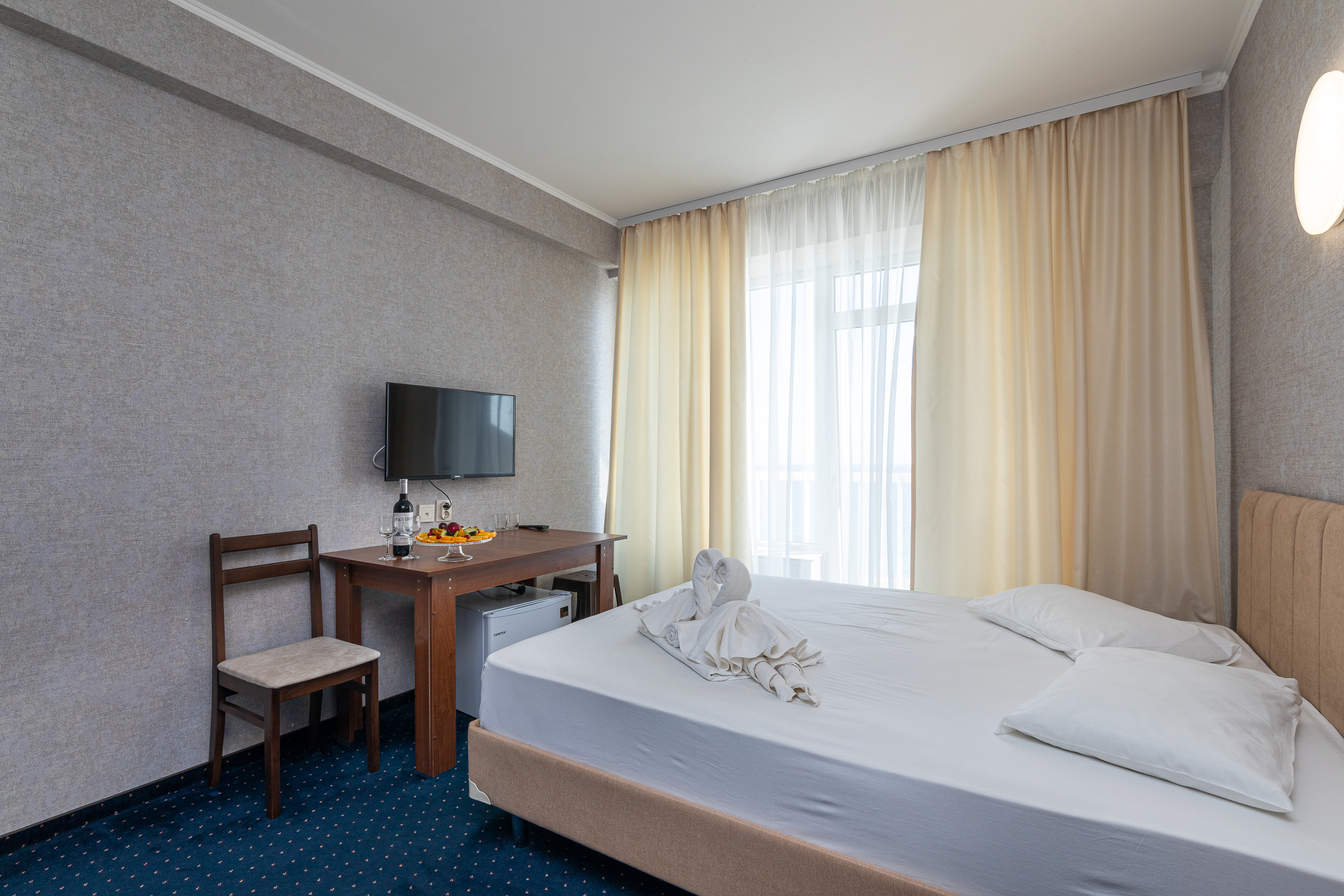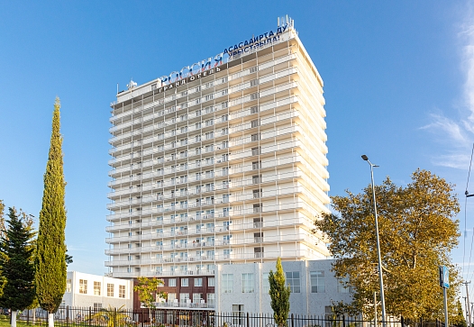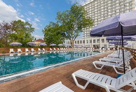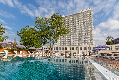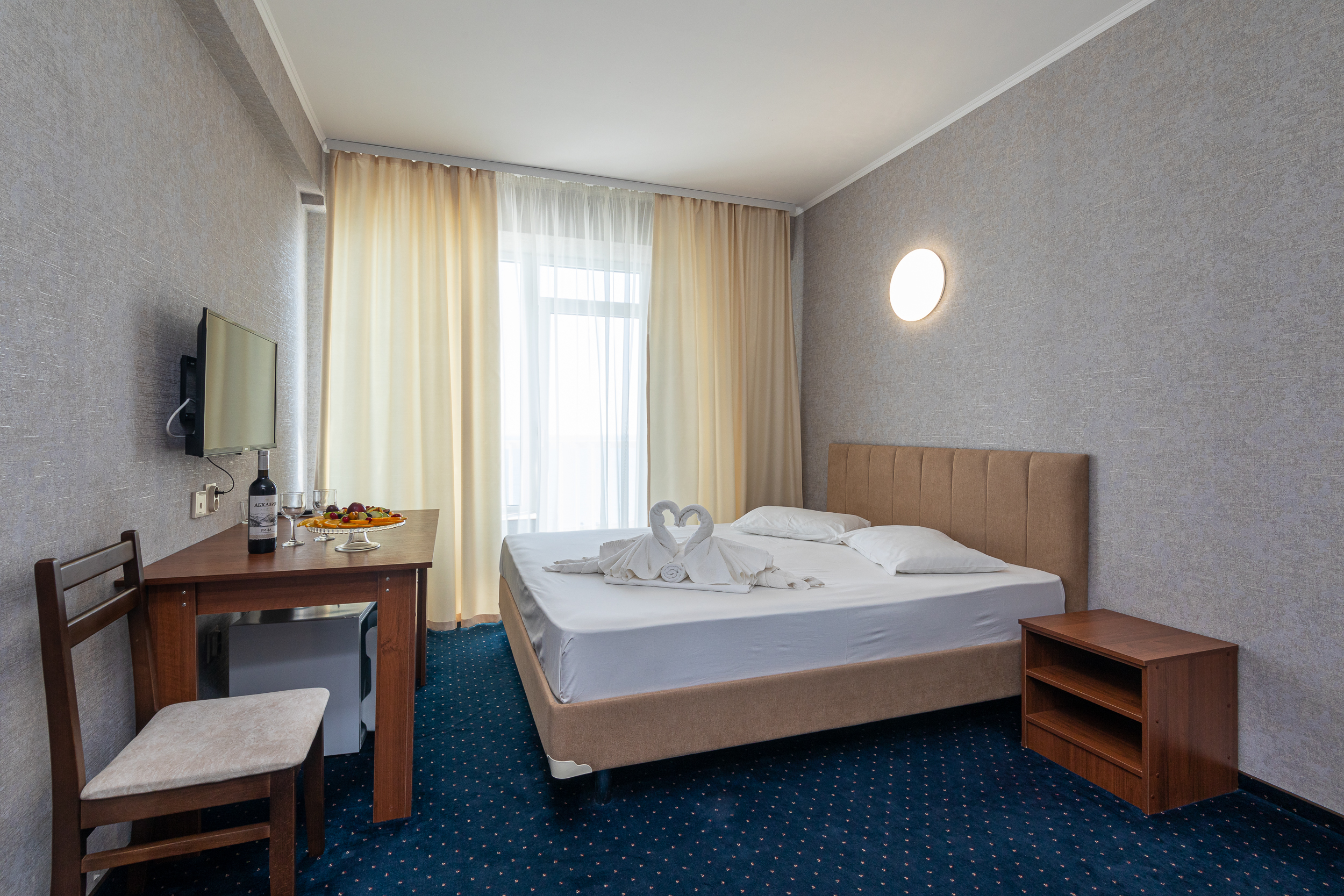 Восемнадцатиэтажное здание гостиницы возвышается на одной из главный улиц города — проспекте Героев. Обширный жилой фонд включает в себя 364 номера разной категории комфорта. В каждом — индивидуальный санузел с душем, кондиционер, телевизор и холодильник.В отеле работают лобби-бар и столовая, где гостям ежедневно сервируется завтрак или 3-разовое питание. Среди услуг — беспроводной интернет и охраняемая парковка для гостей на машинах.Всего в 100 метрах от отеля находится песчано-галечный пляж. На побережье установлены раздевалки, открыт бар, есть лежаки и зонты от солнца.