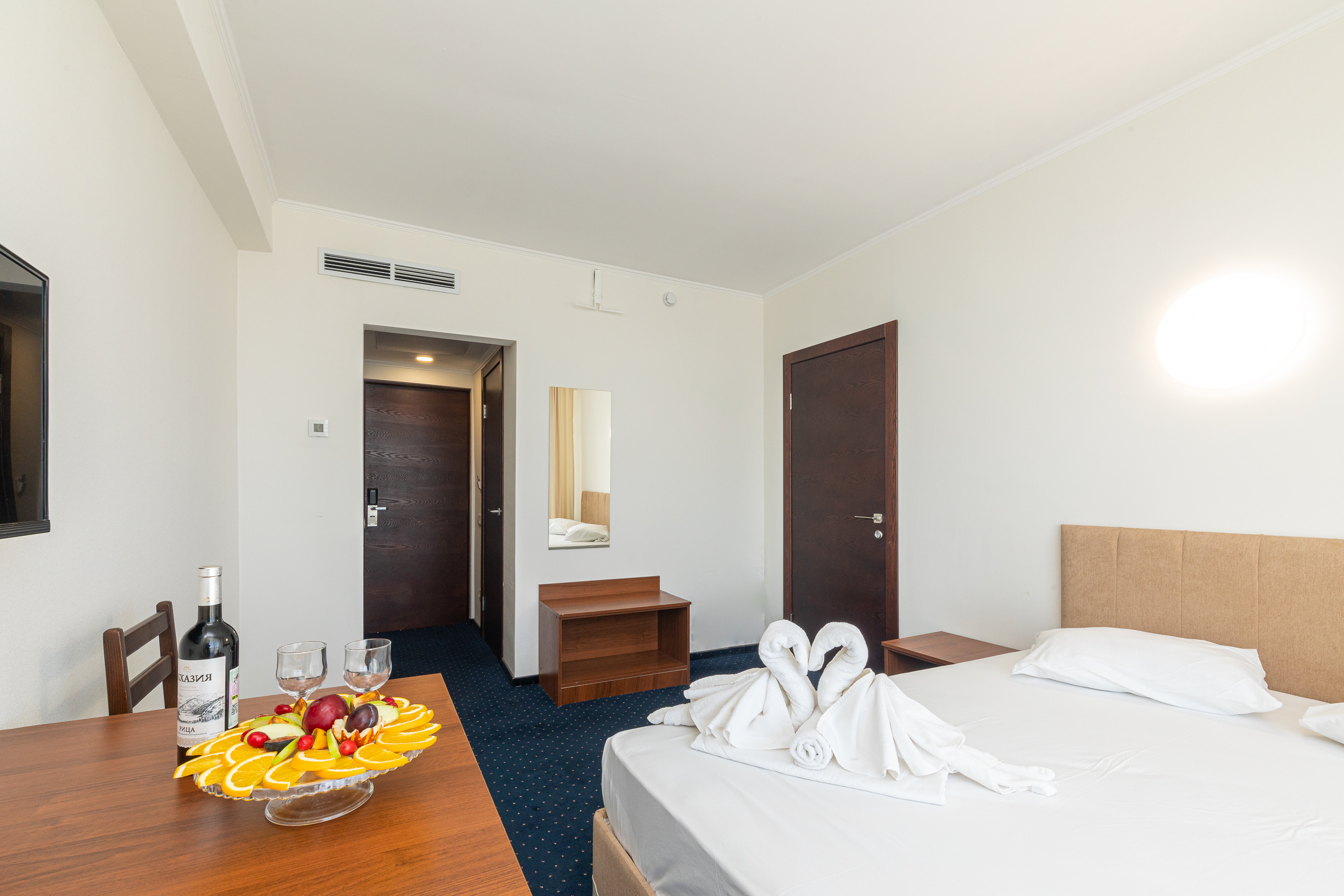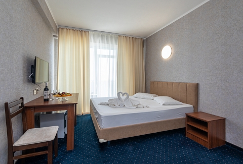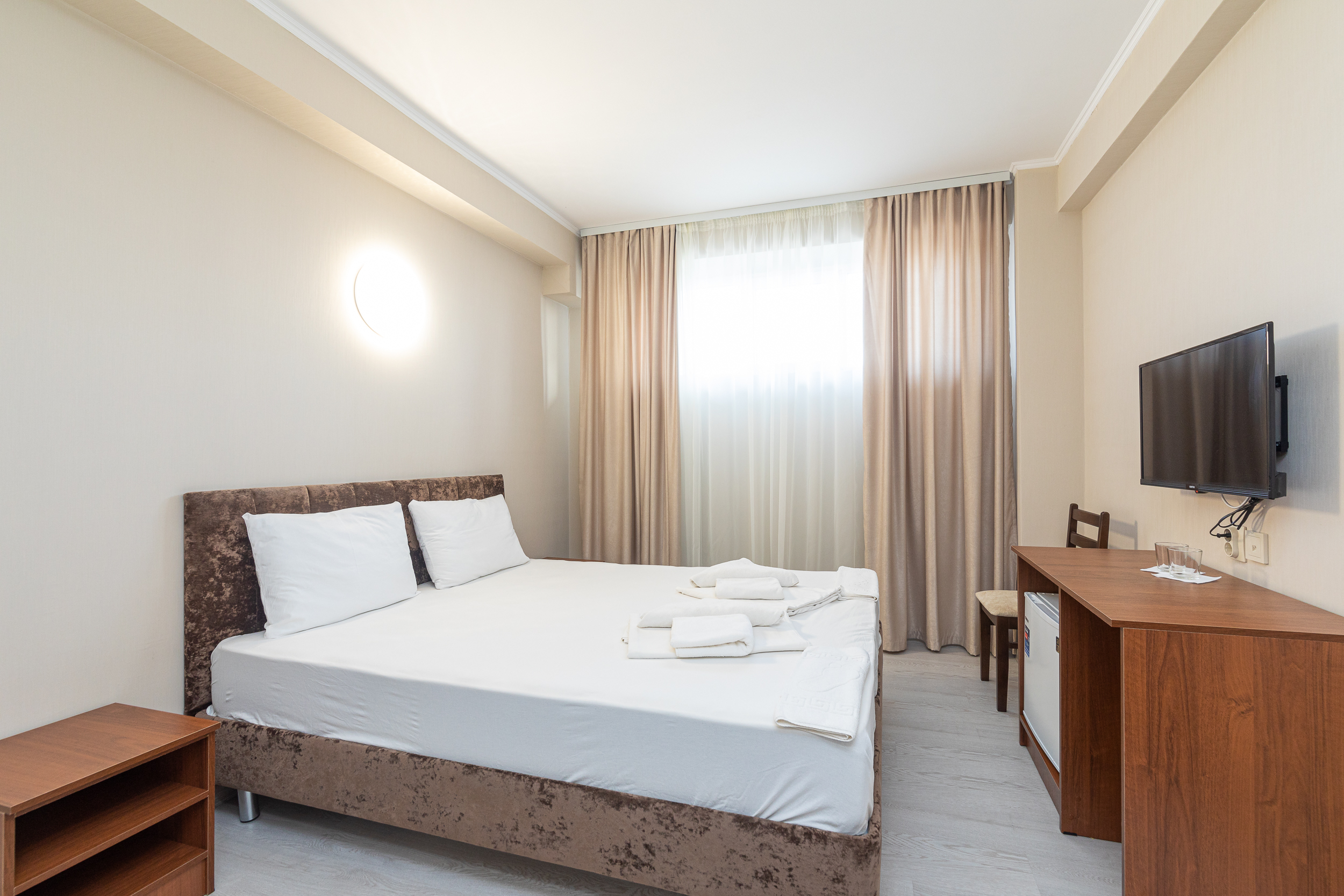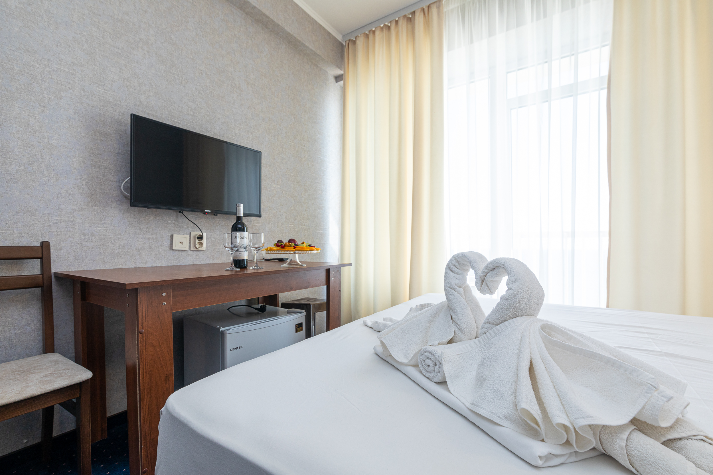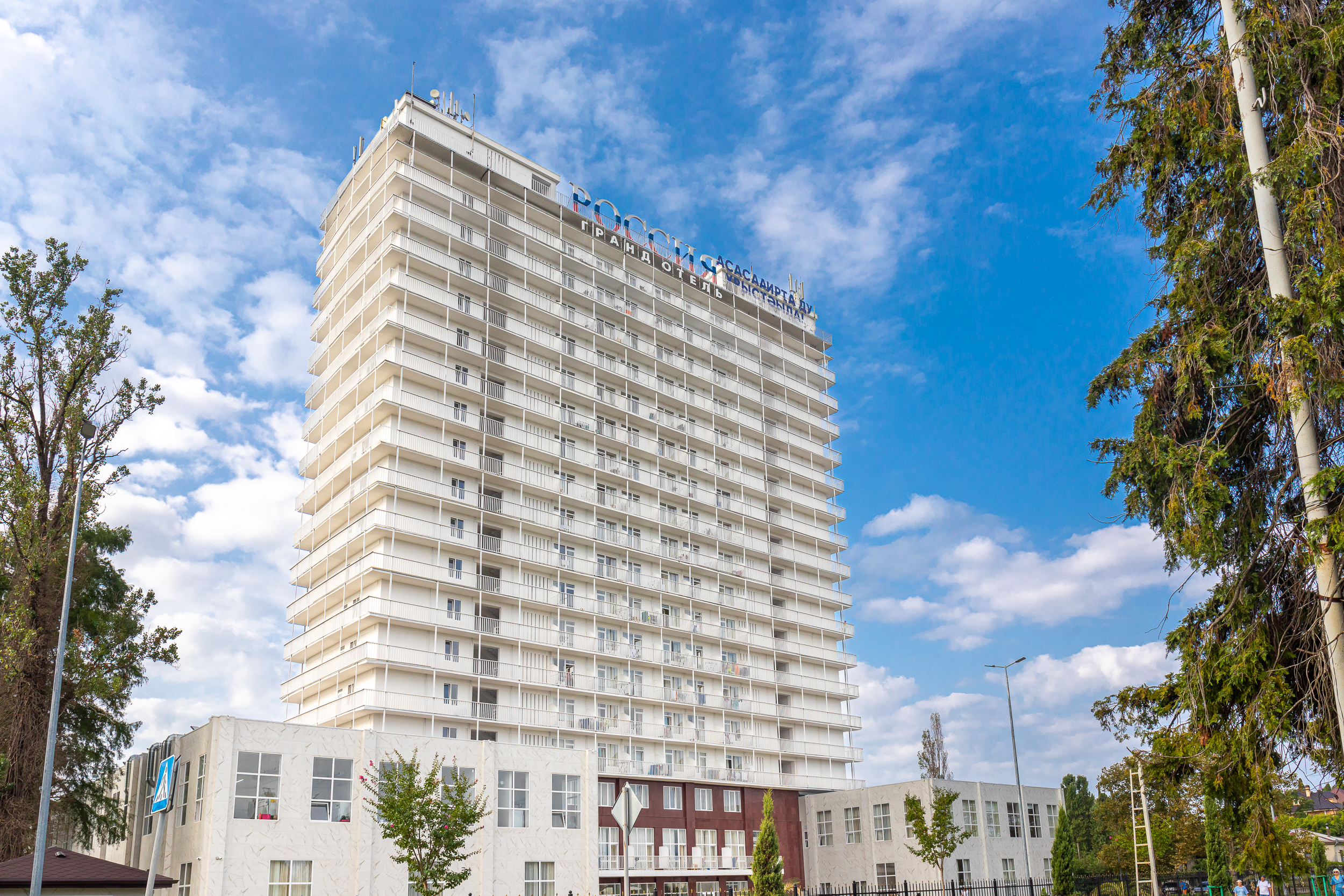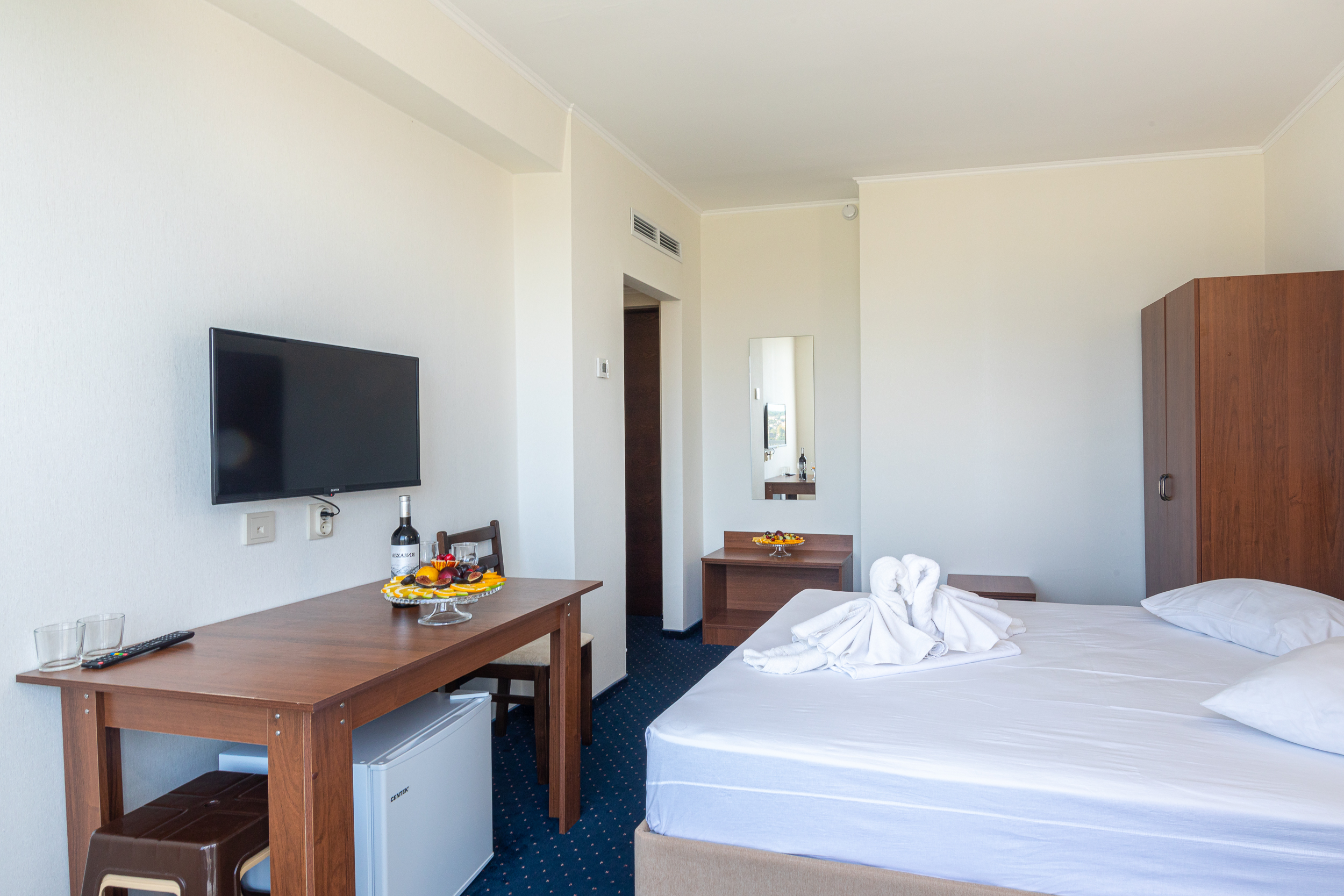 Восемнадцатиэтажное здание гостиницы возвышается на одной из главный улиц города — проспекте Героев. Обширный жилой фонд включает в себя 364 номера разной категории комфорта. В каждом — индивидуальный санузел с душем, кондиционер, телевизор и холодильник.В отеле работают лобби-бар и столовая, где гостям ежедневно сервируется завтрак или 3-разовое питание. Среди услуг — беспроводной интернет и охраняемая парковка для гостей на машинах.Всего в 100 метрах от отеля находится песчано-галечный пляж. На побережье установлены раздевалки, открыт бар, есть лежаки и зонты от солнца.