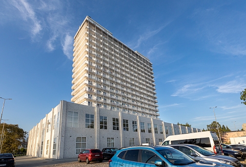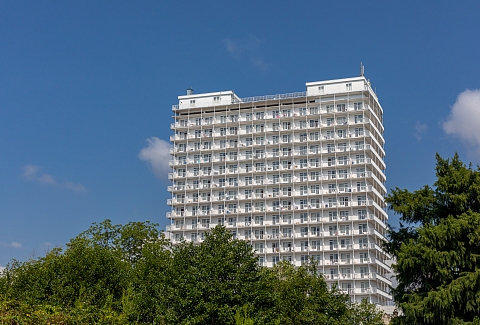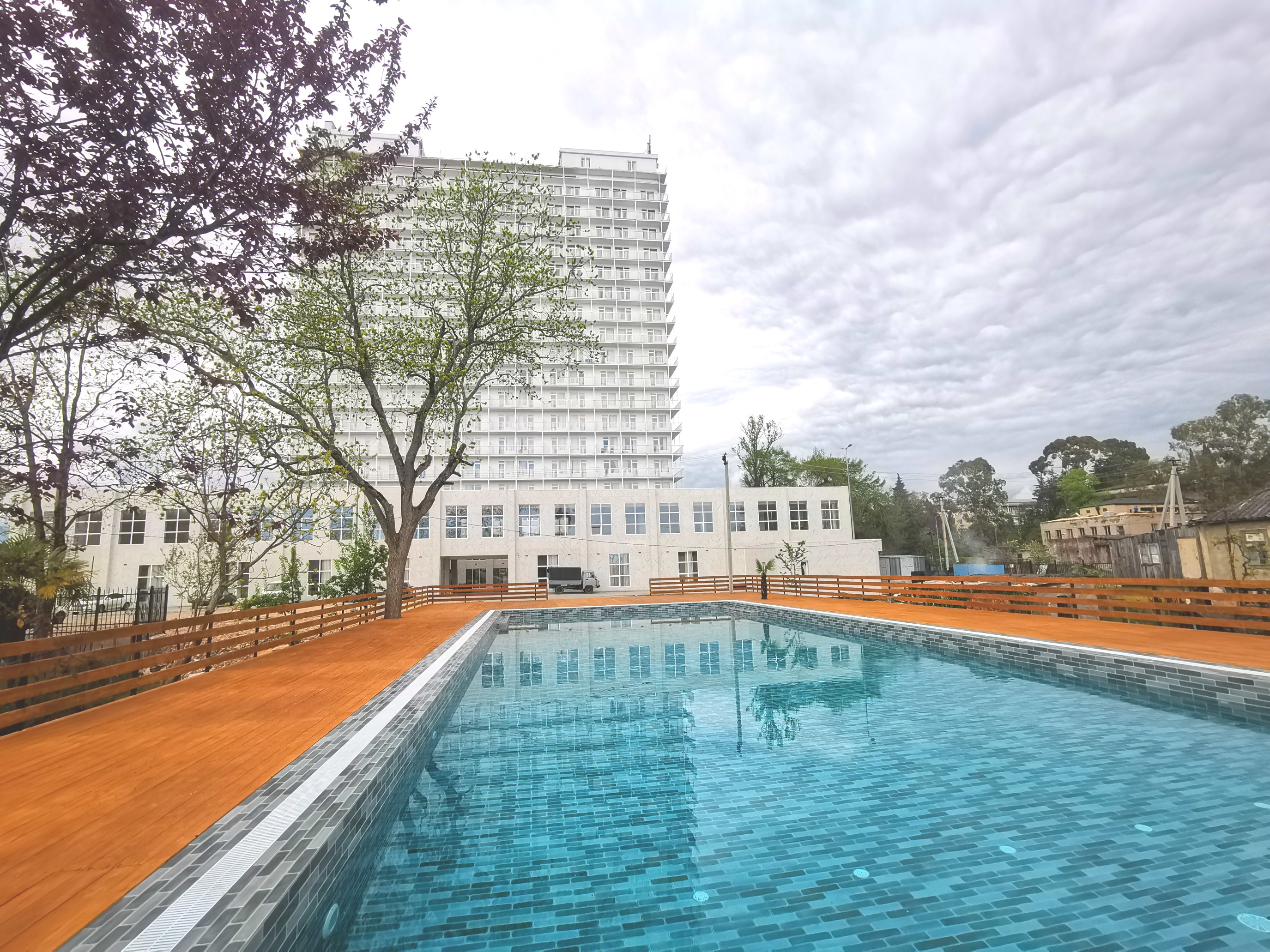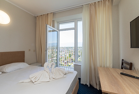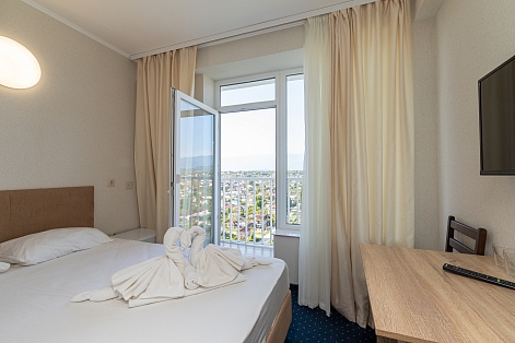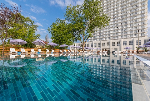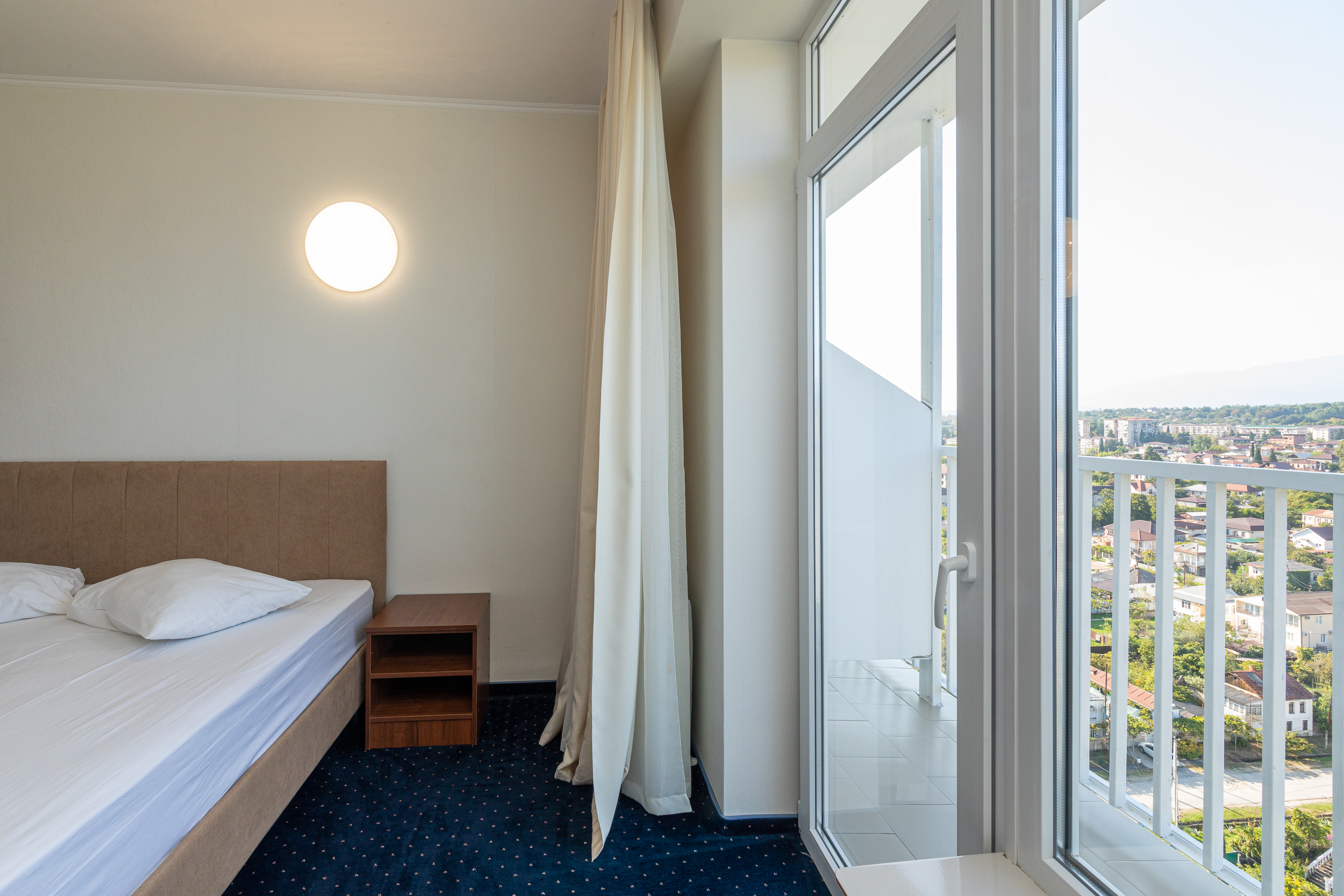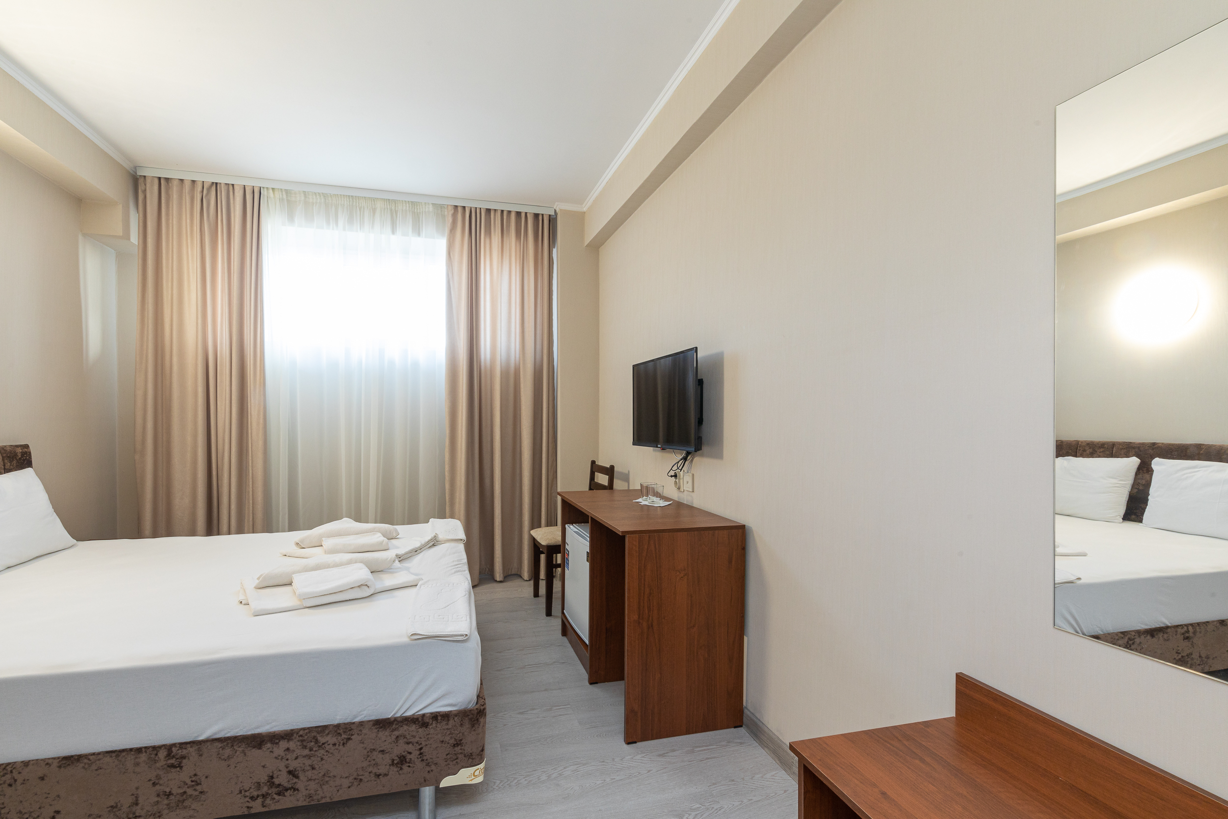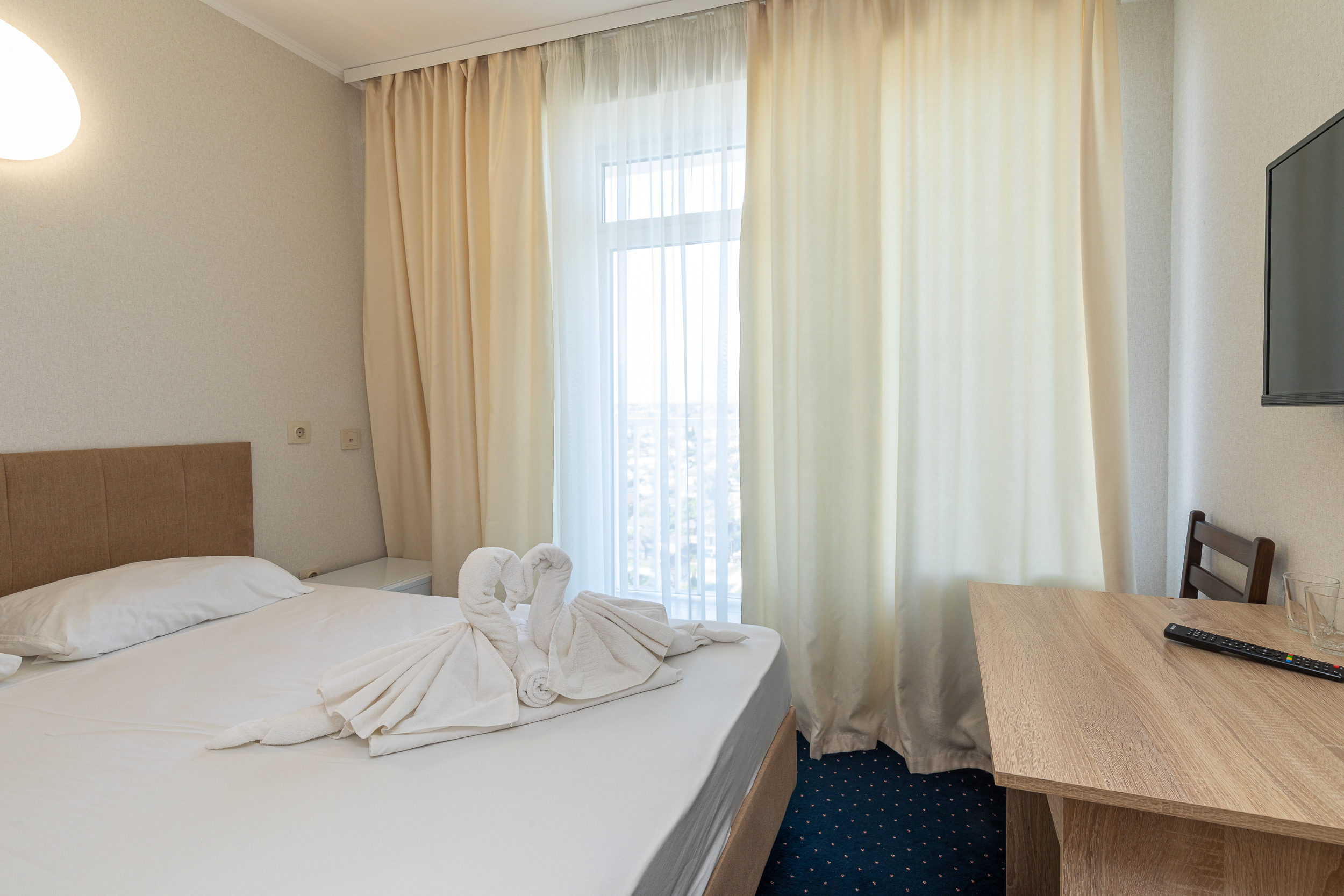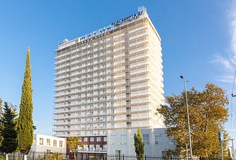 Восемнадцатиэтажное здание гостиницы возвышается на одной из главный улиц города — проспекте Героев. Обширный жилой фонд включает в себя 364 номера разной категории комфорта. В каждом — индивидуальный санузел с душем, кондиционер, телевизор и холодильник.В отеле работают лобби-бар и столовая, где гостям ежедневно сервируется завтрак или 3-разовое питание. Среди услуг — беспроводной интернет и охраняемая парковка для гостей на машинах.Всего в 100 метрах от отеля находится песчано-галечный пляж. На побережье установлены раздевалки, открыт бар, есть лежаки и зонты от солнца.