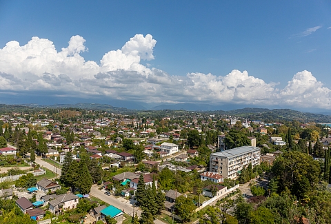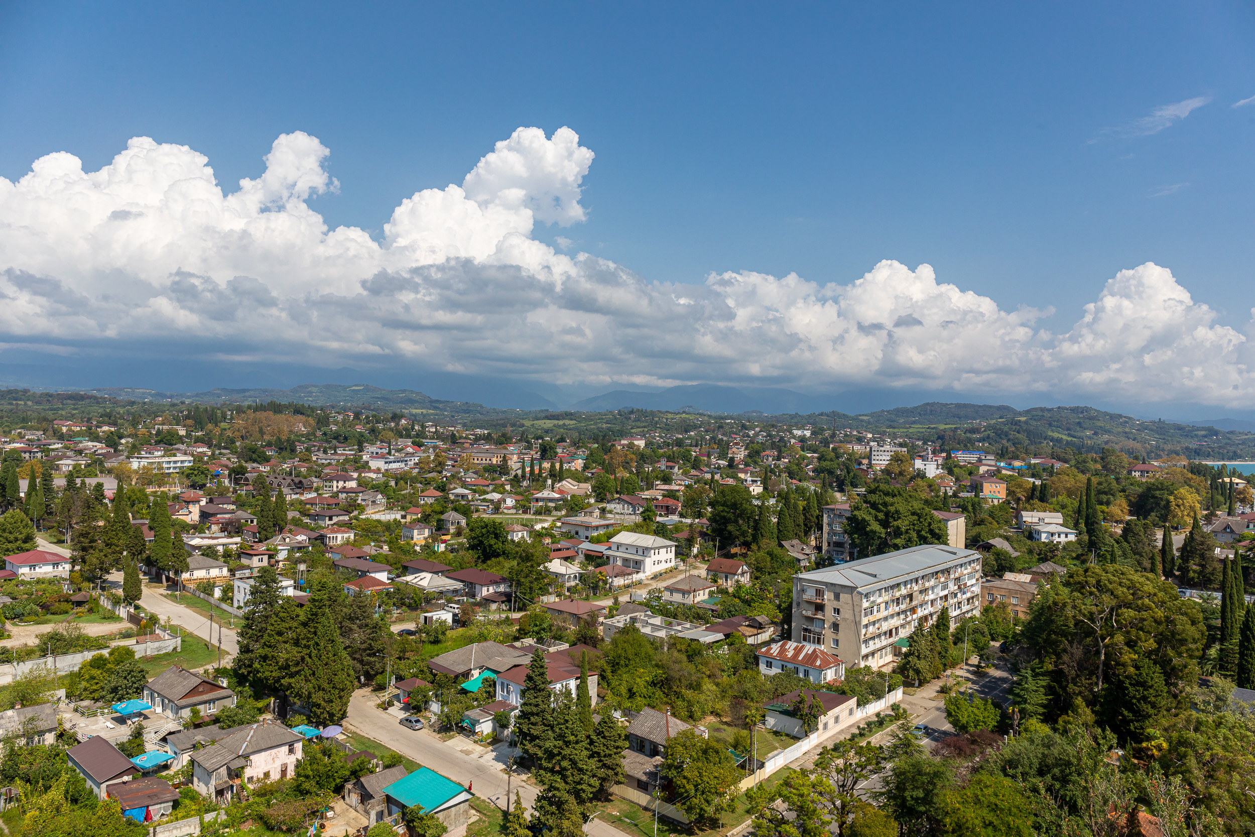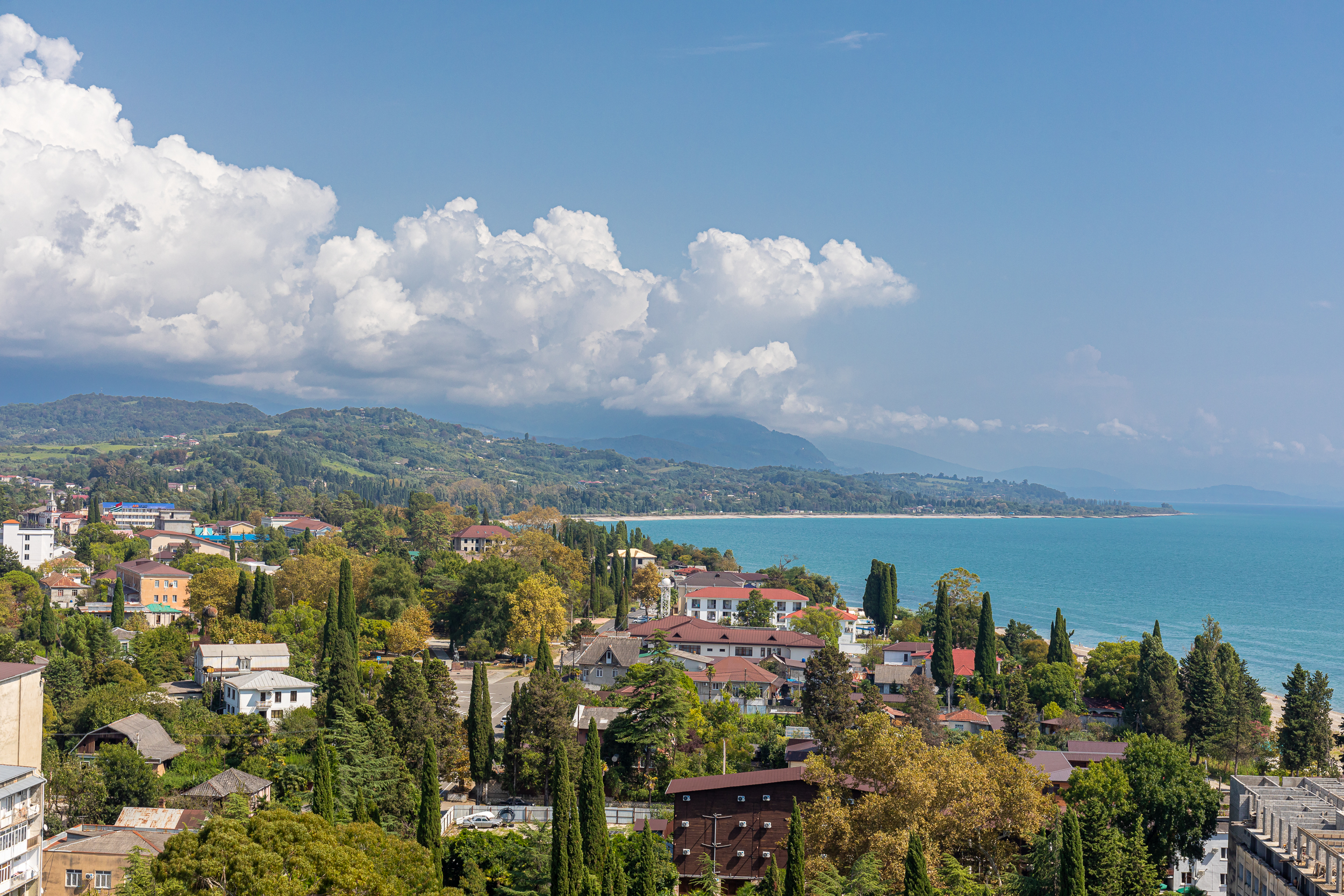 Поездом или самолетом до г. Сочи (Адлер), далее на общественном транспорте или на такси до «Казачьего рынка» (8 км от ж/д вокзала, 15 км от аэропорта), затем пройти пешком около 500 м до пограничного поста на р. Псоу до границы России и Абхазии. После самостоятельного прохождения паспортного и таможенного контроля до места отдыха можно доехать на автобусе, маршрутном такси или воспользоваться услугами частных водителей.