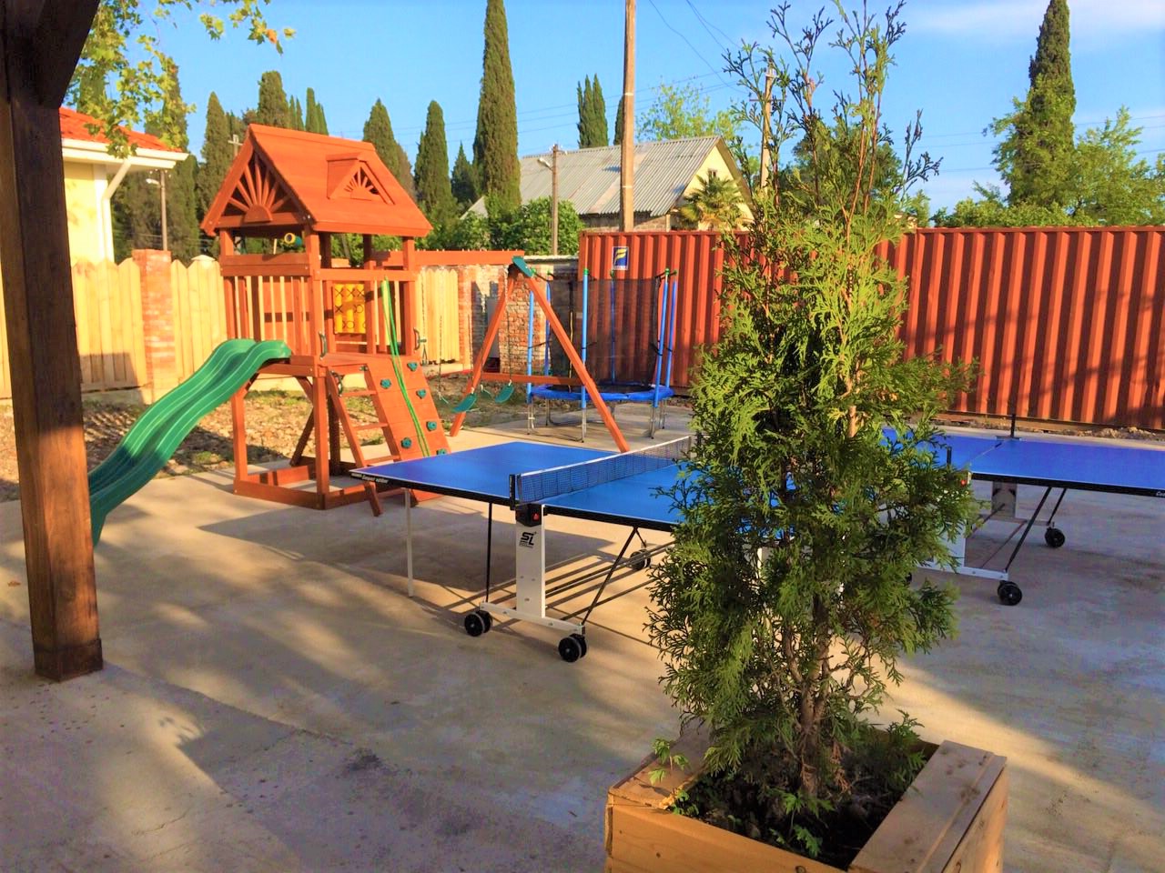 - пользование инфраструктурой отеля в период с 01.06 по 30.09: теннисный стол, детская площадка, общая кухня, диваны, столы под навесом