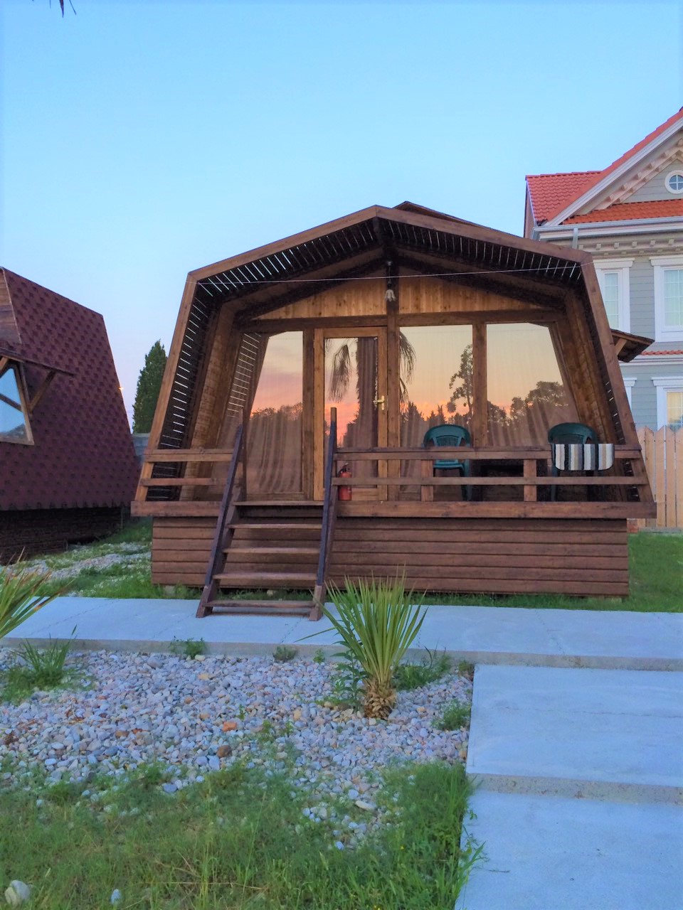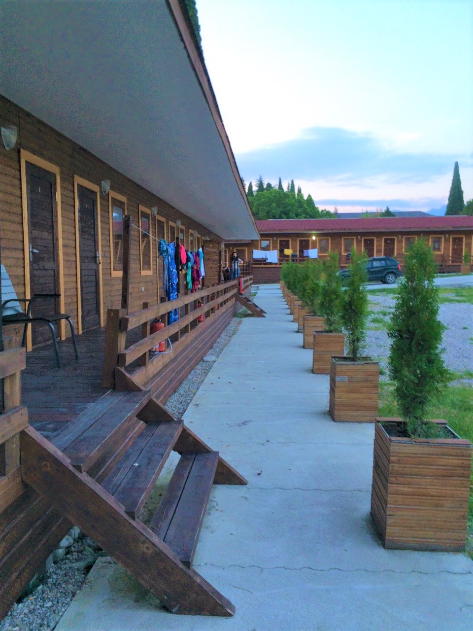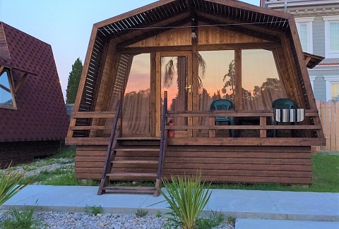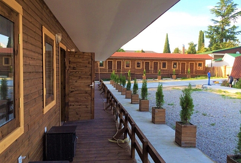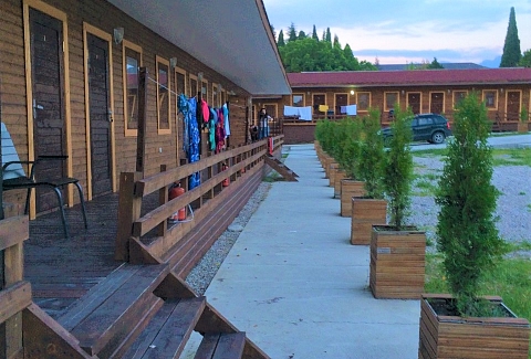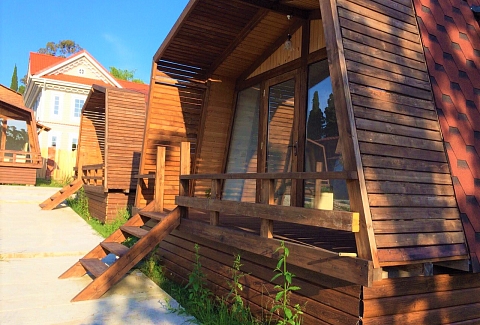 28 одноэтажных коттеджей из натурального дерева, рассчитанные на единовременное размещение 70 человек, занимают небольшую обустроенную территорию. В каждом коттедже есть индивидуальный санузел с душем, небольшая терраса, телевизор, кондиционер, необходимая мебель. На территории работает кафе, есть уютный сад для отдыха. В распоряжении гостей настольный теннис, взрослый батут, для автовладельцев предусмотрены парковочные места, доступен беспроводной интернет. Администрация отеля организует интересные экскурсии, как на джипах, так и на автобусах. Для детей обустроена игровая площадка с горками. В паре минут ходьбы находится городской песчано-галечный пляж.