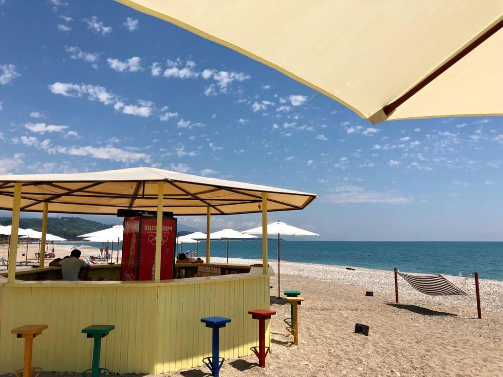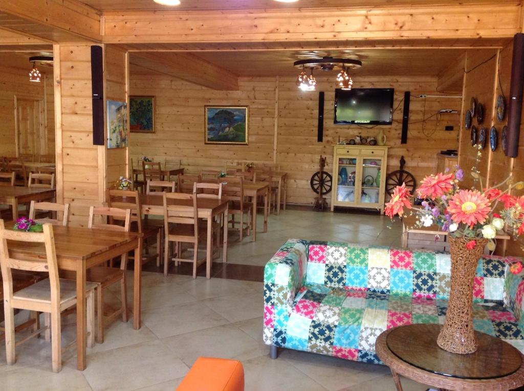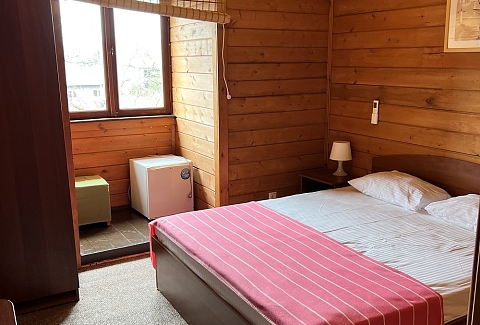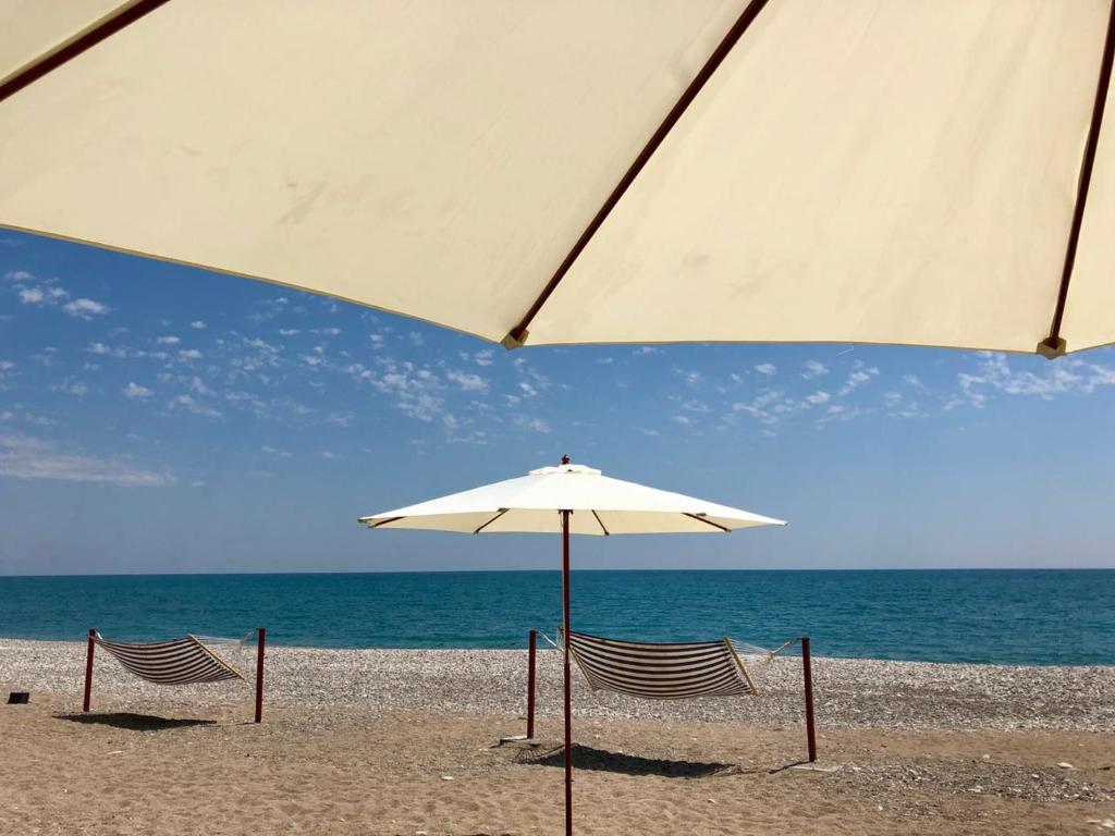 Все номера оснащены индивидуальным санузлом с душем, для каждого гостя подготовлен набор косметических принадлежностей, в комнатах есть кондиционер, телевизор и холодильник. На территории работает кафе с летней террасой, где отдыхающие могут заказать трехразовое питание. Среди услуг — охраняемая парковка и беспроводной интернет в зонах общего пользования. В 5 минутах ходьбы находится мелко-галечный пляж. На побережье установлены раздевалки, есть навесы, лежаки, шезлонги и зонтики.