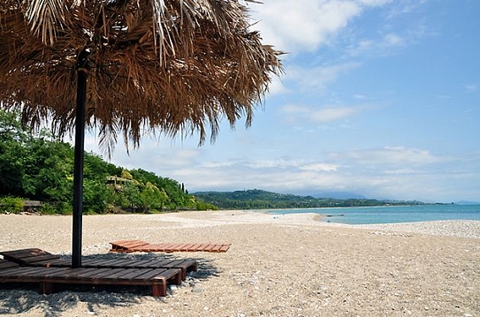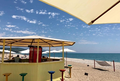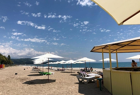 Поездом или самолетом – до г. Сочи (Адлер), далее на общественном транспорте или на такси до «Казачьего рынка» (8 км от ж/д вокзала, 15 км от аэропорта), затем пройти пешком около 500 м до пограничного поста на р. Псоу до границы России и Абхазии. После самостоятельного прохождения паспортного и таможенного контроля до места отдыха можно доехать на автобусе, маршрутном такси или воспользоваться услугами частных водителей.