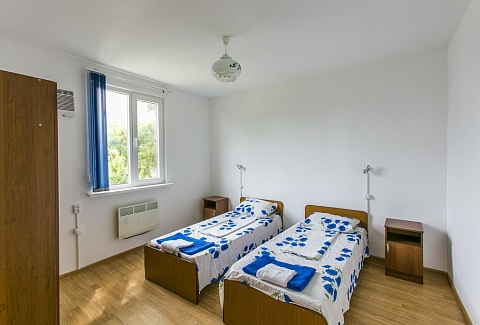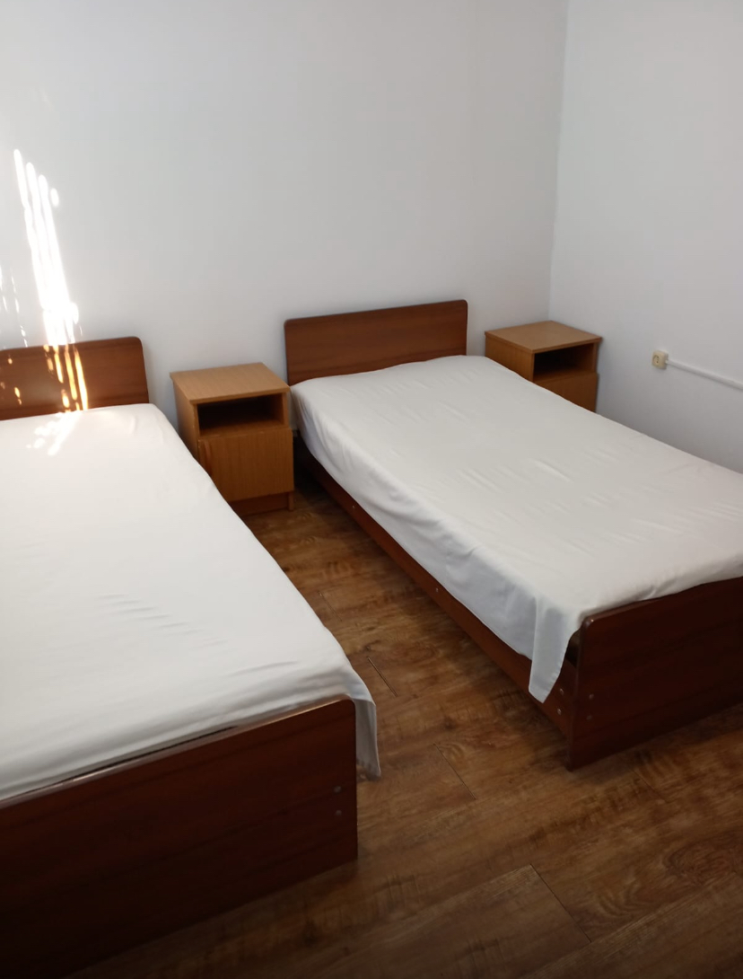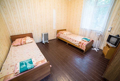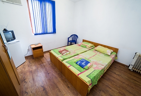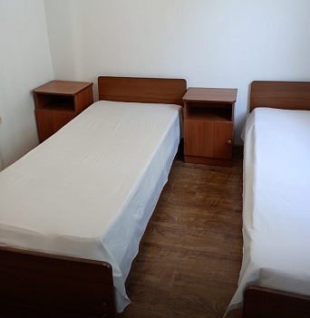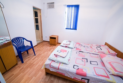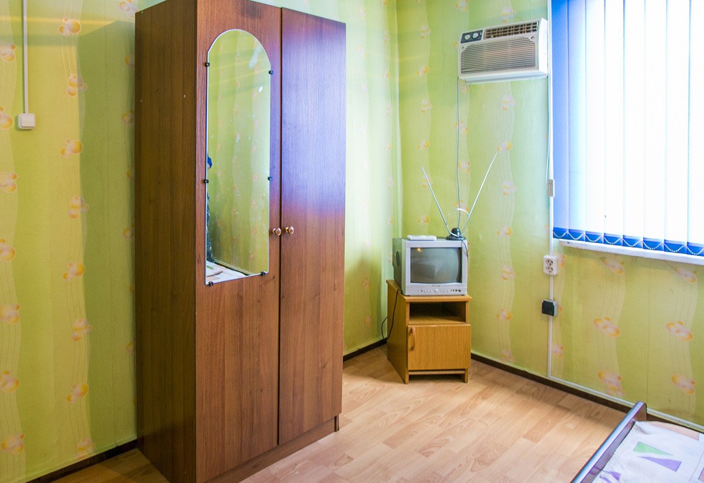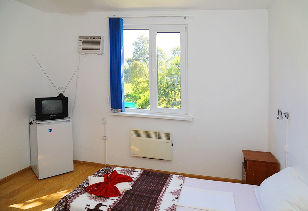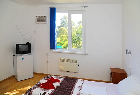 В номере: вешалка, зеркало, кровати односпальные /одна двуспальная кровать, прикроватные тумбочки, шкаф, вентилятор, телевизор, холодильник