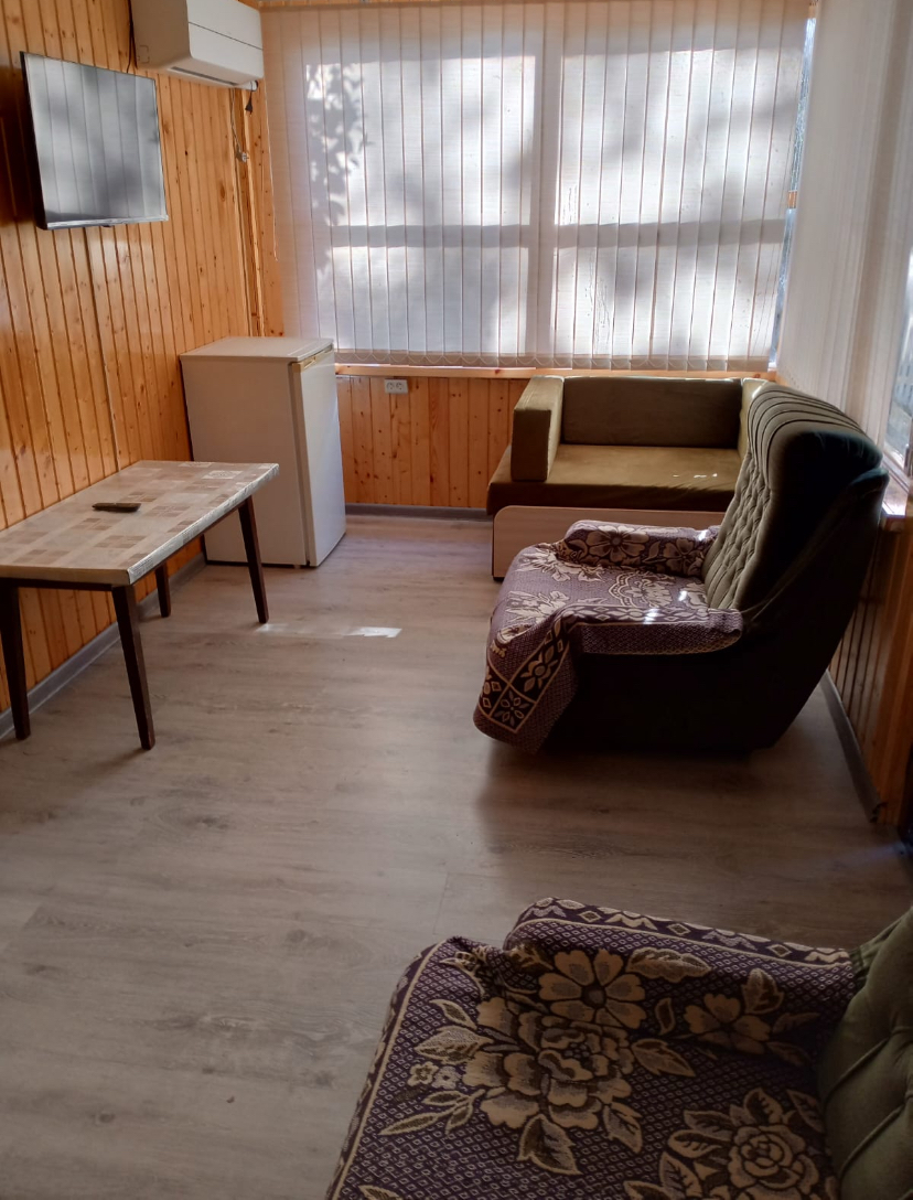 В номере: вешалка, зеркало, кресла, кровати односпальные, кровать двуспальная, прикроватные тумбочки, стол, шкаф, кондиционер, телевизор, холодильник