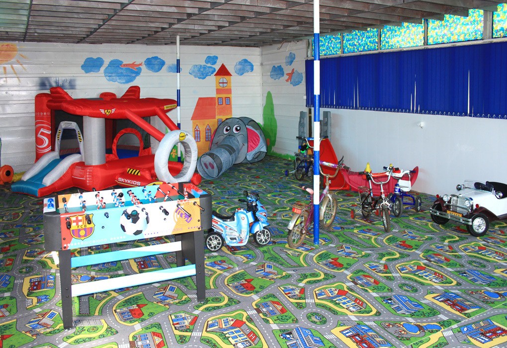- игровая комната с воспитателем с мая 2013 открыт детский досуговый центр (платный) для детей от 3 до 11 лет. В центре есть аттракционы для активного отдыха: батут, многоярусная горка, детские электромобили, настольные игры, плавающая акула с дистанционным управлением