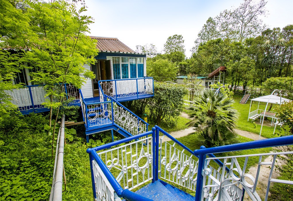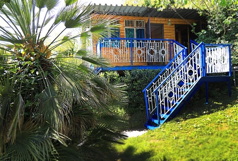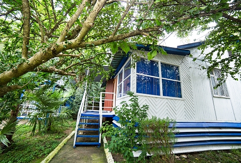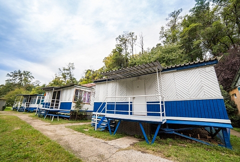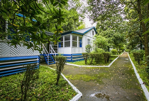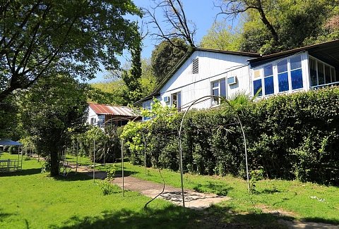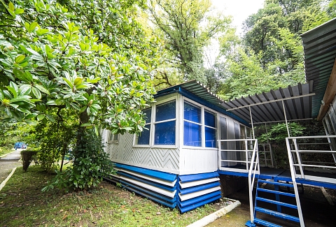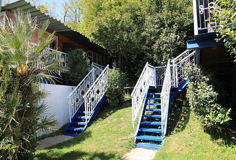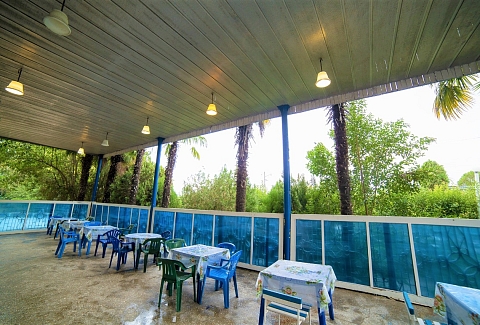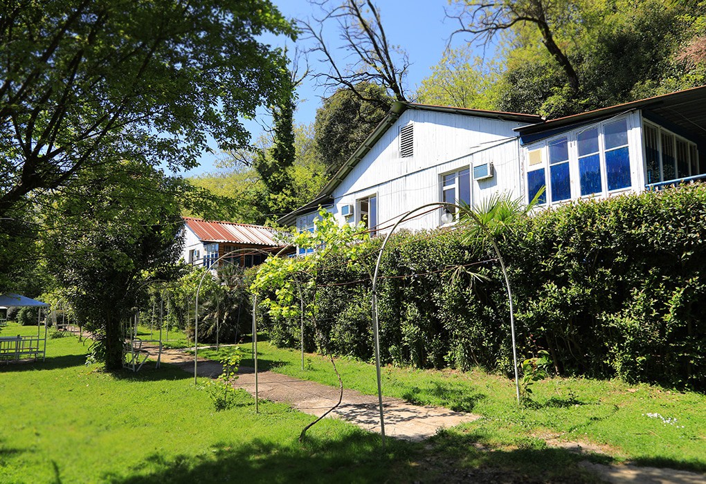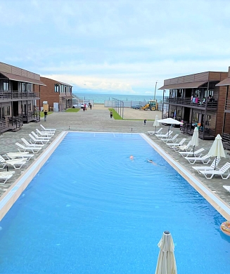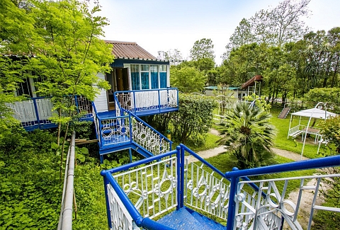 Дорога до российско-абхазской границы займет около часа, до международного аэропорта Адлера 81 километр. Комплекс занимает благоустроенную территорию, окруженную декоративными южными растениями, на которой разместились одноэтажные летние домики, которые рассчитаны на проживание от 2-х до 4-х человек. Каждый номер оснащен вентилятором или кондиционером, везде есть телевизор, холодильник, собственная ванная комната с санузлом. На базе отдыха установлено дизельное оборудование, которое позволяет круглосуточно обеспечивать территорию светом и водой, даже в случае аварийного отключения. На базе отдыха работают кафе, бар и столовая, где гости могут заказать себе трехразовое питание. К услугам отдыхающих беспроводной интернет на территории, прокат велосипедов и охраняемая автостоянка. Для детей работает досуговый центр с аттракционами, электромобилями и прочими развлечениями. На территории оборудована игровая комната, где за малышами присматривает воспитатель. Для отдыхающих турбаза предлагает интересные экскурсии по всем основным туристическим маршрутам. В 30 метрах находится песчано-галечный пляж. Отдыхающие на ресепшене могут взять напрокат необходимый пляжный инвентарь.