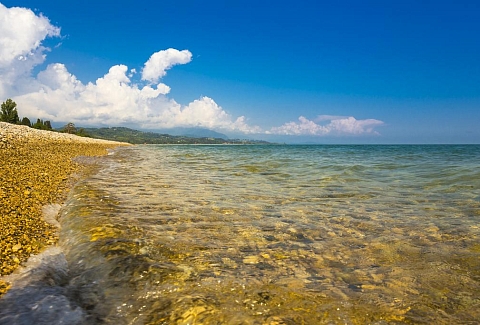 Поездом или самолетом – до г. Адлер, далее на общественном транспорте или на такси до Казачьего рынка (8 км от ж/д вокзала, 15 км от аэропорта), затем пройти пешком около 500 метров до пограничного поста на р. Псоу до границы России и Абхазии. После самостоятельного прохождения паспортного и таможенного контроля до места отдыха можно доехать на автобусе, маршрутном такси или воспользоваться услугами частных водителей.