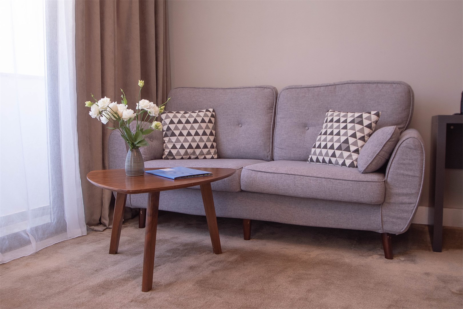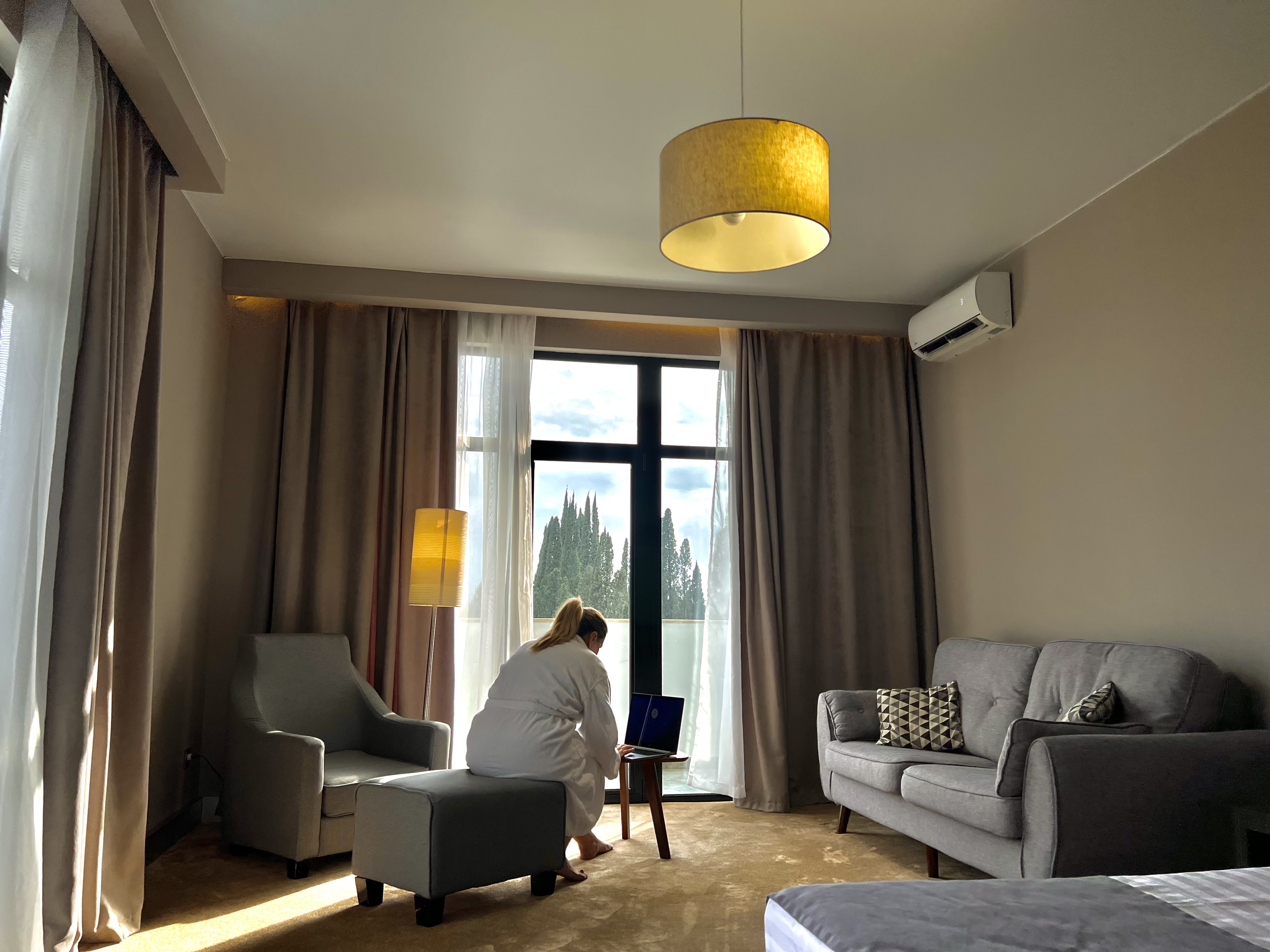 В номере: вешалка, диван, зеркало, кровати односпальные /одна двуспальная кровать, прикроватные тумбочки, столик журнальный, шкаф, кондиционер, сейф, телевизор, холодильник