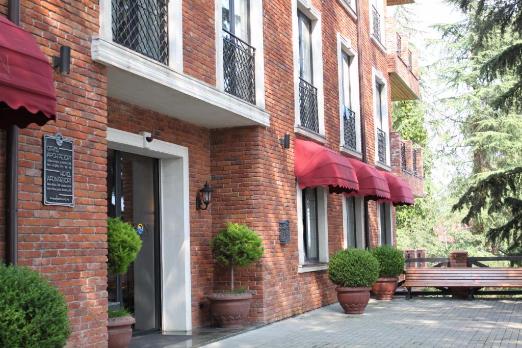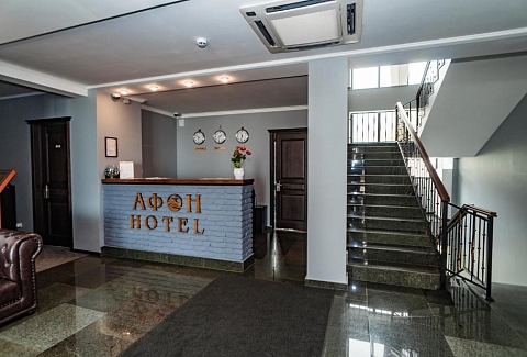 Отель «Афон Резорт» расположен на первой береговой линии в городе Новый Афон. В шаговой доступности центр города и главные достопримечательности курорта — Приморский парк, Новоафонский монастырь, пещеры, до Анакопийской крепости можно подняться на автомобиле за 10 минут. Рядом — остановка общественного транспорта, стоянка такси, есть несколько магазинов и мини-рынок.