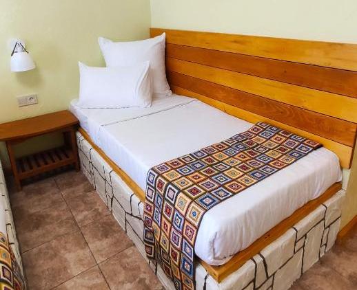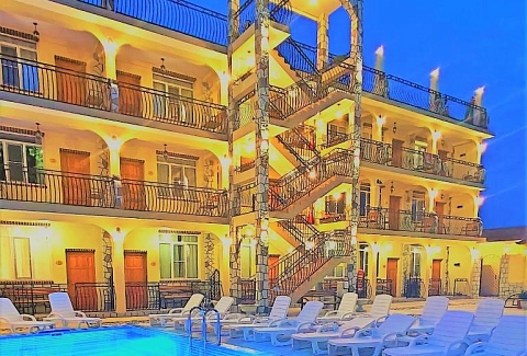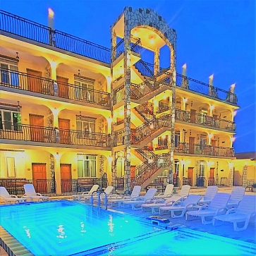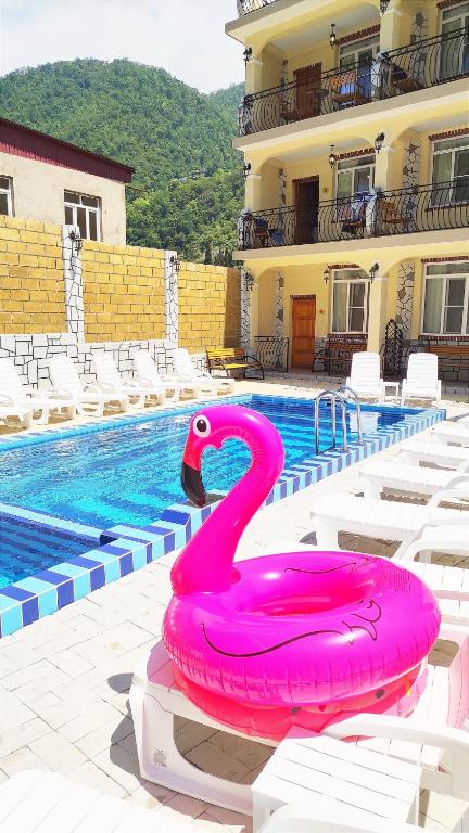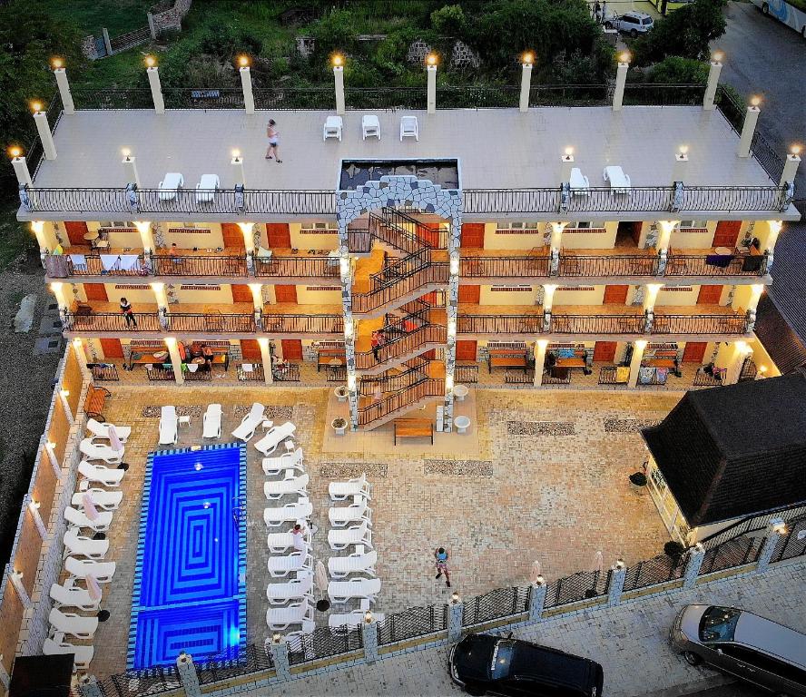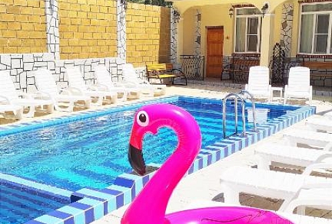 А для тех, кто следит за питанием, в комнатах оборудованы мини-кухни с вместительным холодильником, чайником, мультиваркой и комплектом посуды. У каждого номера индивидуальный вход, подъем на этажи осуществляется по лестнице.На территории отеля расположен открытый подогреваемый бассейн с джакузи. Городской пляж расположен в 500 метрах.