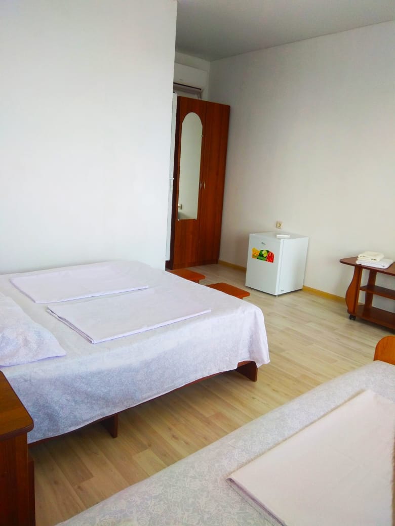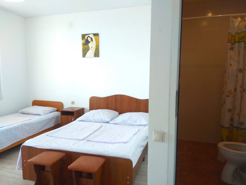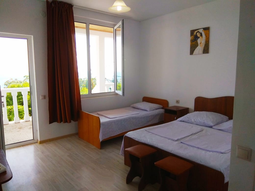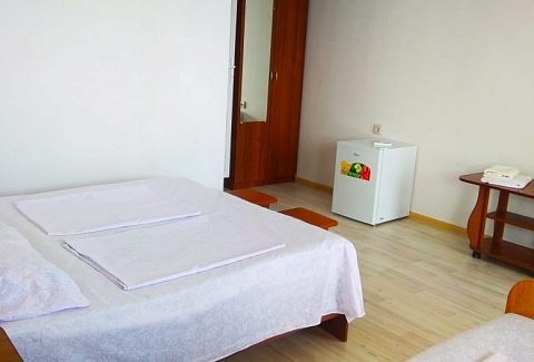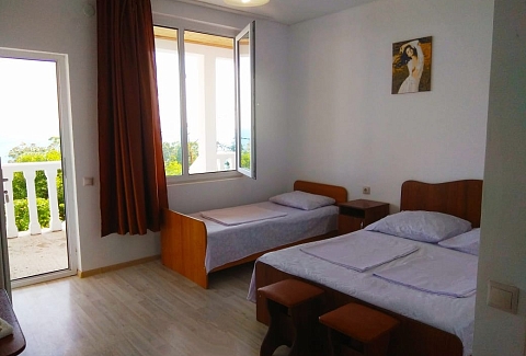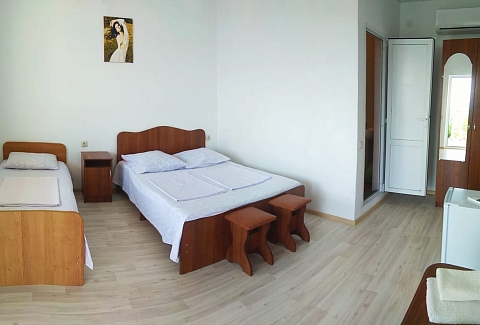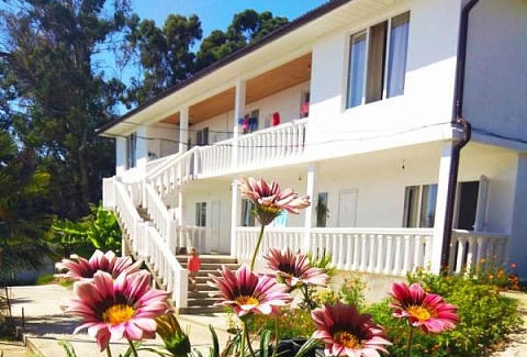 До набережной и моря минут 7-10 пешком.Гостевой дом подходит для тихого и спокойного отдыха. Корпус отеля состоит из одного двух-этажного здания. Номера все стандартные со всем необходимым для комфортного проживания: есть балкон, телевизор, холодильник, кондиционер и интернет. В номерах курение запрещено. На территории много зелени, есть парковка, мангальная зона и беседка. Есть услуги стирки и гладильная доска с утюгом. До оборудованного галечного пляжа всего 400 метров.
