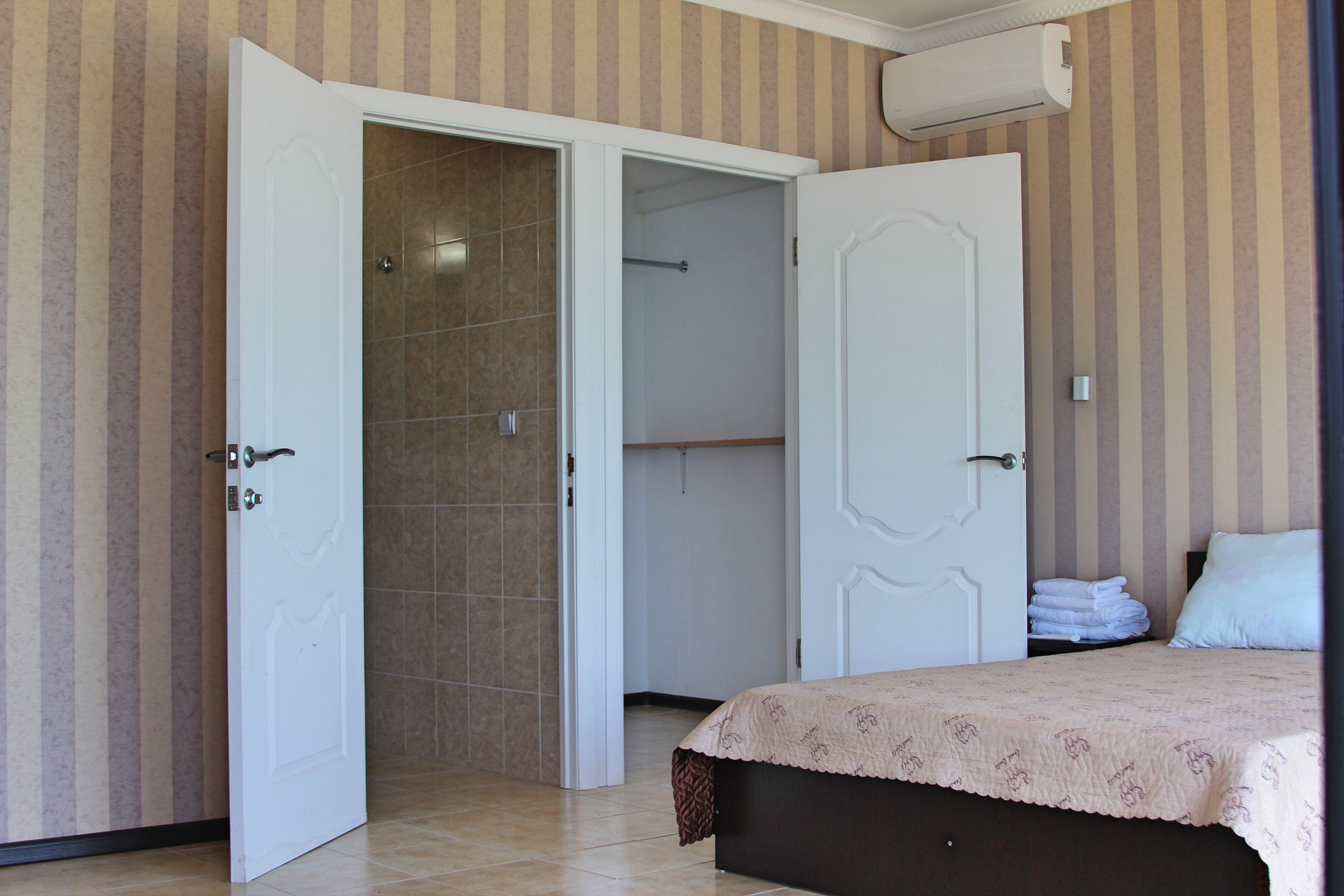 В номере: вешалка, диван раскладной, зеркало, кровати односпальные, кровать двуспальная, прикроватные тумбочки, стол, стулья, шкаф, кондиционер, мини-холодильник, телевизор