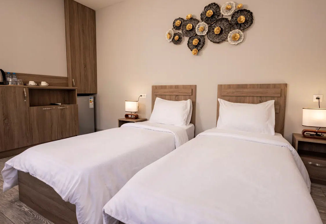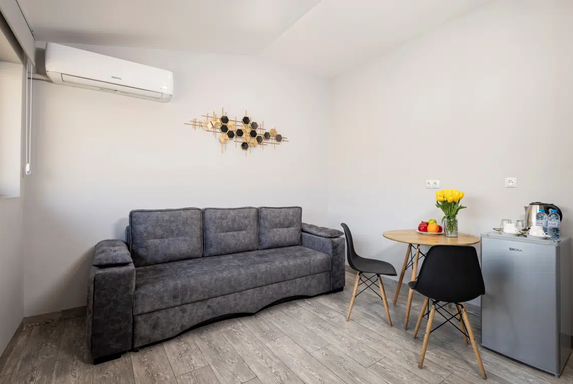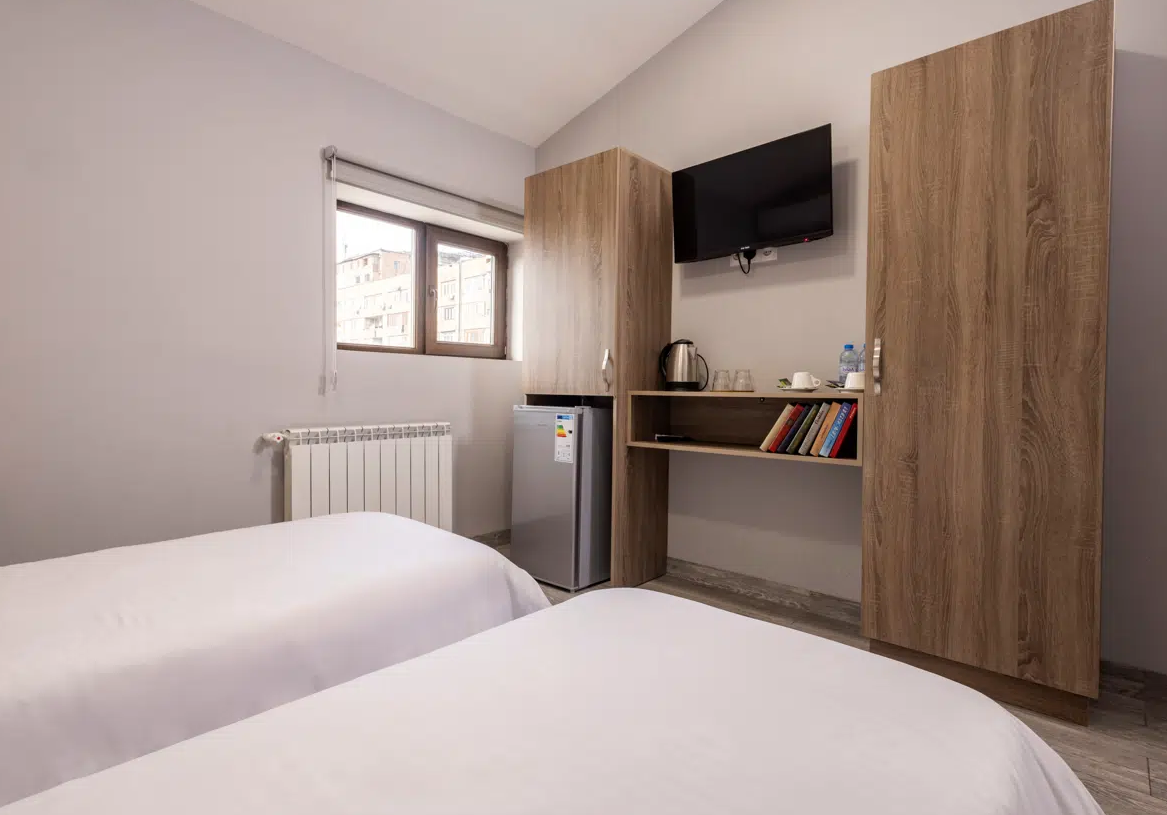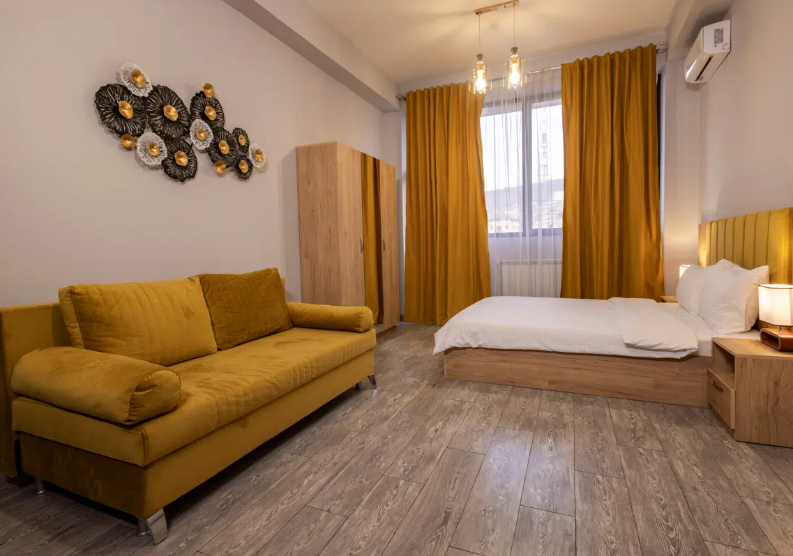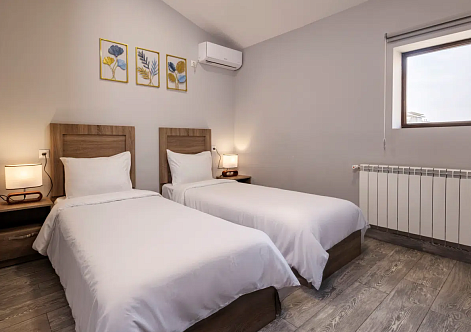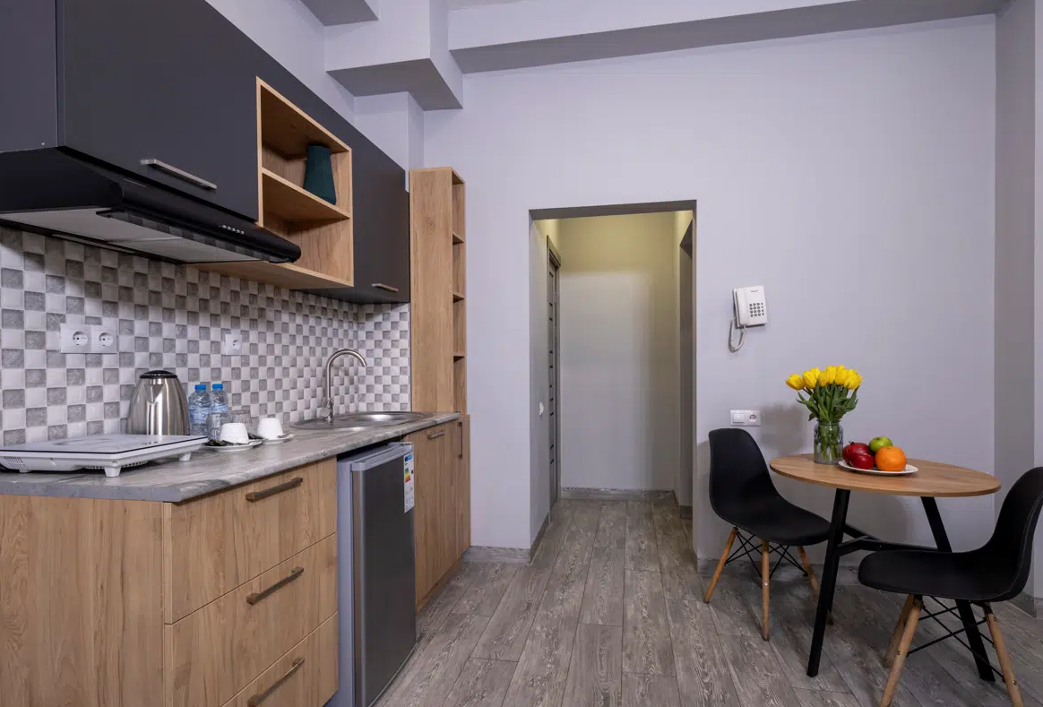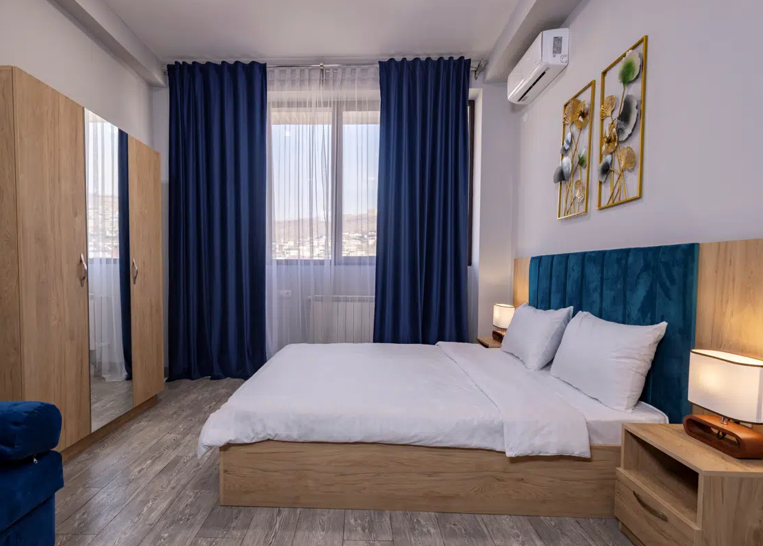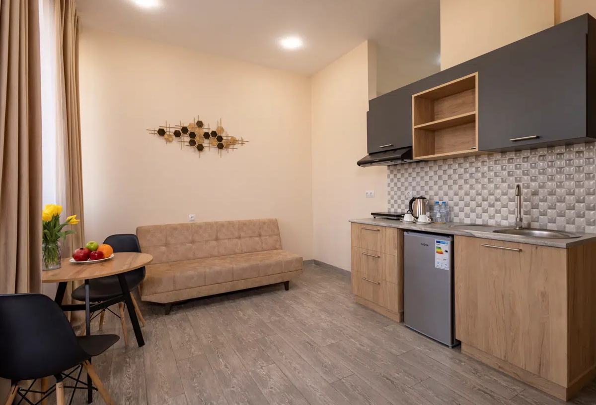 Просторные студии с балконами дарят возможность начинать день за чашечкой кофе с видом на город. Для взыскательных гостей подготовлены делюкс-номера с повышенным уровнем комфорта, а для длительного пребывания — полноценные апартаменты с зоной для отдыха и работы. Все номера оформлены в светлых тонах с использованием натуральных материалов, что создаёт ощущение домашнего тепла.Утро в отеле начинается с ароматного завтрака, где подают как европейские, так и традиционные армянские блюда. Для гостей на автомобиле организована охраняемая парковка, а бесплатный Wi-Fi на всей территории позволяет оставаться на связи. По вечерам в лаунж-зоне можно насладиться атмосферой уюта за бокалом местного вина.
