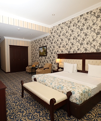 Гости этого отеля ценят безупречный баланс между комфортом и внимательным сервисом. Здесь каждый найдет вариант размещения по душе: от практичных Стандартных номеров для самостоятельных путешественников до просторных Семейных Сьютов, где с удобством разместятся родители с детьми. Для тех, кто привык к повышенному комфорту, предусмотрены номера категории Делюкс с тщательно продуманными деталями интерьера и дополнительным пространством.
