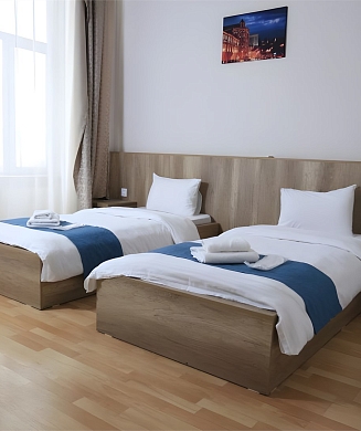 В номере: кровати односпальные /одна двуспальная кровать, прикроватные тумбочки, стол, стулья, шкаф, мини-холодильник, телевизор